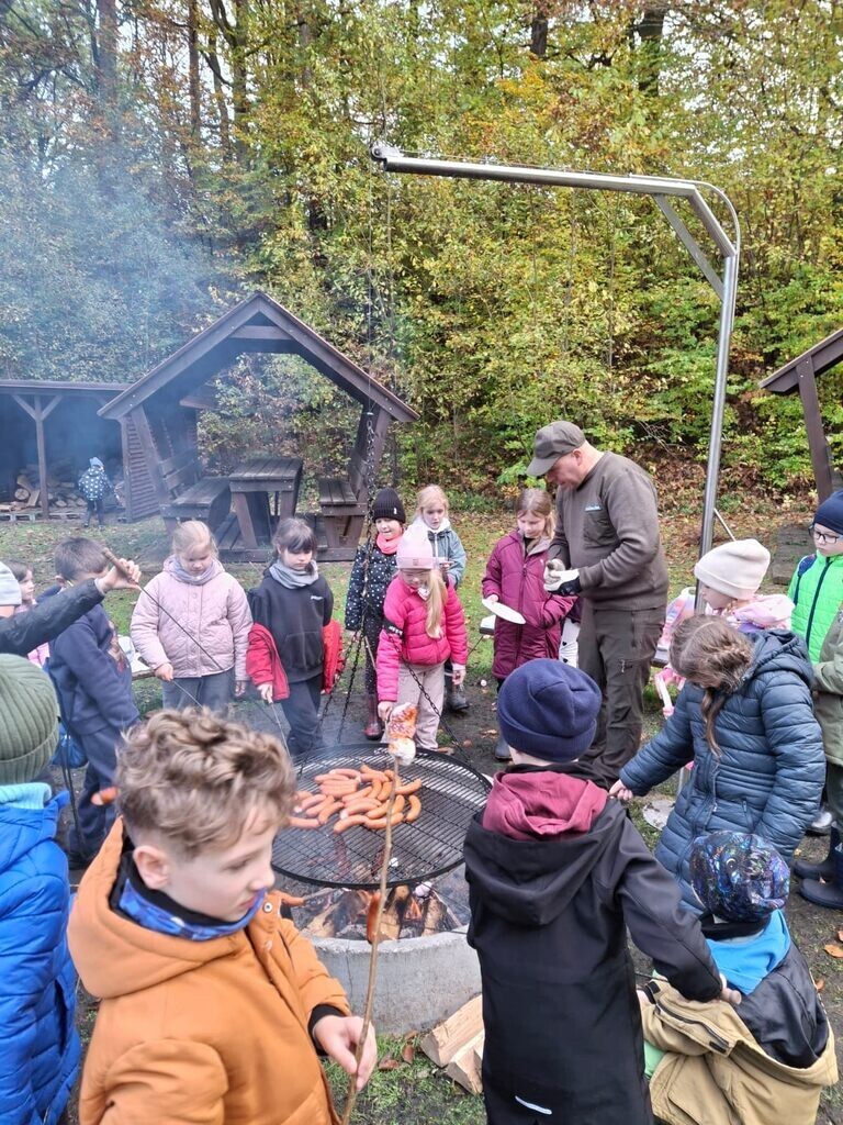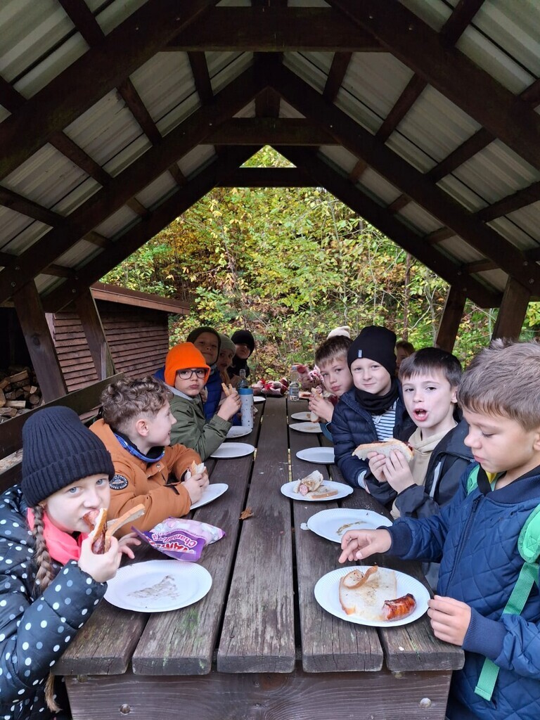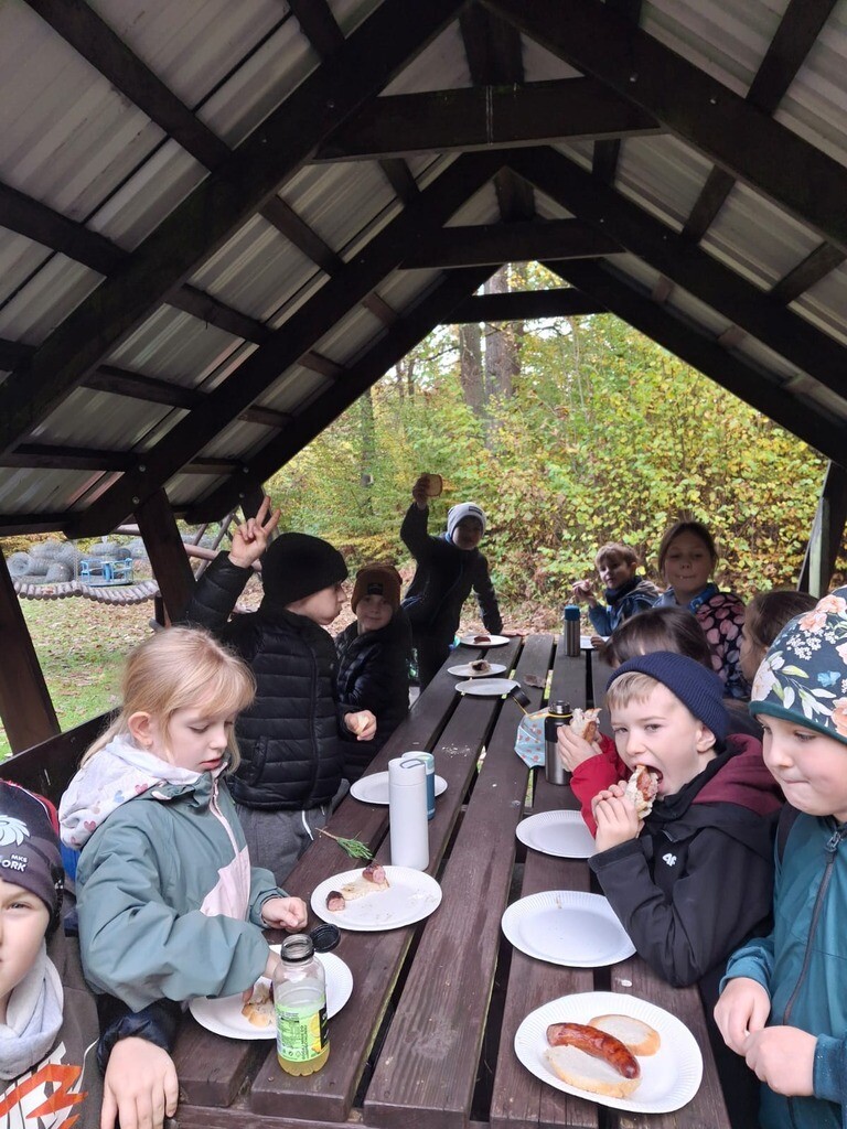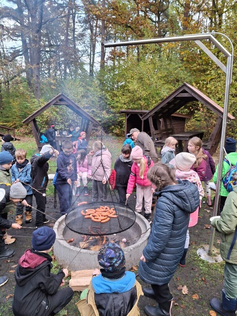 Na zakończenie wycieczki odbyło się ognisko z kiełbaskami, a dzieci miały czas na wspólną zabawę. Pogoda i humory dopisały, a lekcja w terenie okazała się doskonałym sposobem na naukę przez doświadczenie i kontakt z naturą.