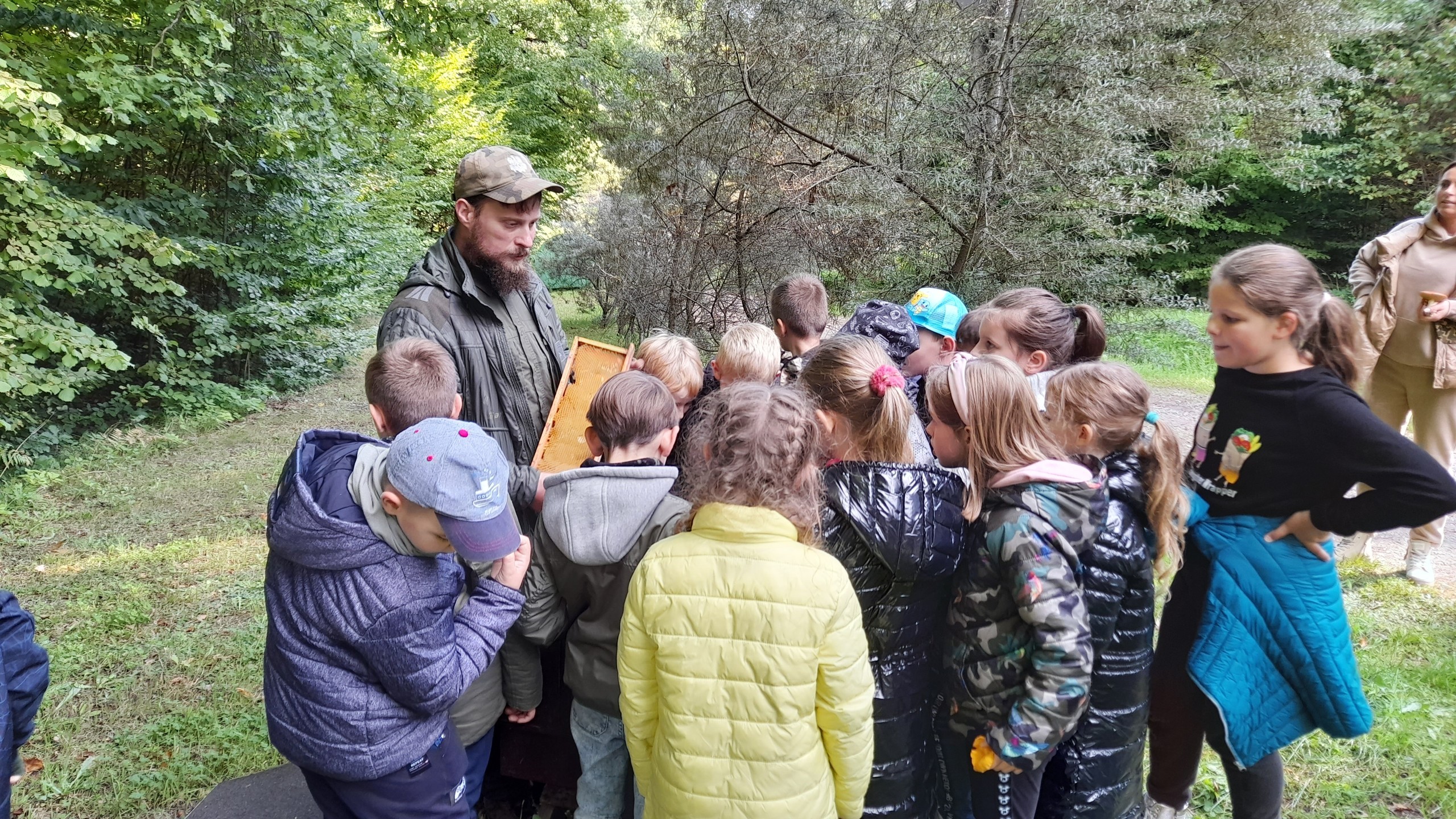 21 września uczniowie klasy 2a i 2b udali się do Uroczyska w Drętowie. Dzięki uprzejmości lęborskiego Nadleśnictwa dzieci wzięły udział w niecodziennej lekcji przyrody. Podczas spaceru ścieżką przyrodniczą pan leśniczy zapoznał drugoklasistów z zasadami zachowania się w lesie, opowiedział o ciekawostkach z życia leśnych zwierząt. Uczniowie poznali podstawowe gatunki drzew rosnących w polskich lasach oraz sposoby wykorzystywania drewna przez ludzi. Dowiedzieli się również o roli martwych drzew i znaczeniu pszczół. Dużą frajdą podczas przemierzania leśnych dróg było też zbieranie grzybów. Dodatkową atrakcją było obejrzenie wystawy „Attractive Hardwoods” w izbie przyrodniczo – leśnej Uroczyska, którą jeszcze niedawno można było podziwiać w Centrum Hewelianum w Gdańsku. Uczniowie słuchali opowieści starego drzewa, bawili się w archeologa na wykopaliskach oraz grali grupowo w gry edukacyjne.