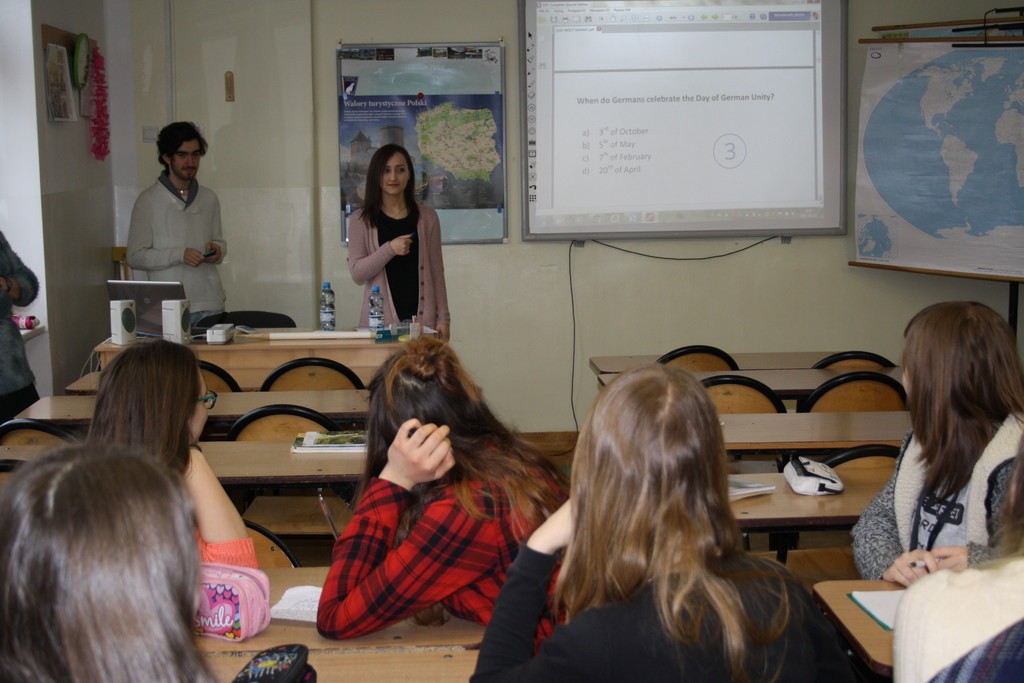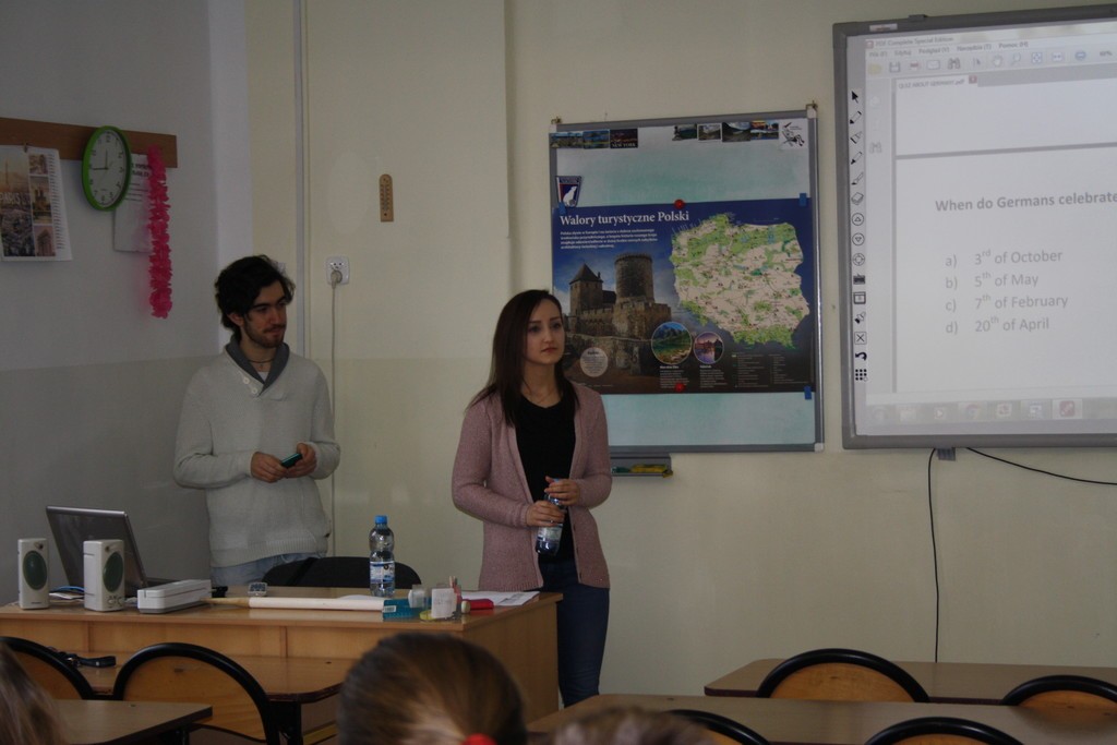 Wolontariusze opowiadali uczniom o swoich krajach, prowadzili zajęcia w języku niemieckim i angielskim oraz lekcję geografii . Wolontariusze zwiedzili naszą szkołę , opowiadali o swoich zajęciach podczas wolontariatu. Zapewniali, że ponownie nas odwiedzą, aby poprowadzić ciekawe lekcje z naszymi uczniami.