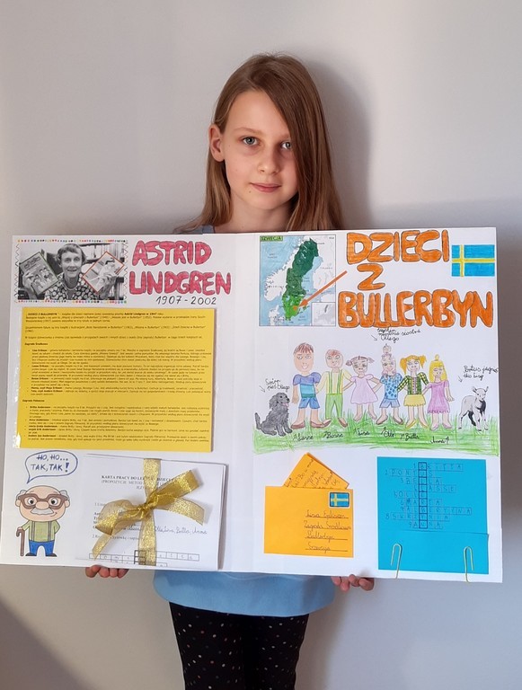 Uczniowie klasy IIIb w ubiegłym tygodniu omawiali lekturę autorstwa Astrid Lindgren pt. ,,Dzieci z Bullerbyn". Ta wspaniała, pełna przygód opowieść o sześciorgu dzieciach z wioski o nazwie Hałasowo przypadła do gustu naszym trzecioklasistom. Chętnie i z zapałem śledzili przygody małych przyjaciół, a w czasie lekcji zdalnych aktywnie pracowali nad omówieniem tej przepięknej i wartościowej książki. Na zakończenie cyklu lekcji z lekturą stworzyli wspaniałe i pomysłowe lapbooki . W galerii prezentujemy kilka z nich.