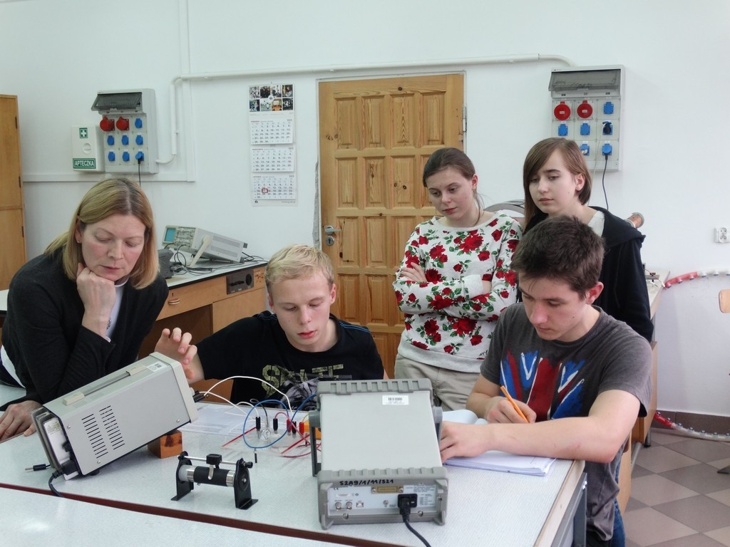 Kolejne trzy godziny uczniowie spędzili w I Pracowni Fizycznej, wykonując doświadczenia z zakresu prądu elektrycznego i elektromagnetyzmu.