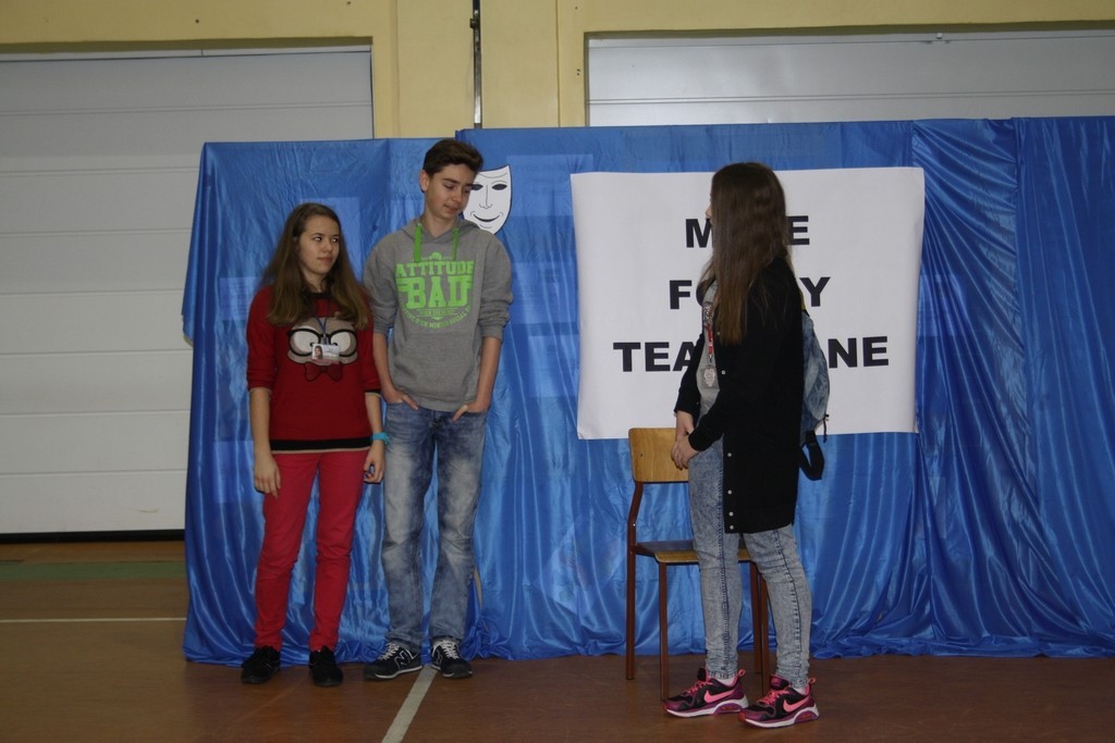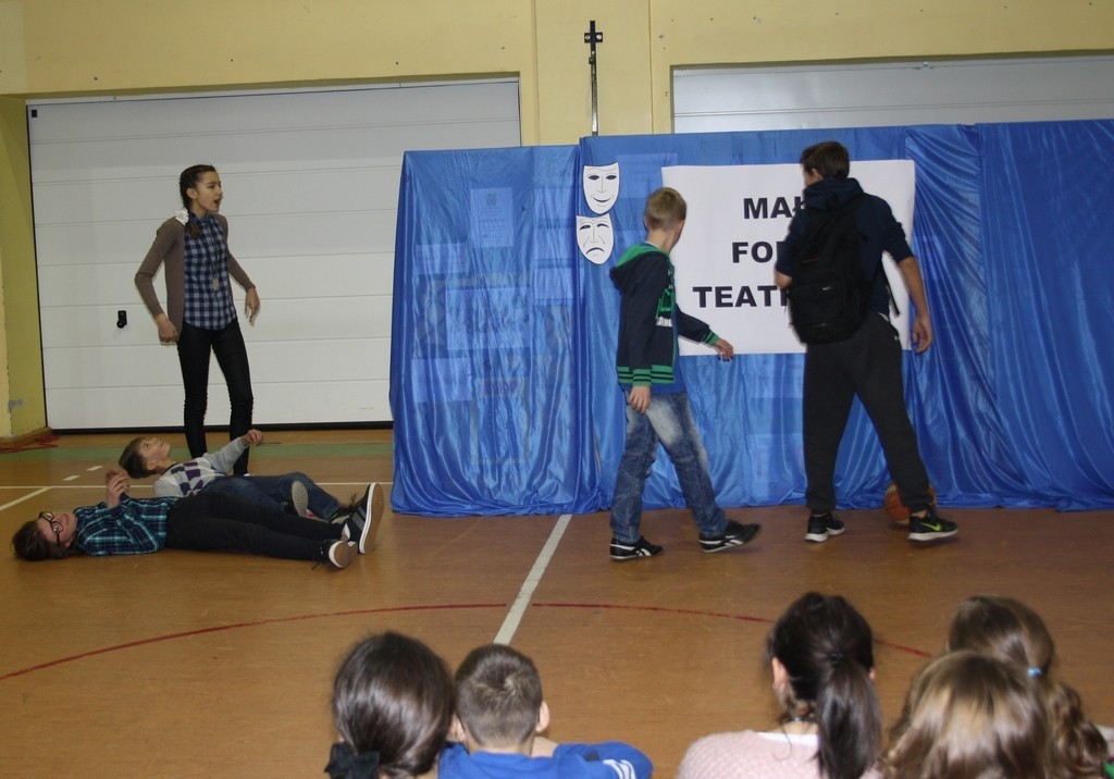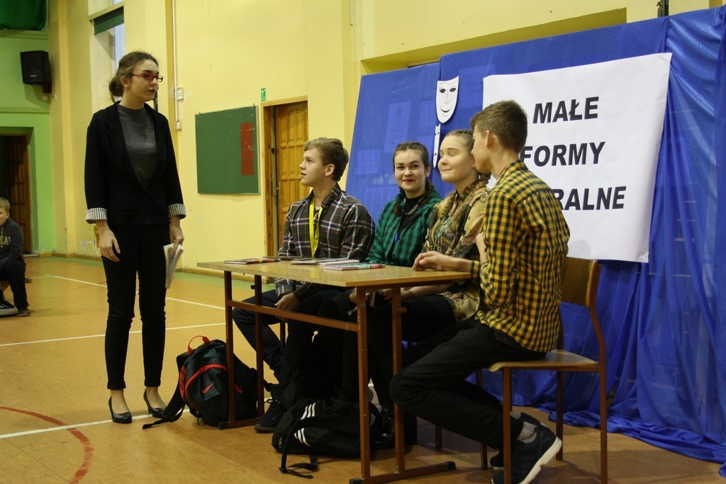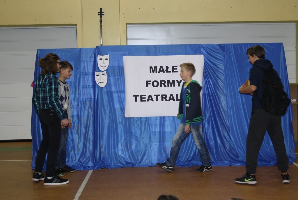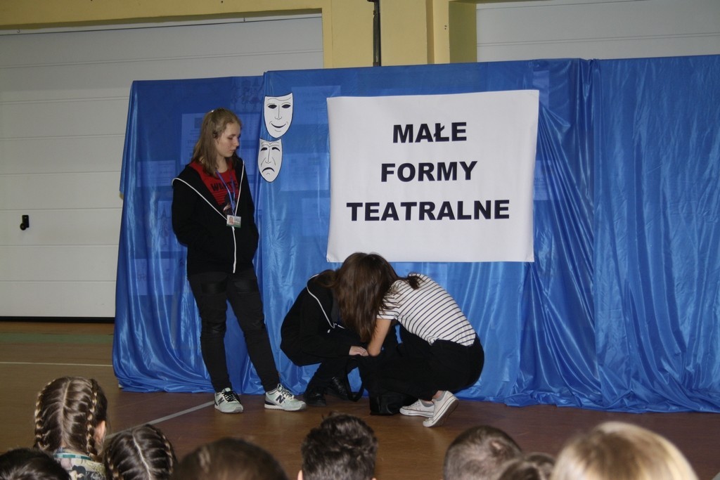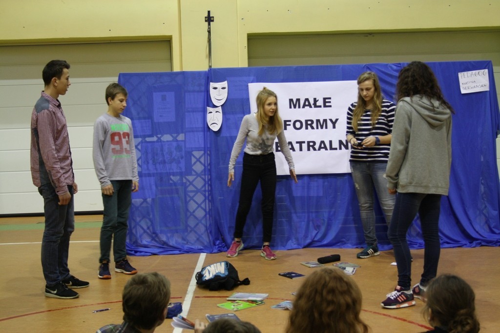 Klasy przygotowywały swoje autorskie scenariusze mając na względzie zasady regulaminu 3x5 czyli: 5 aktorów (reprezentanci klas), 5 rekwizytów i czas trwania - 5 minut. Zadanie nr 4 było świetną okazją do zorganizowania Festiwalu Małych Form Teatralnych, podczas którego wszystkie zespoły klasowe mogły przedstawić swoją własną interpretację danego tematu.