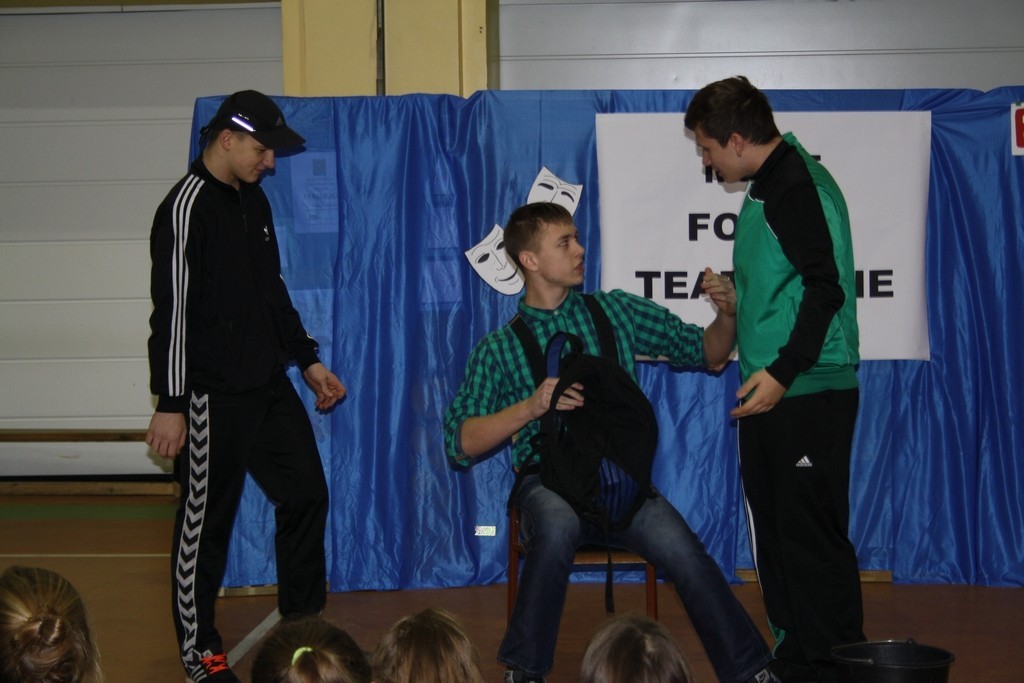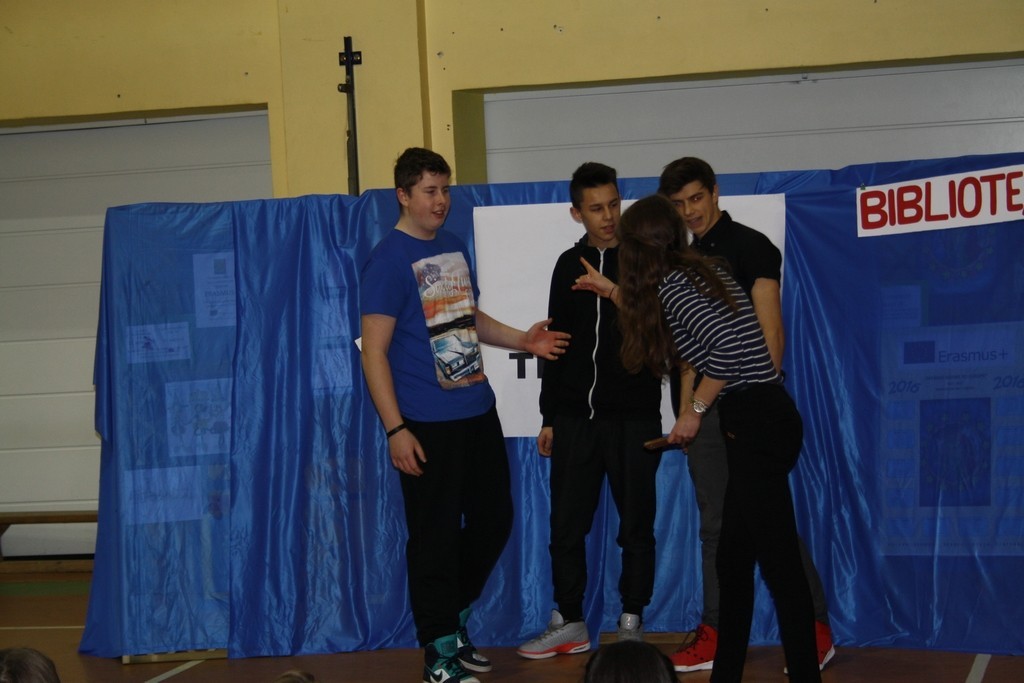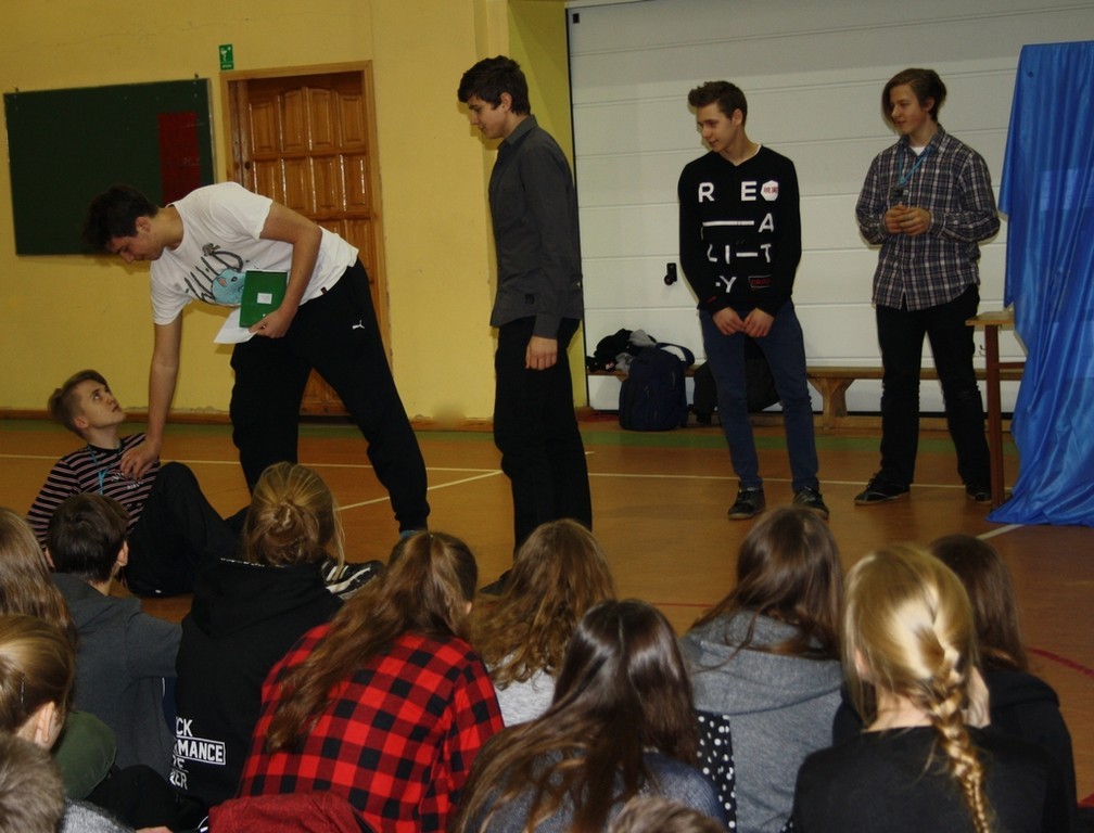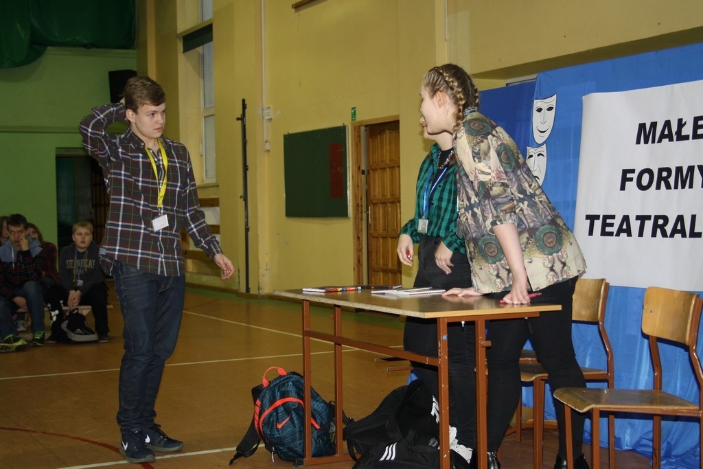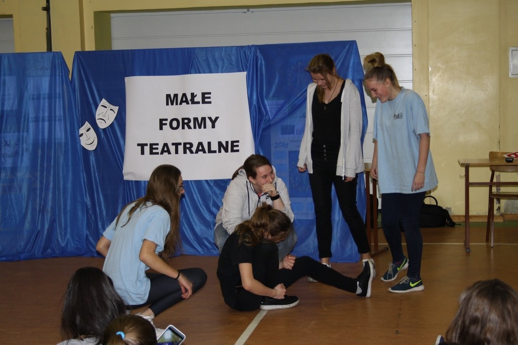 Klasy przygotowywały swoje autorskie scenariusze mając na względzie zasady regulaminu 3x5 czyli: 5 aktorów (reprezentanci klas), 5 rekwizytów i czas trwania - 5 minut. Zadanie nr 4 było świetną okazją do zorganizowania Festiwalu Małych Form Teatralnych, podczas którego wszystkie zespoły klasowe mogły przedstawić swoją własną interpretację danego tematu.