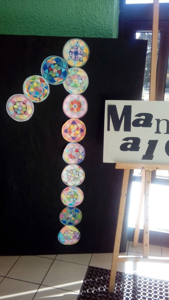 Ze sposobami tworzenia mandali gimnazjaliści zapoznali się na zajęciach artystycznych. Mandala symbolizuje cały świat, Boga człowieka, życie i stworzenie. Ma kształt doskonały - formę koła. Kształt tenjest symbolem archetypowym i określa wewnętrzny porządek natury. Każdy z nas widzi ją codziennie, ale mało ludzi wie, że jest to jeden z tych symboli, które dane są nam jako prawzór określający nasze życie.