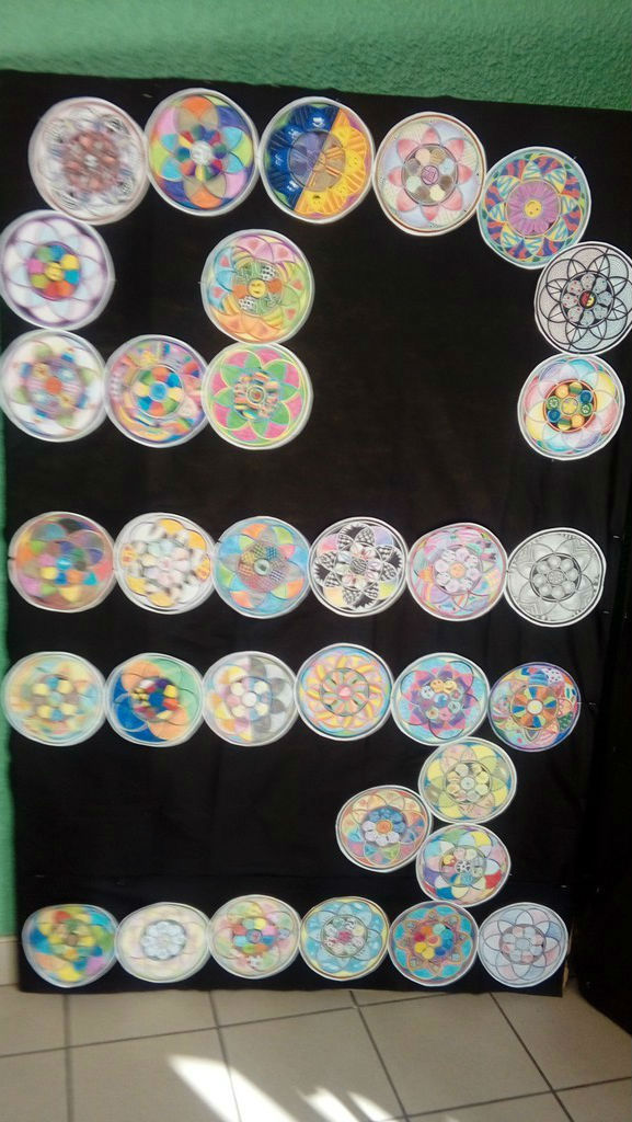 Własnoręcznie wykonane przez uczniów klas pierwszych mandale stały się inspiracją do wykonania dekoracji GIM 1.
