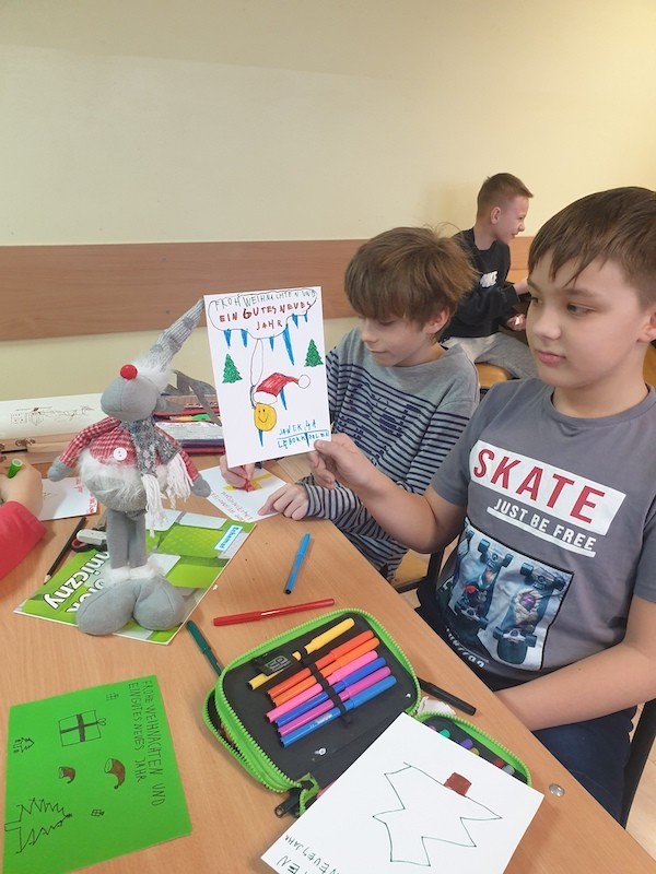 W minionym tygodniu uczniowie klas 7 i 8 przygotowywali na lekcjach języka niemieckiego kartki z życzeniami dla naszych partnerów z różnych międzynarodowych projektów platformy eTwinning. Również na zajęciach projektowych Erasmus+ klasy: 4a i 5a przygotowywały kartki dla naszych partnerów z projektu Erasmus+ „Sharks-...”.