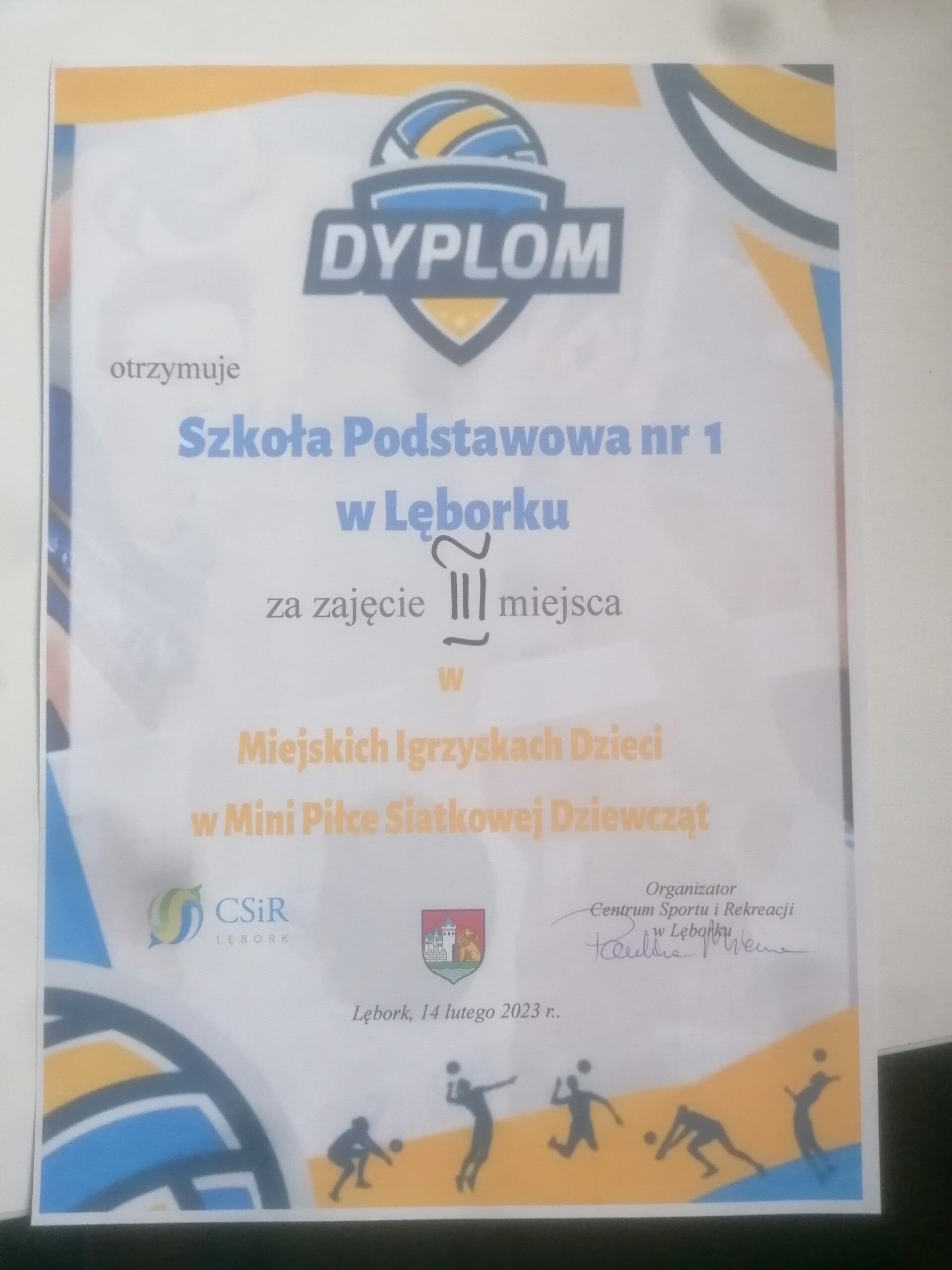 Dnia 14 lutego 2023 r. dziewczęta z naszej szkoły wzięły udział w Miejskich Igrzyskach Dzieci w mini siatkówce, które odbywały się w hali sportowej SP 8 w Lęborku. W turnieju wzięły udział trzy drużyny: SP 8, SP 4 oraz SP 1. Nasze dziewczęta w pierwszym meczu uległy gospodarzom zawodów SP 8 (2:0 w setach), które ostatecznie okazały się zwyciężczyniami turnieju. W drugim meczu, po wyrównanej walce przegraliśmy 2:1 z SP 4, w efekcie zajmując III miejsce. Dziewczęta z SP 8 będą reprezentowały Gminę Miasto Lębork w zawodach powiatowych.