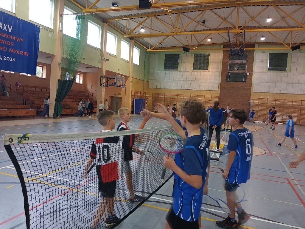 W miniony czwartek - 5 października - w Łebie odbyły się Mistrzostwa Powiatu Igrzysk Dzieci w Badmintonie. Do zawodów przystąpiło 5 zwycięskich szkół etapu miejskiego. Miasto Lębork reprezentowała Szkoła Podstawowa nr 1 w Lęborku w składzie: Dawid Burchardt, Michał Dawidowski oraz Oskar Myszkowski - wszyscy z klasy VIc. Opiekunem drużyny była pani Beata Ugodowska.