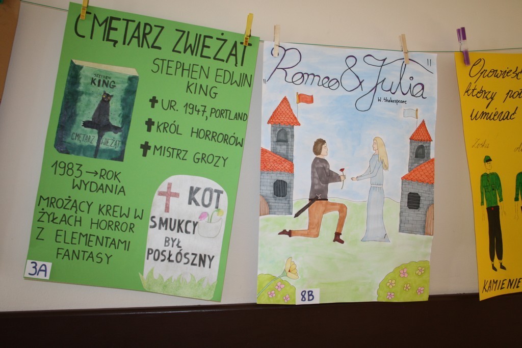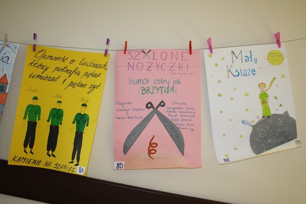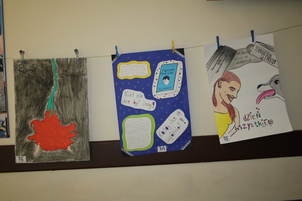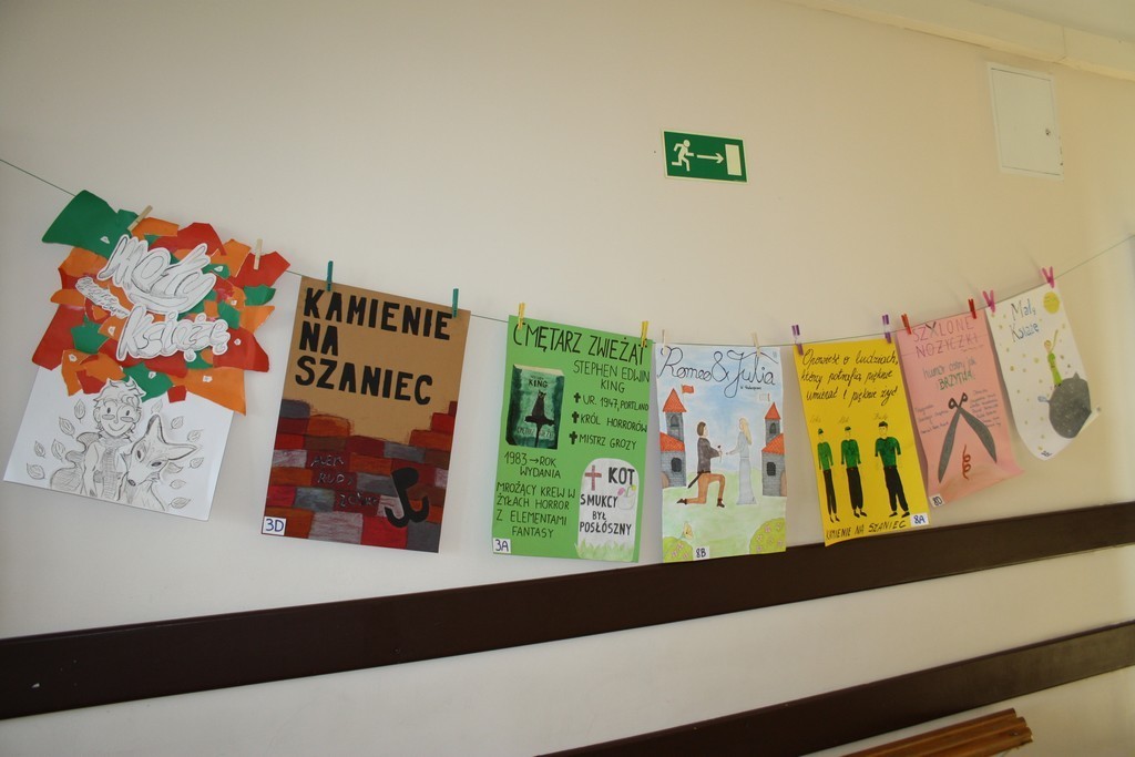 Kolejne zadania, które realizowały wszystkie klasy, dotyczyły wizji plakatu reklamującego książkę – prawie wszystkie zespoły postawiły na którąś ze szkolnych lektur.