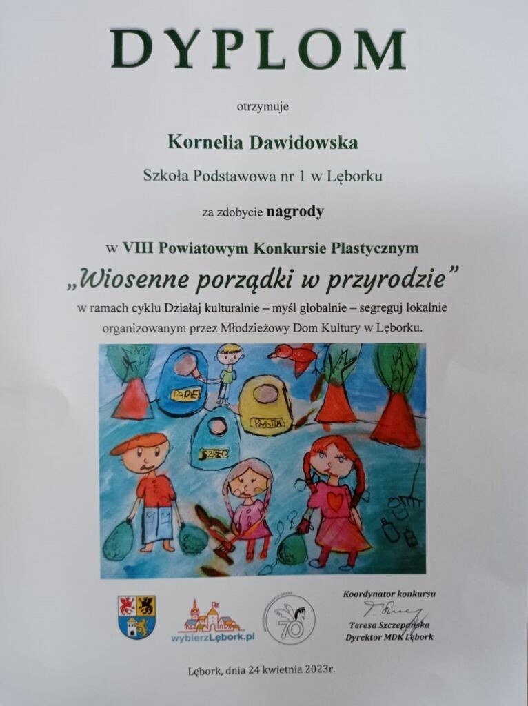 24 kwietnia 2023r. w Młodzieżowym Domu Kultury odbyło się podsumowanie VIII Powiatowego Konkursu Plastycznego z okazji Dnia Ziemi pt. „Wiosenne porządki w przyrodzie". Na konkurs wpłynęło łącznie 139 prac z 13 szkół i placówek Powiatu Lęborskiego. Jury przyznało łącznie 20 nagród i 5 wyróżnień.