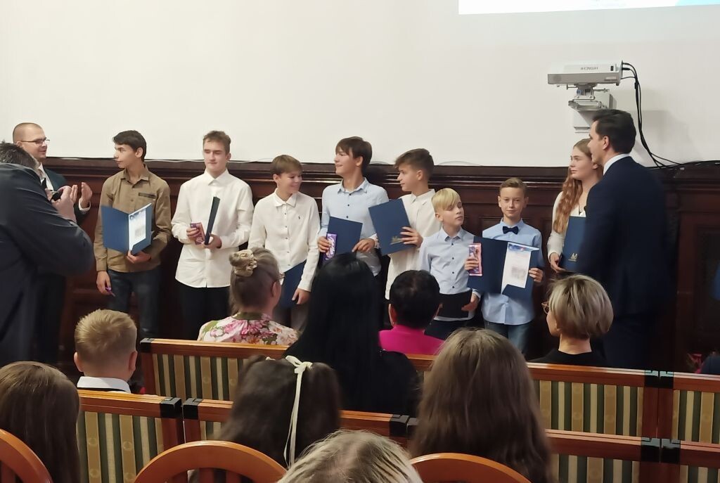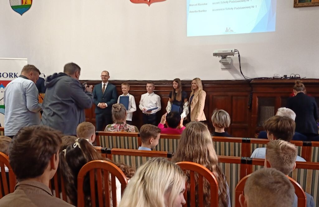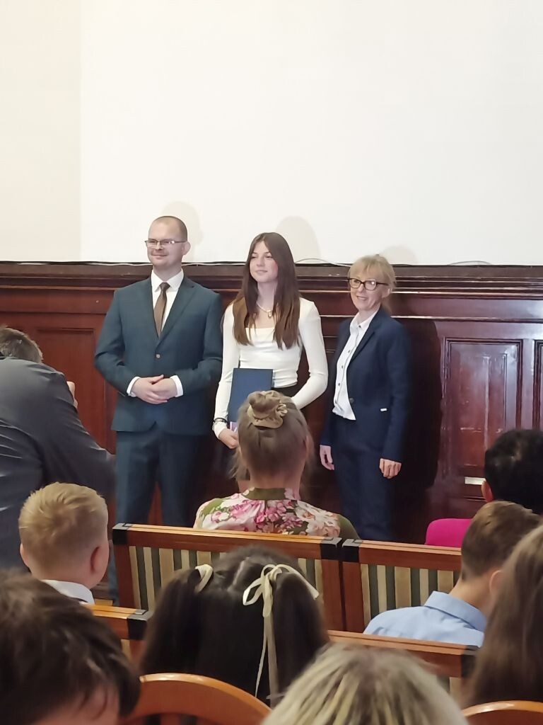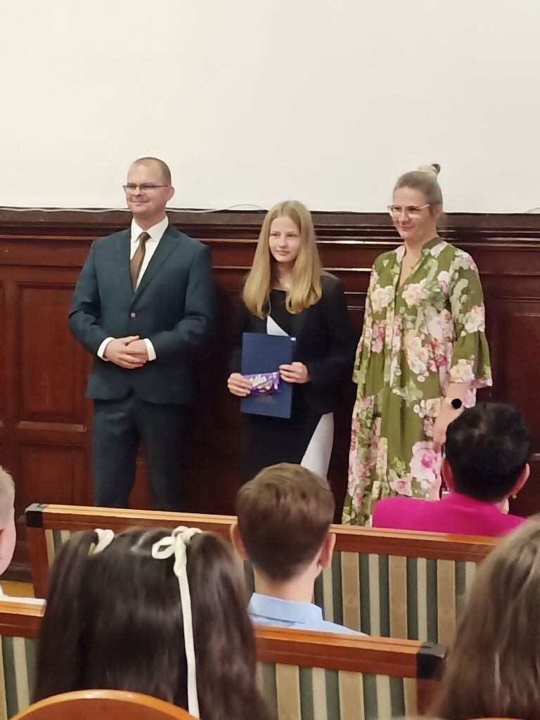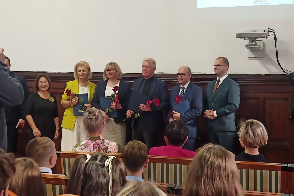14 października br. w Sali Rajców Urzędu Miejskiego w Lęborku odbyło się uroczyste spotkanie oświatowe z okazji Dnia Edukacji Narodowej. Na uroczystość przybyli uczniowie, nauczyciele i dyrektorzy szkół wyróżnieni za osiągnięcia w roku szkolnym 2023/2024. Nagrody przyznawane są w kilku kategoriach wiekowych oraz trzech dziedzinach: nauka, kultura i sztuka oraz sport. Poprzedni rok przyniósł nam wiele sukcesów w konkursach i zawodach. Komisje opiniujące wnioski zauważyły te sukcesy i nagrodziły jedenaścioro naszych uczniów. Burmistrz Miasta nagrodą uhonorował także pracowników szkoły: panią dyrektor Grażynę Ruszkowską oraz nauczycielki edukacji wczesnoszkolnej – panią Aleksandrę Nadworską i panią Karolinę Sopińską-Śpica.