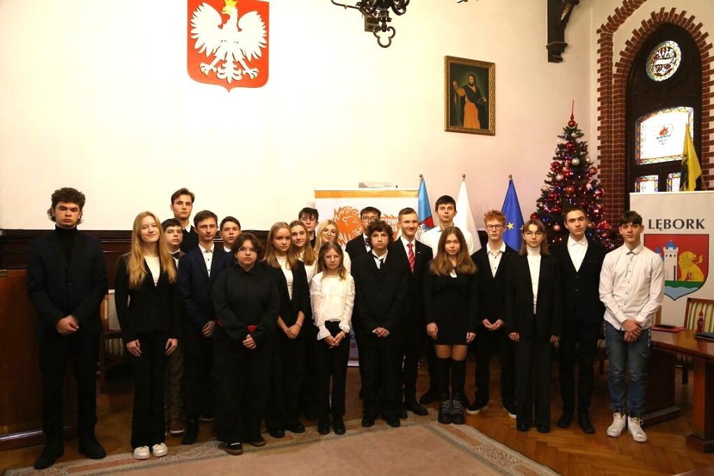 7 grudnia 2023 r. w Sali Rajców Urzędu Miejskiego odbyła się I Sesja V kadencji Młodzieżowej Rady Miasta Lęborka. W sesji uczestniczyli: Teresa Osowska – Szara - Zastępca Burmistrza, Jarosław Litwin - Przewodniczący Rady Miejskiej, Zbigniew Cybula - Wiceprzewodniczący Rady Miejskiej, Tomasz Sopyłło - Radny Rady Miejskiej, Marian Kurzydło - Sekretarz Miasta, Jan Pasko-Porys - Przewodniczący Młodzieżowej Rady Miasta Lęborka IV kadencji. Sesja rozpoczęła się wręczeniem Aktów powołania na Radnych Młodzieżowej Rady Miasta Lęborka V kadencji na lata 2023-2025 sygnowanych przez Witolda Namyślaka – Burmistrza Miasta Lęborka. Po wyborze Komisji Skrutacyjnej przeprowadzono wybory na Przewodniczącego, którym został Patryk Erni uczeń Zespołu Szkół Mechaniczno – Informatycznych, Wiceprzewodniczącą wybrano Amelię Treder - uczennicę Zespołu Szkół Gospodarki Żywnościowej i Agrobiznesu, zaś Sekretarzem Julię Dampc - uczennicę I Liceum Ogólnokształcącego. Do V kadencji Młodzieżowej Rady Miasta Lęborka powołano przedstawicieli uczniów z pozostałych lęborskich szkół. Szkołę Podstawową nr 1 reprezentują nasze dwie uczennice. Są to Agata Kurzydło z klasy VIIa oraz Hanna Jurczyk z klasy VIa.