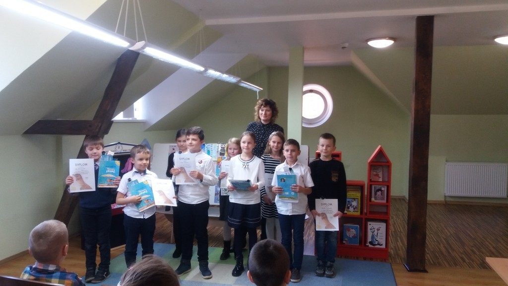 W konkursie czytelniczym mogli zmierzyć się tylko uczniowie klas II z rejonu lęborskiego. Ich zadaniem było piękne odczytanie jednego z wierszy Wandy Chotomskiej z tomiku ,,Nasze ptaki". Trudność zadania polegała na tym, że wiersz ten losowali przed samym konkursem , a na jego przygotowanie mieli tylko pięć minut. Ponad 30 uczniów zmierzyło się z interpretacją utworów naszej znanej poetki, zaś komisja nagrodziła tych najlepszych. Z czworga drugoklasistów reprezentujących SP1 Lębork aż troje zostało laureatami: