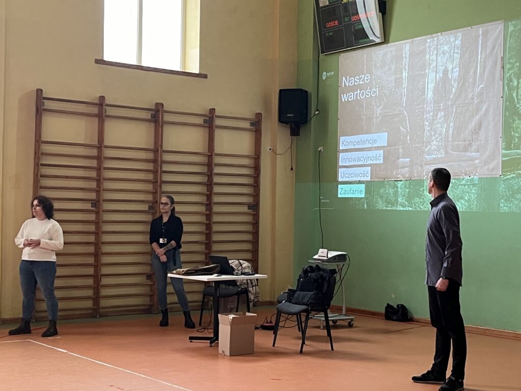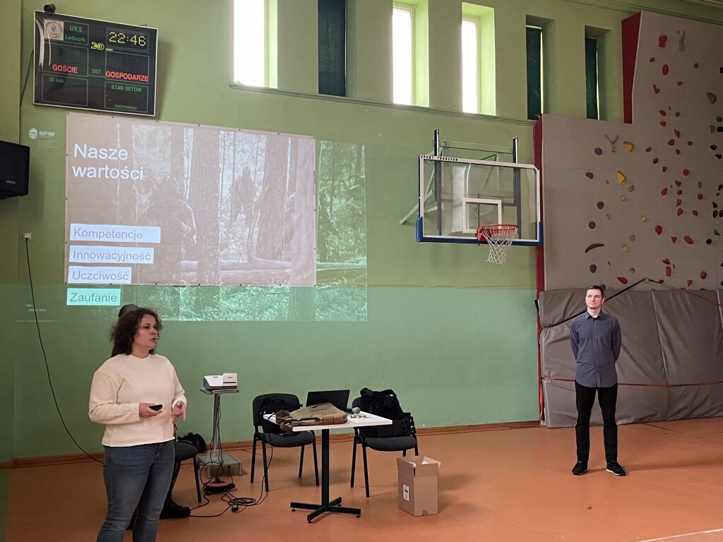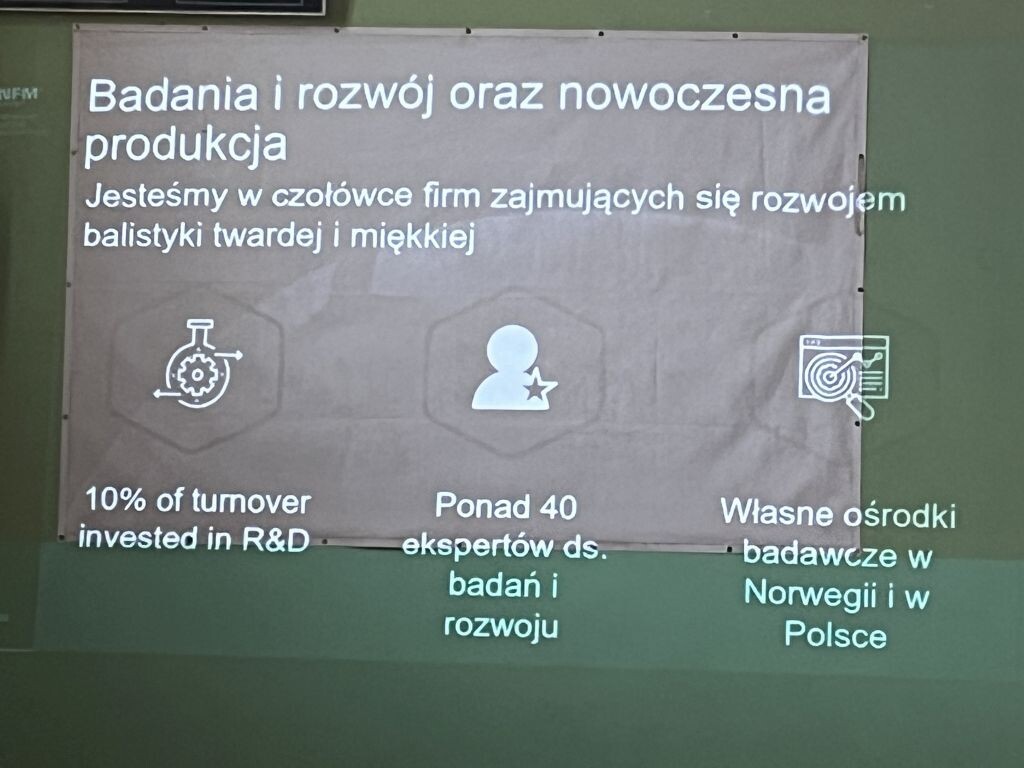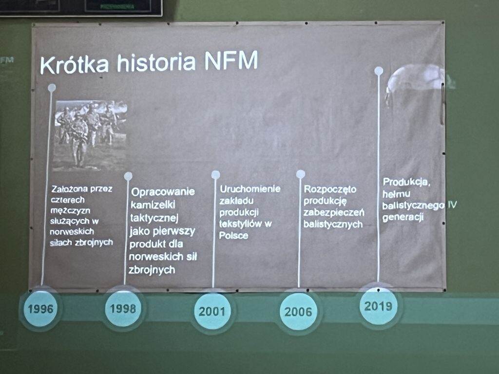 W miniony wtorek uczniowie klas siódmych w ramach projektu „Otwarta firma” uczestniczyli w spotkaniu z przedstawicielami norweskiej firmy NFM Production Sp. z o.o. Zaproszeni goście zapoznali naszych uczniów z historią firmy, jej działalnością, procesem planowania, projektowania oraz produkcji odzieży i asortymentu szytego w NFM - odzieży militarnej, kamizelek kuloodpornych oraz mundurów wojskowych. Siódmoklasiści mogli także zobaczyć, dotknąć, a także przymierzyć poszczególne części garderoby noszonej przez żołnierzy czy też policjantów.