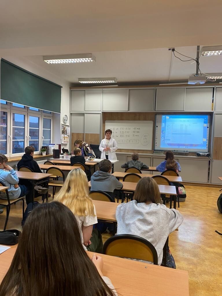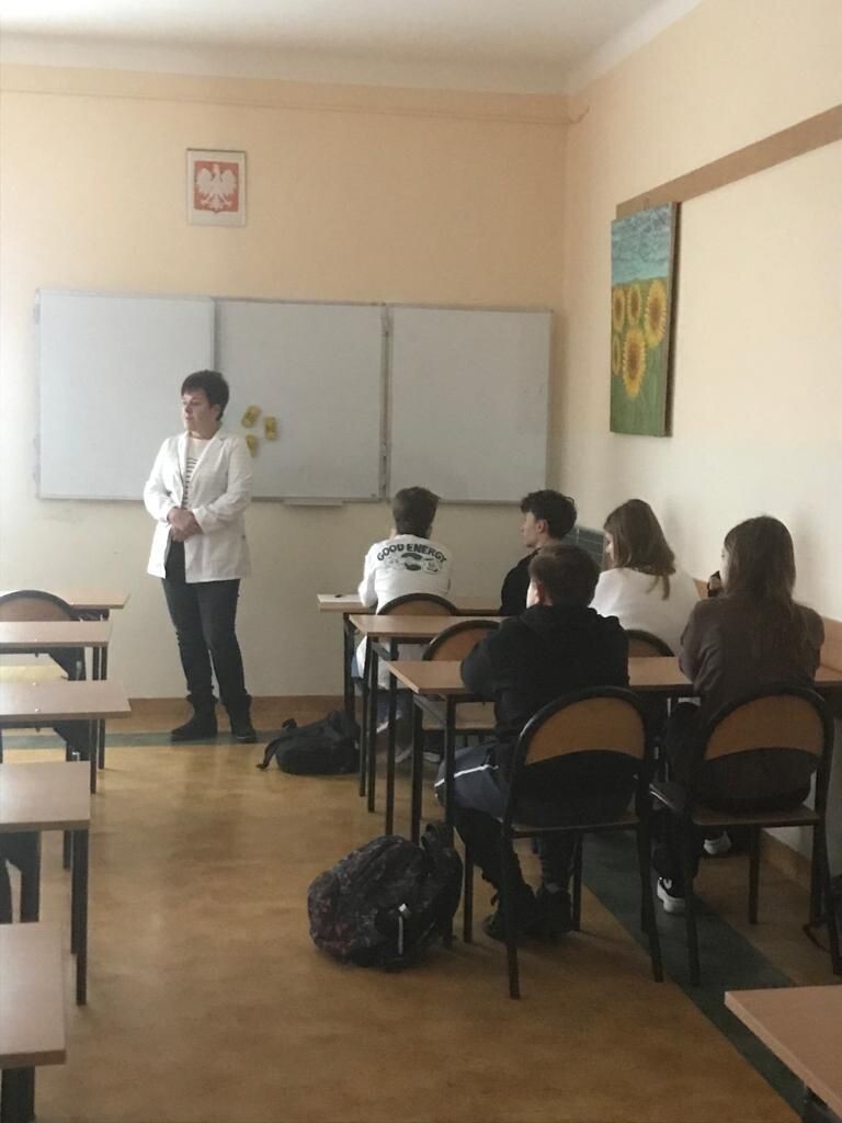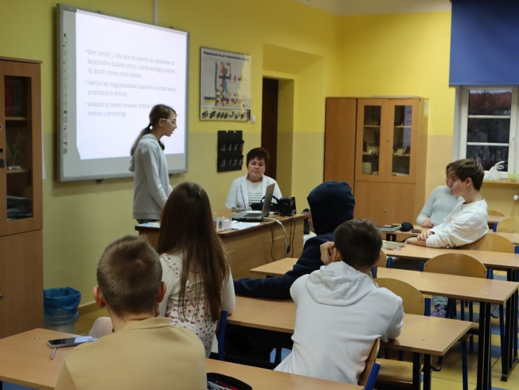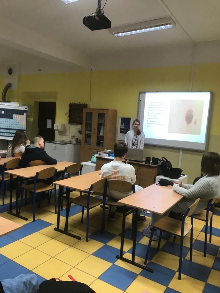 W związku z przystąpieniem Gminy Miasta Lębork do współpracy przy ogólnopolskim programie profilaktyki czerniaka w edycji 2022/2023 na zaproszenie Studenckiego Koła Naukowego Onkoma przy Klinice Gastroenterologii Onkologicznej w Narodowym Instytucie Onkologii im. Marii Skłodowskiej-Curie w Warszawie, również i w naszej szkole odbyły się zajęcia dotyczące tego ważnego, związanego ze zdrowiem tematu. Podczas lekcji wychowawczych w klasach 8a, 8b, 8c i 8d uczniowie obejrzeli prezentacje przygotowane przez uczennice – uczestniczki Kółka biologicznego – Annę Labudę (8a) i Annę Nawrot (8d). Uczestniczyli również w prelekcji przeprowadzonej przez szkolną pielęgniarkę – p. Hannę Rajczuk dotyczącą profilaktyki czerniaka.