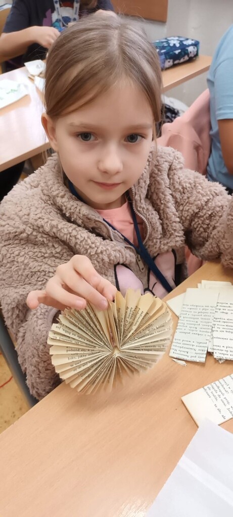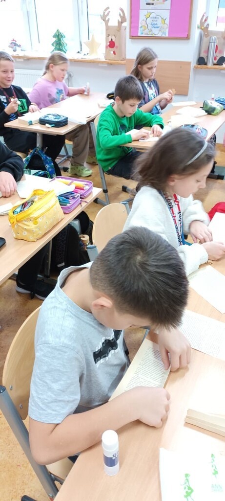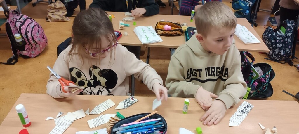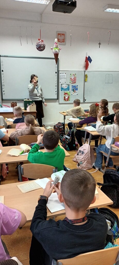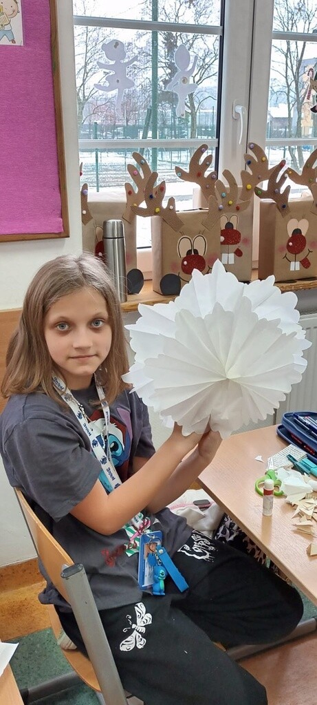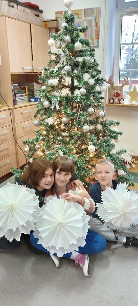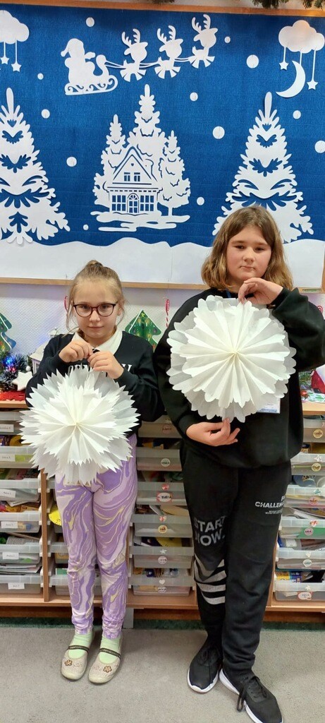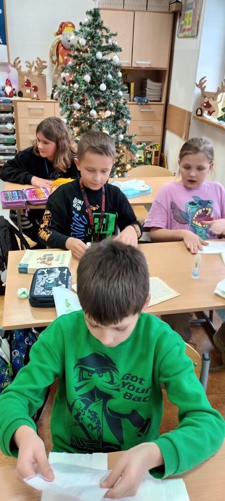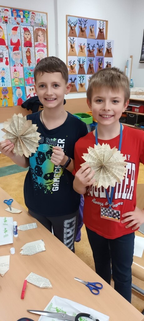 W tym tygodniu odbyły się w naszej klasie warsztaty plastyczne poprowadzone przez mamę Kasi. Uczniowie pod kierunkiem Pani Magdaleny Musiał – Podleżańskiej wykonywali gwiazdy, bombki, łańcuchy i ozdoby na choinkę lub do dekoracji świątecznego domu. Co ciekawe wszystkie elementy były ekologiczne. Za materiał posłużyły stare gazety i książki z makulatury oraz papierowe torebki. Dzieci zwróciły uwagę, że nie trzeba kupować gotowych dekoracji w sklepie, ale można je zrobić samemu. To sprawiło im bardzo dużą satysfakcję. Dziękujemy bardzo Pani Magdzie za tak ciekawe zajęcia!