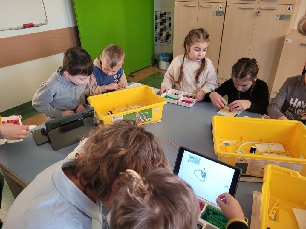 W przededniu mikołajek uczniowie z klasy piątej i szóstej postanowili zrobić niespodziankę przedszkolakom i do szkolnego Laboratorium Przyszłości zaprosili grupę Misiaków z Przedszkola nr 1 w Lęborku. Największym zainteresowaniem wśród sześciolatków cieszyły się roboty edukacyjne Photon, które rywalizowały ze sobą na torze z przeszkodami. Nie zabrakło również kreatywnej zabawy klockami Lego Spike Essential, która zakończyła się stworzeniem wspaniałych i co najważniejsze ruchomych budowli. Spotkanie wypełnione było śmiechem i radością nie tylko przedszkolaków, ale także uczniów naszej szkoły, którzy służyli pomocą i wspierali swoich gości podczas wykonywania zadań.
