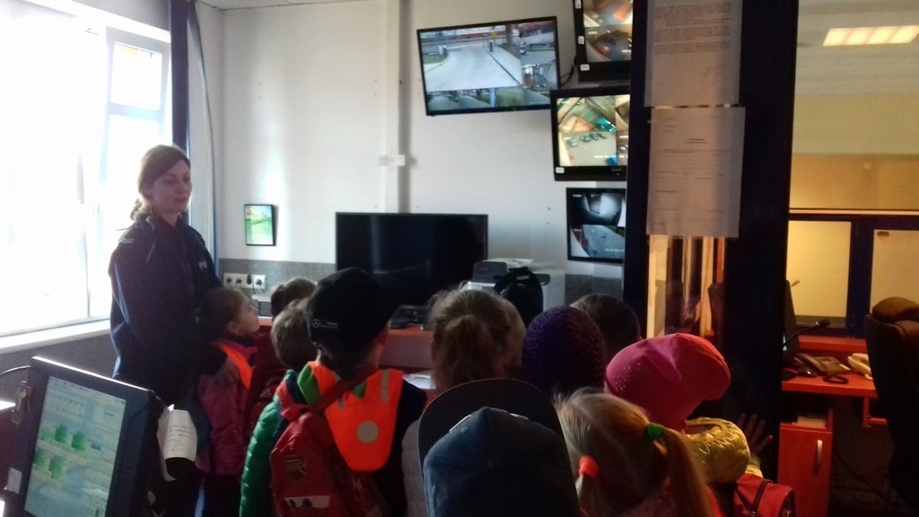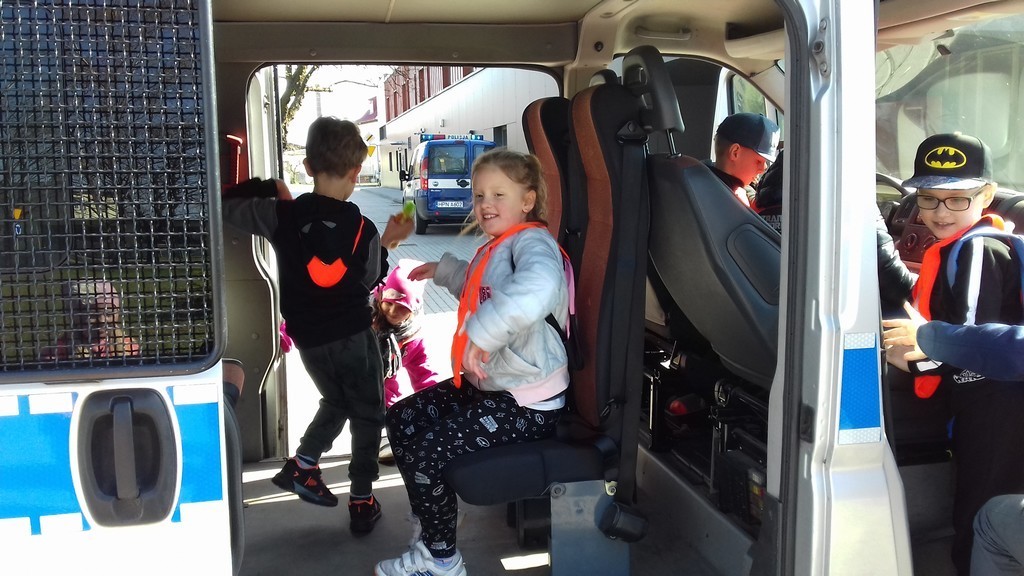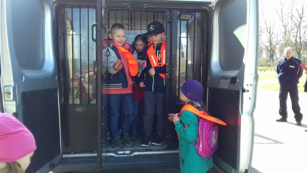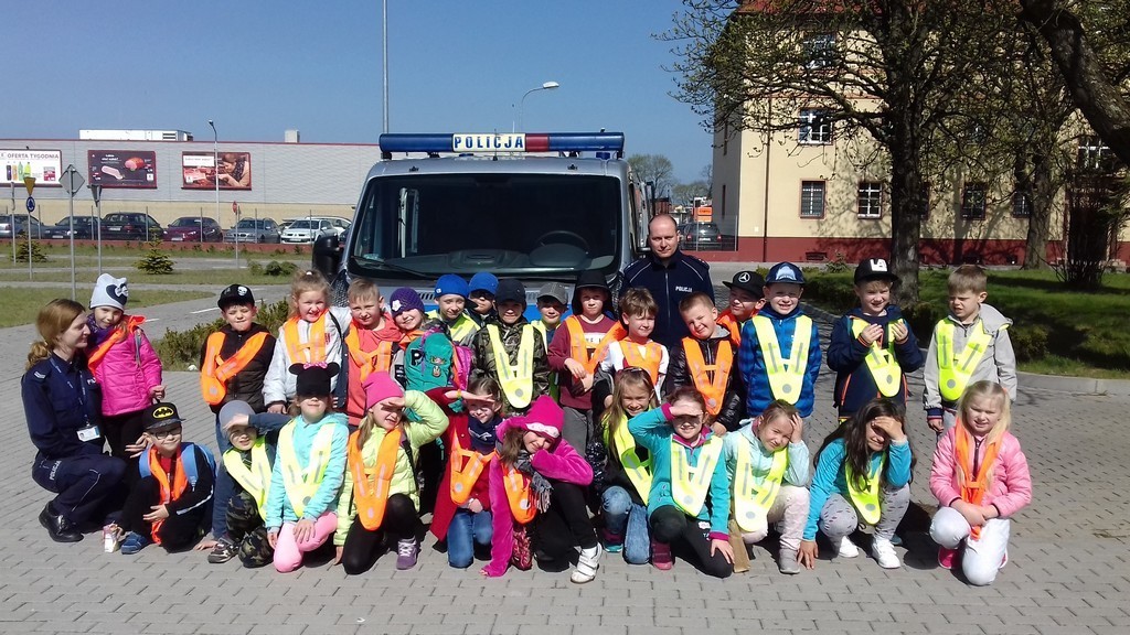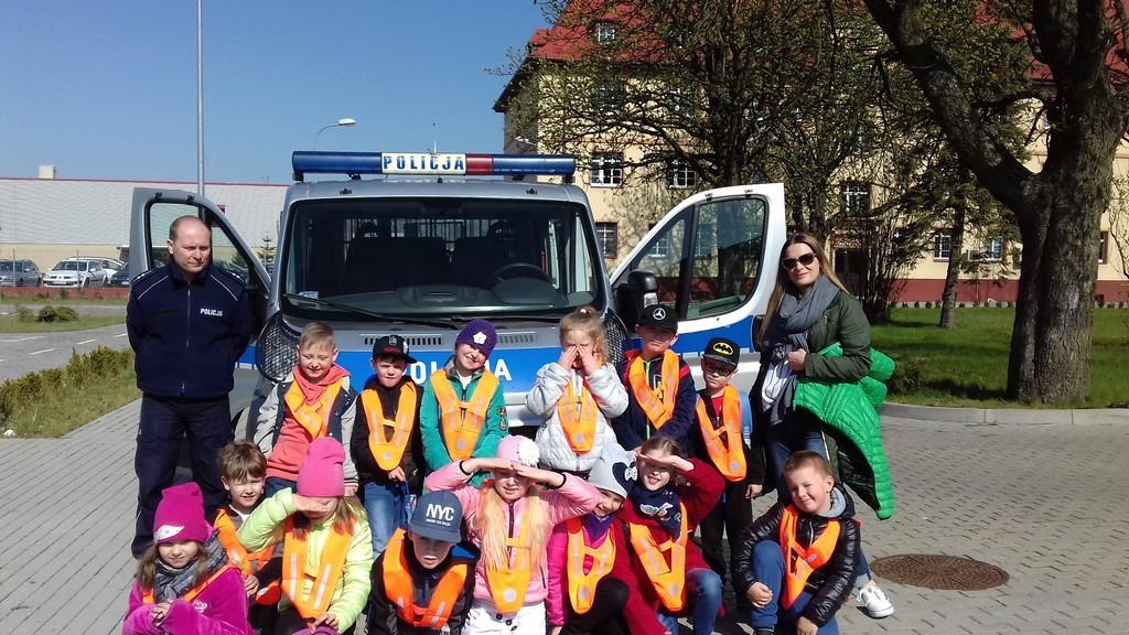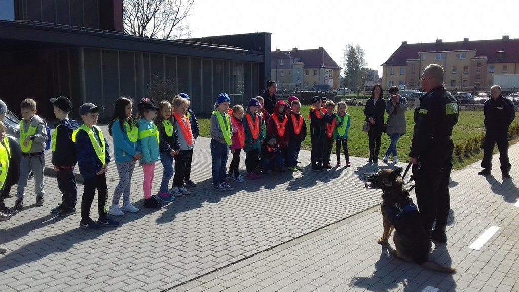 18 kwietnia mieliśmy niezwykłą okazję, aby zwiedzić, poznać od środka Komendę Powiatową Policji w Lęborku. Dzieci poznały specyfikę pracy policjantów, która jest bardzo trudna i odpowiedzialna. Miały okazję zobaczyć sprzęt policyjny, radiowozy, dyżurkę oraz cele dla osób zatrzymanych przez mundurowych. Największą atrakcją był pokaz tresury psa służbowego który na co dzień wykorzystywany jest w akcjach poszukiwawczo – tropiących. Funkcjonariusz, który jest przewodnikiem psa opowiedział o tym, jak szkoli się takie zwierzęta, przypomniał również o podstawowych zasadach zachowania podczas napotkania agresywnego psa. Podczas tego spotkania dużo rozmawialiśmy również na temat ogólnie pojętego bezpieczeństwa zarówno w domu, na ulicy, w szkole, jak również w kontaktach z osobami nieznajomymi. Wizyta w komendzie była niezwykle ciekawa i pouczająca.