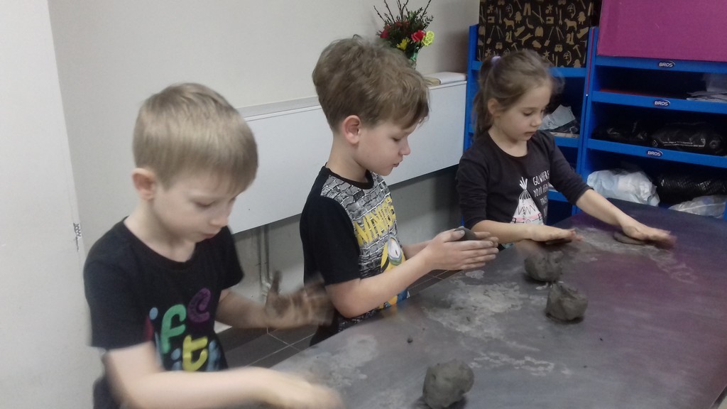 19 kwietnia naszym celem stało się Muzeum w Lęborku. Tutaj, pierwszoklasiści spędzili czas w nie mniej ciekawy sposób. Podczas warsztatów poznaliśmy kolejne z zanikających rzemiosł rękodzielniczych, jakim jest garncarstwo. Uczniowie własnoręcznie metodą wałeczkową i wygniatania wykonali z gliny naczynia codziennego użytku. Warsztaty wpłynęły zarówno na rozwój zdolności manualnych dzieci, jak również na wzbogacenie wiedzy w informacje historyczne.