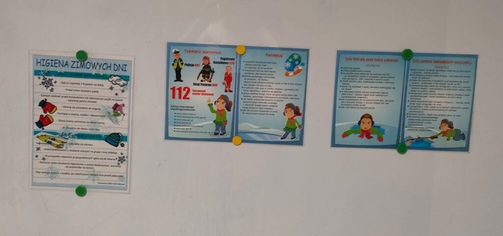 Przed zimowym wypoczynkiem, 24 stycznia br., zajęcia dotyczące „Bezpiecznych ferii” odbyły się również w szkolnej świetlicy. Uczniowie uczestniczyli w pogadance na temat zasad bezpiecznego spędzania czasu wolnego na świeżym powietrzu oraz ważnych numerów alarmowych. Zdobytą wiedzę wykorzystali podczas rozwiązywania krzyżówki. Dzieci wykonały również prace plastyczne.