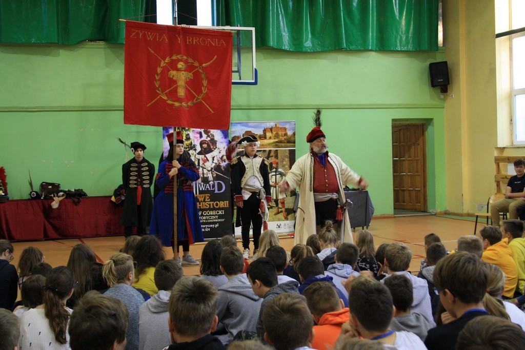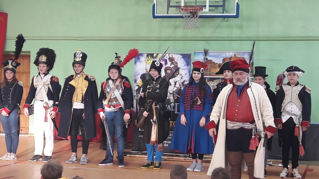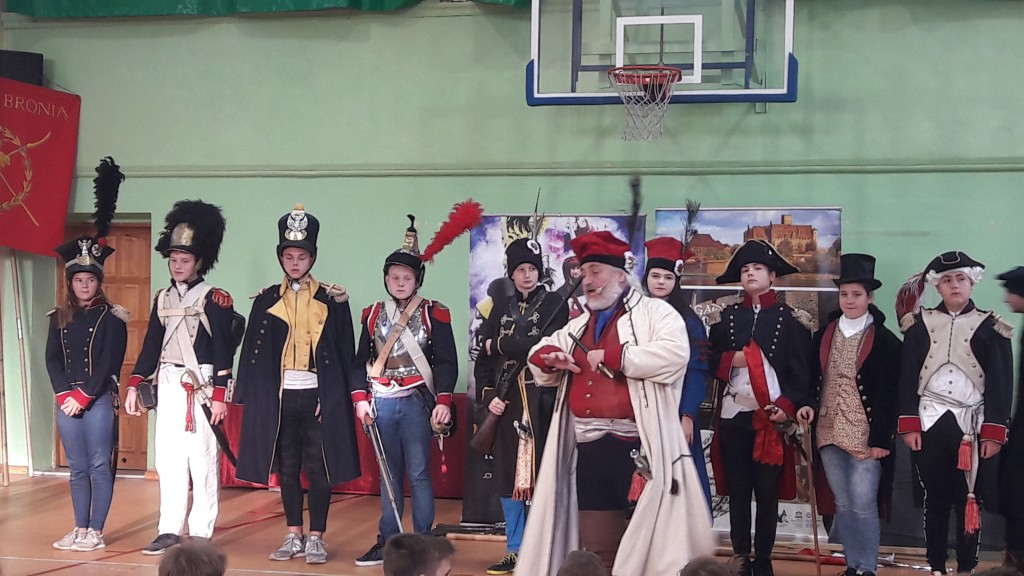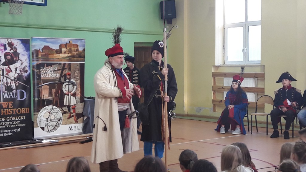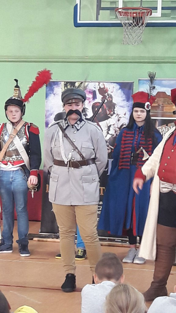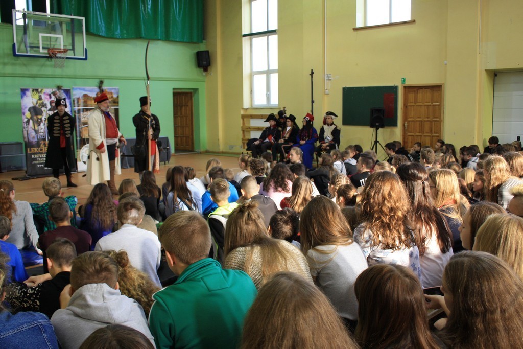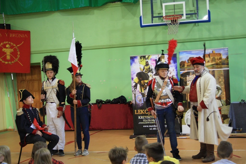 15 października nauczyciele historii zorganizowali w szkole żywą lekcję historii. Różni się ona od codziennych lekcji historii ogromem eksponatów, które prezentuje Teatr Historyczny Krzysztofa Góreckiego. Uczniowie klas VII szkoły podstawowej i III klas oddziałów gimnazjalnych mogli wziąć udział w niecodziennej podróży. Lekcja przez powstanie kościuszkowskie, powstanie listopadowe i styczniowe przyprowadziła uczniów do postaci Józefa Piłsudskiego, do dnia odzyskania niepodległości. Nie zabrakło tez akcentów związanych z patronem naszej szkoły Józefem Wybickim- autorem słów Mazurka Dąbrowskiego. Profesjonalna oprawa pokazu, spora dawka humoru i uczniowie w roli statystów to lekcja, którą nasi uczniowie na długo zapamiętają. W 100- lecie niepodległości Polski pamiętamy o tych, którym zawdzięczamy wolną Polskę.
