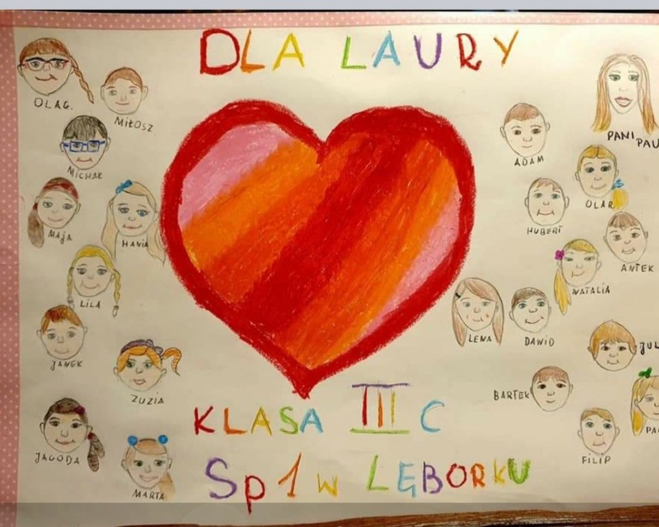 Z okazji zbliżających się Świąt Bożego Narodzenia uczniowie klasy IIIc wraz z rodzicami i wychowawcą ,p. Paulą Wróblewską postanowili przekazać 1100 zł na ratowanie życia małej Laury z Lęborka. Dzieci zrezygnowały z paczek pod choinkę , które otrzymałyby w szkole, aby choć odrobinę wspomóc Laurkę w walce o zdrowie i życie. Zachęcamy inne klasy i szkoły do podobnej inicjatywy. Dla naszych dzieci to małe wyrzeczenie , a dla Laury szansa na lepsze życie.