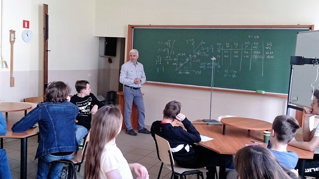 Zajęcia z dr J.Gondek odbyły się w dwóch półtoragodzinnych blokach. Dotyczyły kinematyki ruchów zmiennych, ruchu po okręgu oraz wahadła matematycznego. Uczniowie poznali uniwersytecką interpretację pojęć kinematyki i ruchu po okręgu oraz ich zastosowanie w rozwiązywaniu wahadła matematycznego. Wykład mgr. J. Borkały dotyczył możliwości istnienia życia pozaziemskiego.