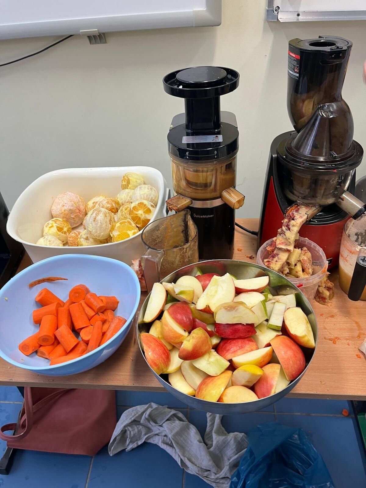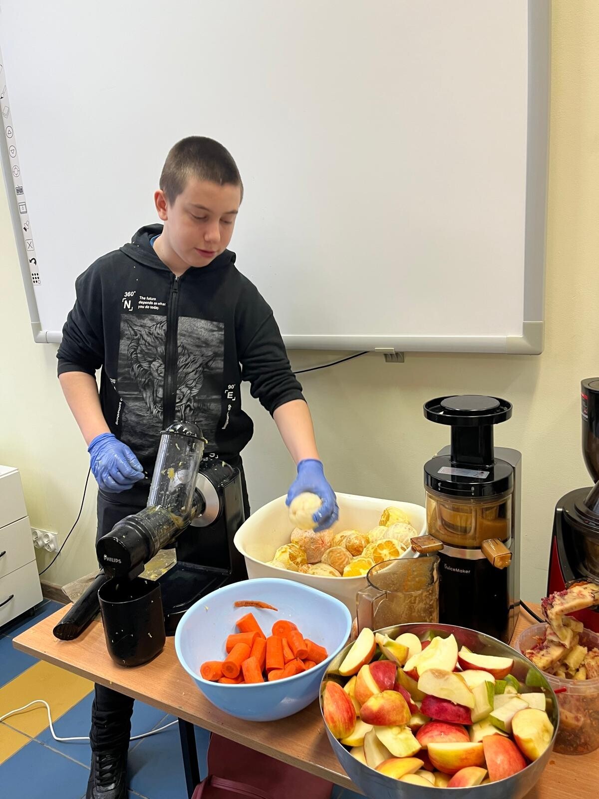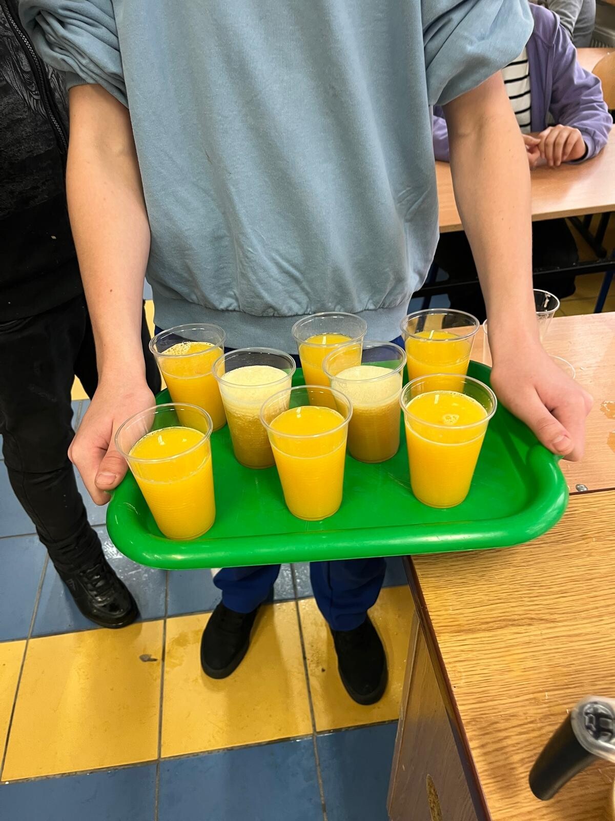 W środę po raz kolejny w naszej szkole odbyła się akcja Soczki - Promocja Zdrowia. Uczniowie, jak zwykle, stanęli na wysokości zadania i przynieśli mnóstwo owoców , jak również warzyw, z których członkowie samorządu uczniowskiego przygotowali smaczne i zdrowe soki. Na stoisku pojawiły się soczki pomarańczowe, jabłkowe, mandarynkowe, marchwiowe oraz wiele innych. Można powiedzieć, że sprzedawały się jak świeże bułeczki, niemal każdy uczeń w szkole wypił co najmniej jeden pyszny owocowy napój. Nauczyciele i pracownicy szkoły również skorzystali i mogli wypić regenerujące i orzeźwiające soki. Z niecierpliwością czekamy na kolejne takie akcje!