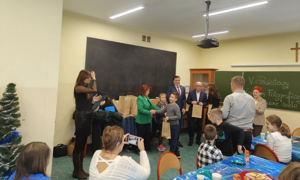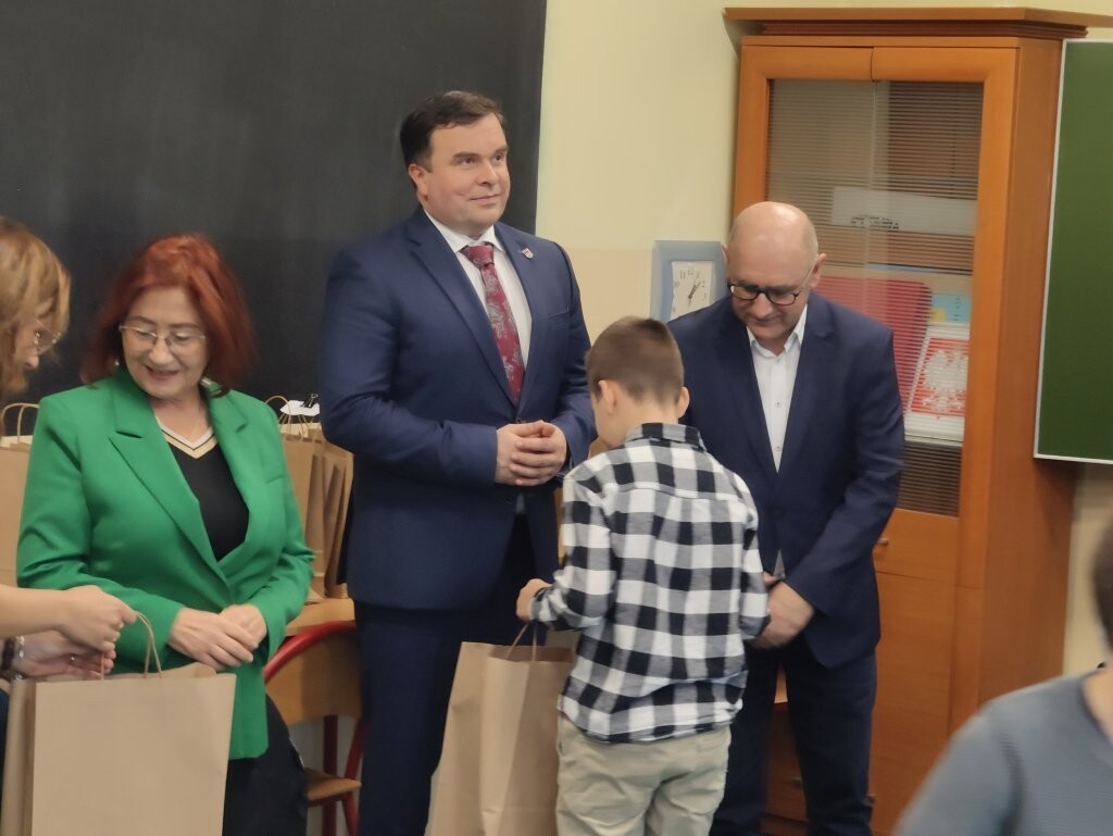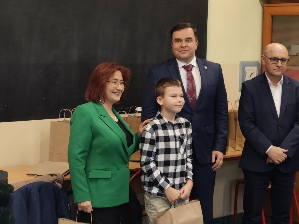 15 grudnia 2025r. w Szkole Podstawowej nr 8 w Lęborku odbyło się uroczyste podsumowanie V Powiatowego Konkursu „Ożywione dzieło". Podczas tego wydarzenia gratulacje laureatom składali: zastępca burmistrza Lęborka Krzysztof Król oraz wiceprzewodnicząca Rady Miejskiej Halina Łukian, którzy wręczyli nagrody ufundowane przez Miasto Lębork. Do gratulacji dołączyli też dyrektor szkoły Daniel Nadworski oraz wicedyrektor Jolanta Sajko. Konkurs polegał na wybraniu ilustracji z baśni, wiernym jej odwzorowaniu i wykonaniu fotografii. W kategorii klas I-III drugie miejsce zajął uczeń klasy 3c Jakub Domaros, zaś wyróżnienie otrzymała praca Juliana Borońskiego z klasy 1c. Serdecznie gratulujemy!