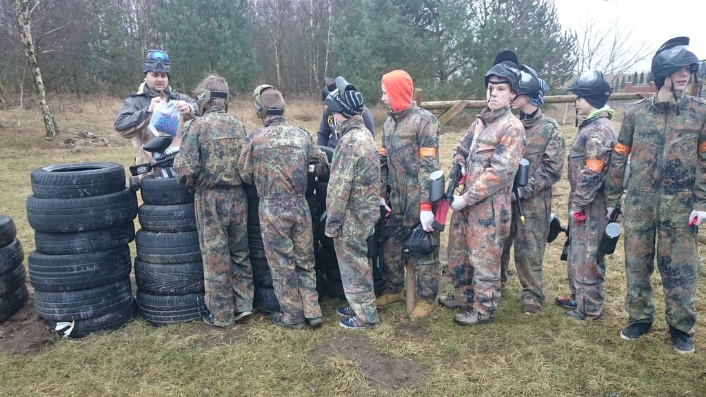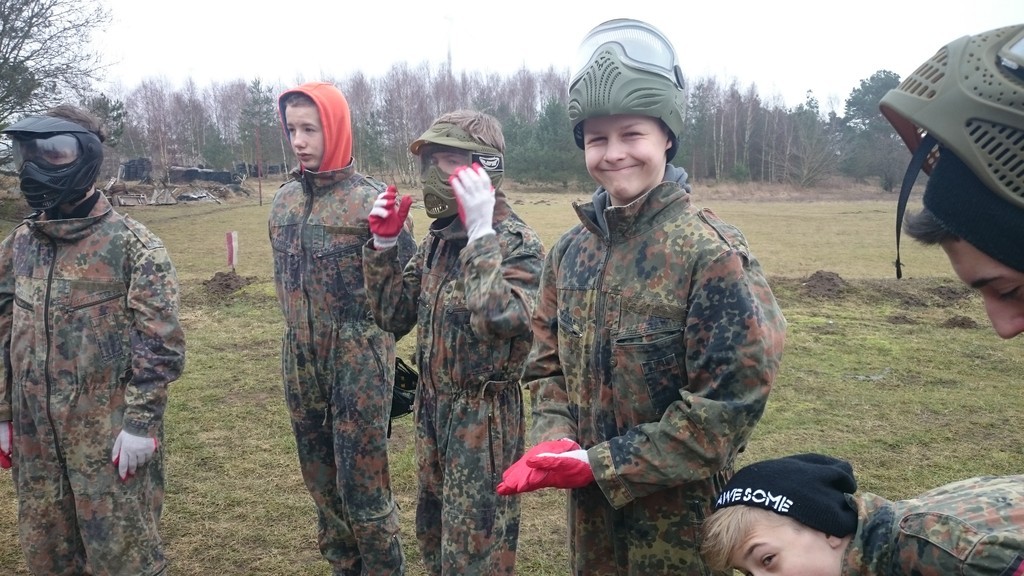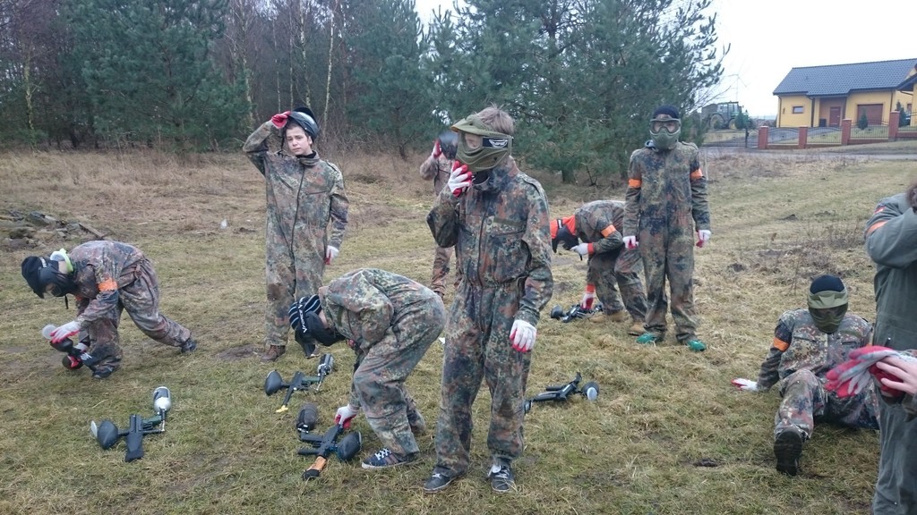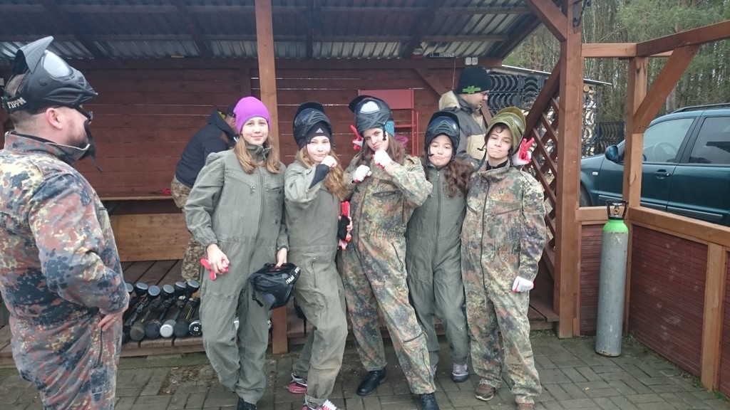 W sobotę, 06.02.2016r. klasa Is pod opieką wychowawcy oraz p. Sebastiana Guderskiego wzięła udział w grze zespołowej - paintball. Na Poligonie Delta w Darżynie pod czujnym okiem instruktorów dwie drużyny rywalizowały zawzięcie o zwycięstwo. Nie obyło się bez ,,ofiar", które zostały trafione kolorowymi kulkami. Pierwszym ,,rannym" został , oczywiście... p. Guderski , którego uczniowie od dzisiaj będą nazywać Niebieskobrodym. Pysio zaś wrócił zapewne do domu z zafarbowaną (również na niebiesko) grzywką , a reszta... no, cóż... parę siniaków, wspaniałe wrażenia i chęć przeżycia tej przygody raz jeszcze. Może na wiosnę...