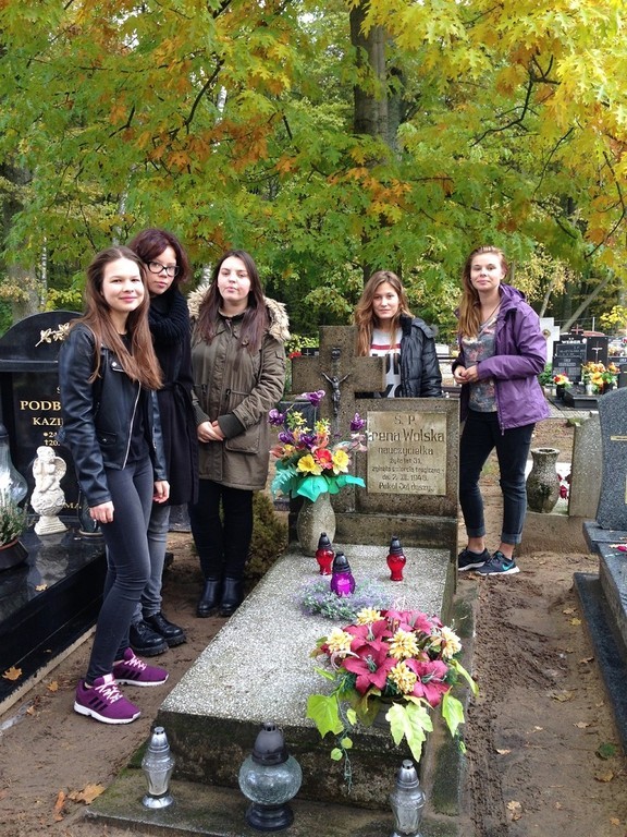 Gimnazjaliści odwiedzili groby zmarłych pracowników naszej placówki, gdzie mogli uczcić ich pamięć, zapalając symboliczne znicze. Sprzątnęli i udekorowali grób, nad którym nasza szkoła sprawuje opiekę. Dla uczniów była to doskonała okazja, aby dowiedzieć się czegoś więcej na temat tradycji tego święta, zastanowić się nad przemijaniem, przywołać ulotne wspomnienia o najbliższych zmarłych. Bo człowiek żyje tak długo, jak długo trwa pamięć o nim...