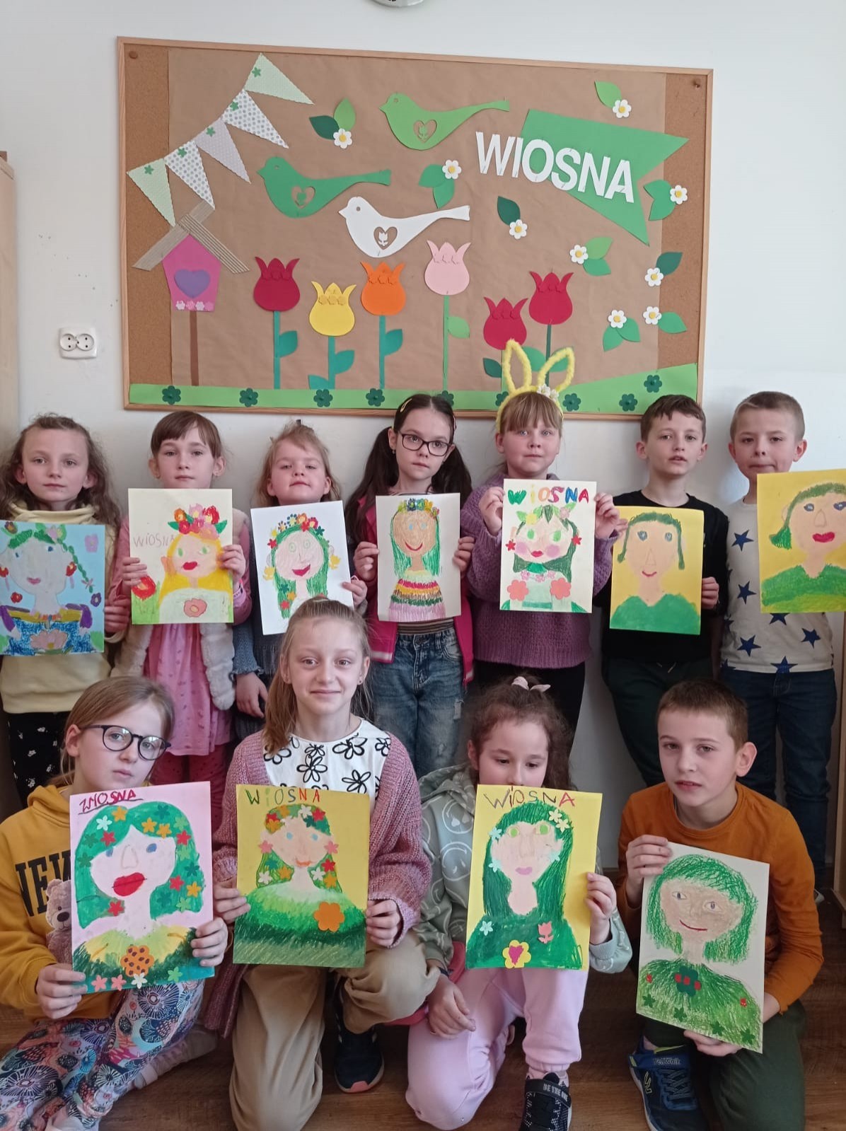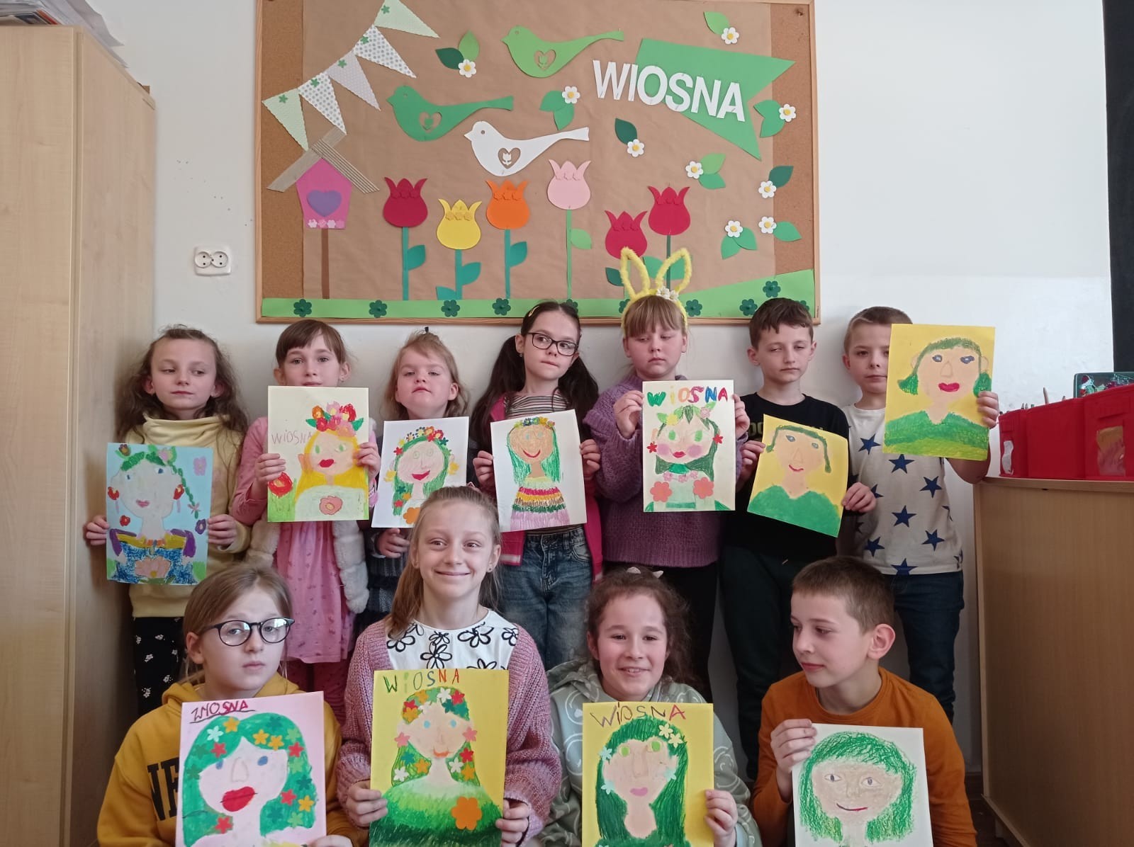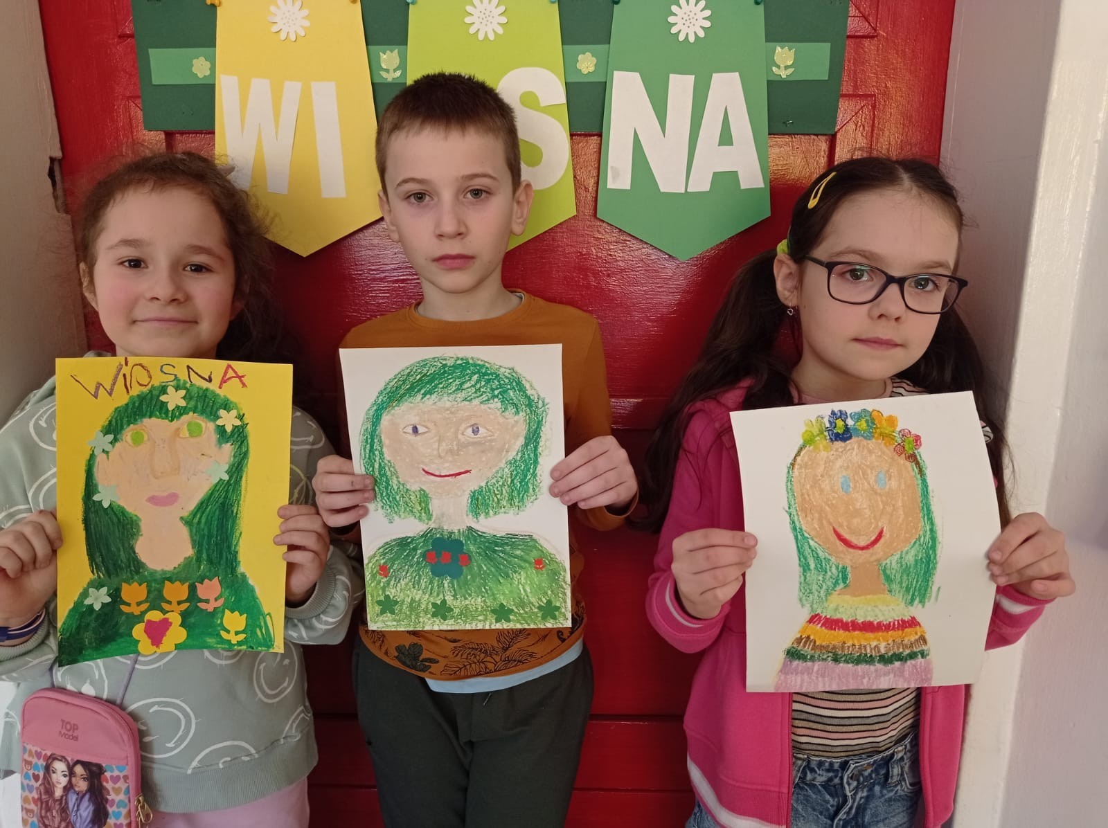 Za oknami zrobiło się już cieplej i zakwitły piękne pierwsze wiosenne kwiaty. Podczas zajęć plastycznych, świetliki klas pierwszych i trzecich, wykazując się dużą pomysłowością i talentem wykonały portrety „Pani Wiosny”. Nic tylko pozazdrościć. W ten właśnie sposób wiosna już na dobre zagościła w naszej świetlicy. Zapraszamy do galerii prac.
