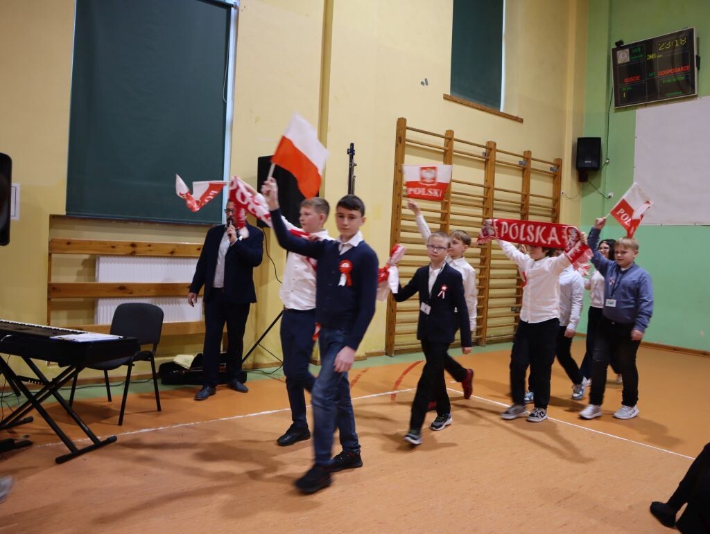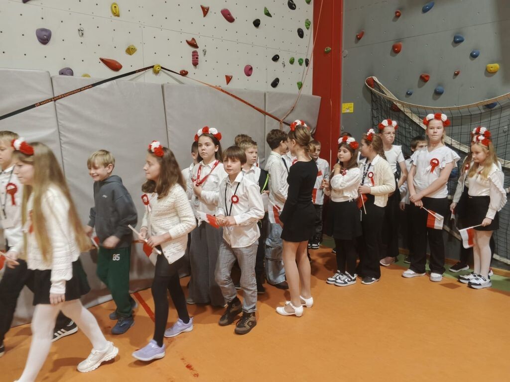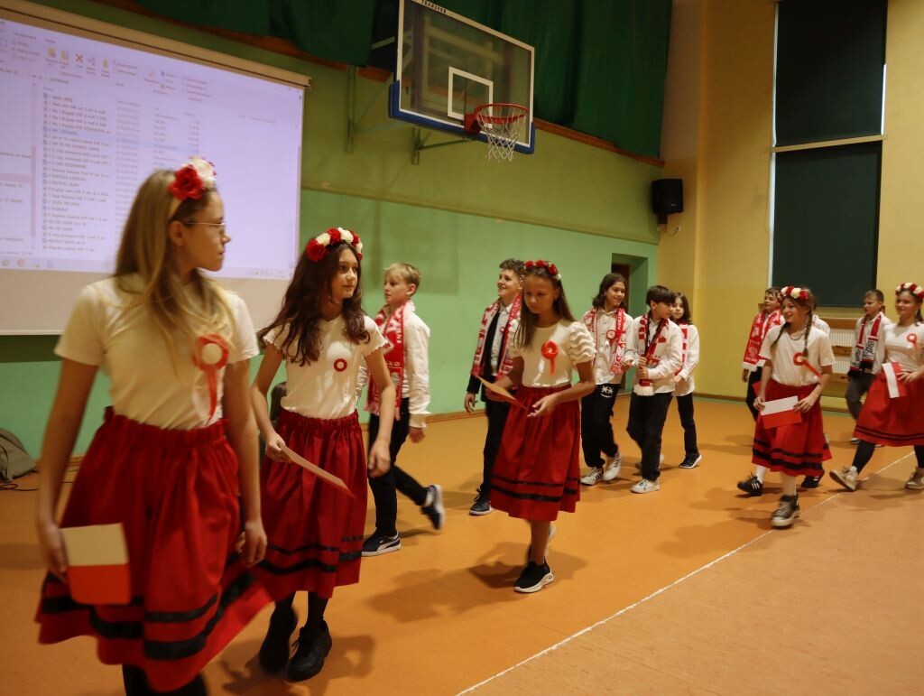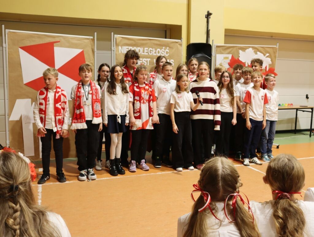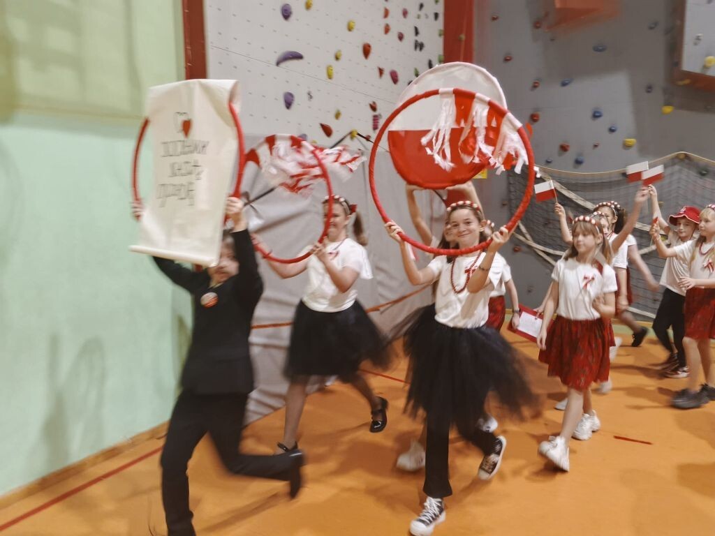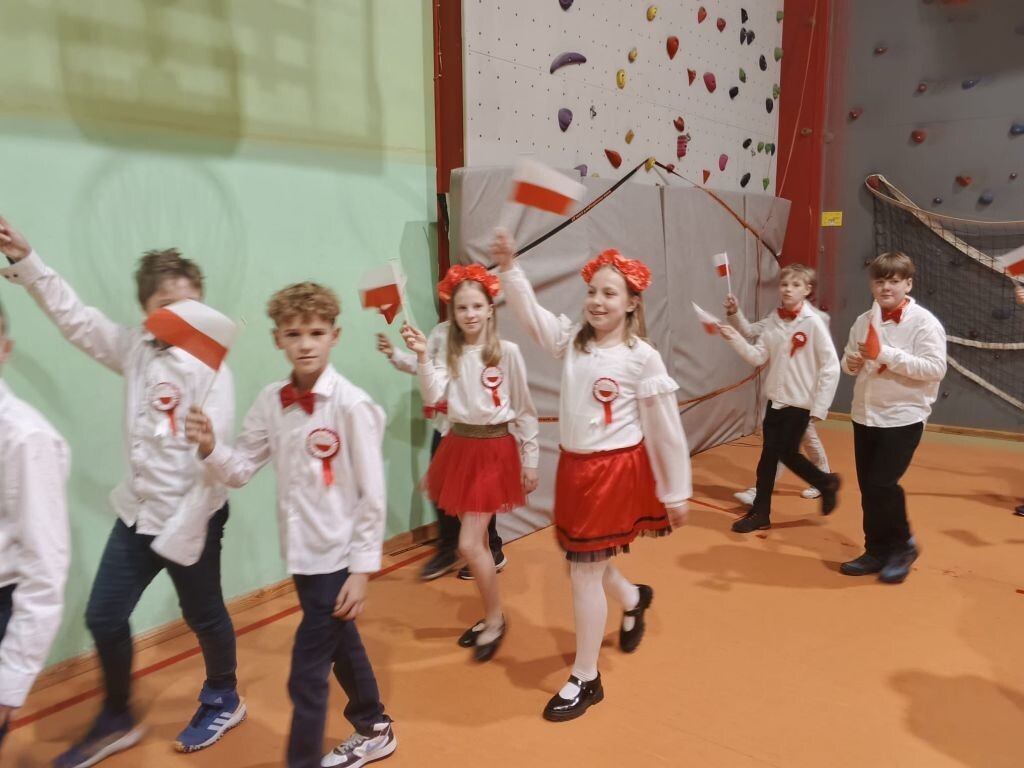 W miniony piątek obchodziliśmy w naszej szkole 107. rocznicę odzyskania niepodległości przez Polskę. Uczciliśmy ten dzień, wyrażając swój patriotyzm i pamięć o bohaterach, którzy przez 123 lata zaborów walczyli i oddawali życie w imię wolności Polski. Tego dnia uczniowie klas 4-7 uczestniczyli w Wielkim Turnieju Młodych Polaków, do którego przygotowywali się od kilku tygodni. Zadaniem każdej klasy było zaśpiewanie wylosowanej pieśni legionowej, przygotowanie wiersza o postaci związanej z niepodległością, udział w quizie wiedzowym oraz przemarsz w barwnym korowodzie. Uczniowie przygotowali się do tego wydarzenia wzorowo - było patriotycznie, uroczyście i radośnie. Tego samego dnia uczniowie klas ósmych przygotowali i przeprowadzili lekcje dla swoich młodszych kolegów i koleżanek z klas I-III, dotyczące wydarzeń związanych z tematem niepodległości.