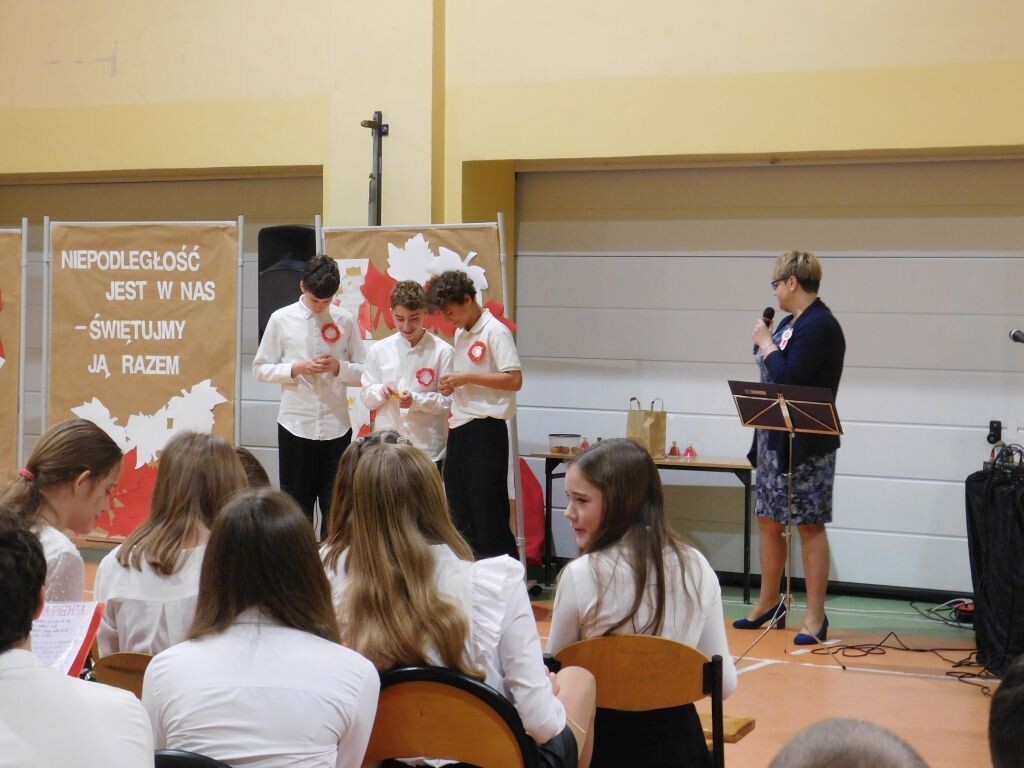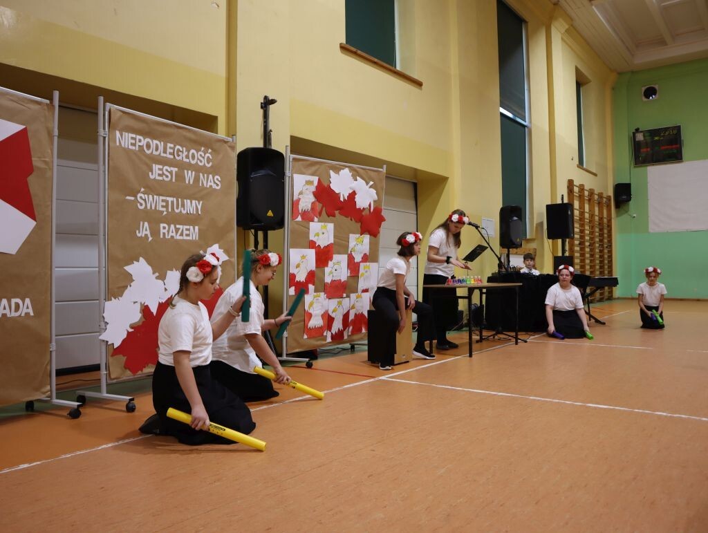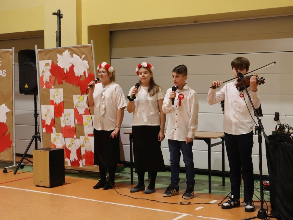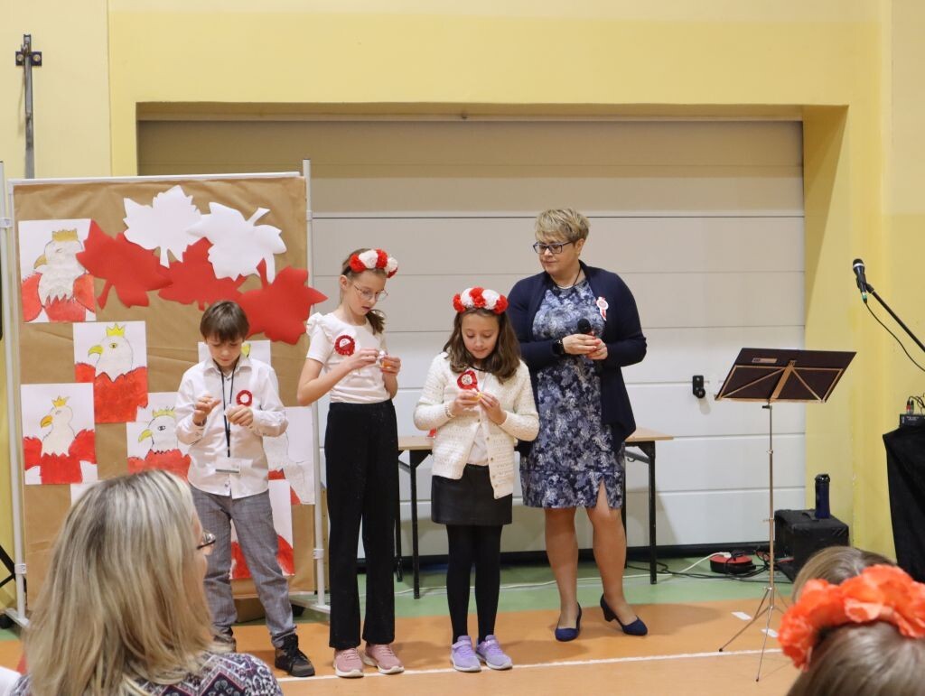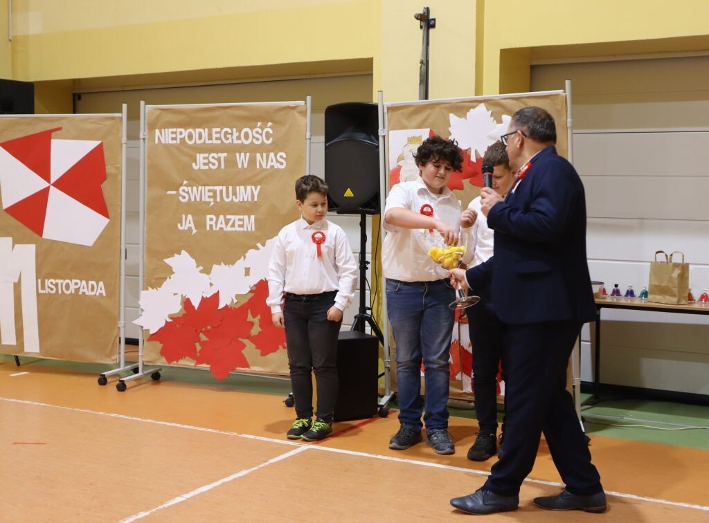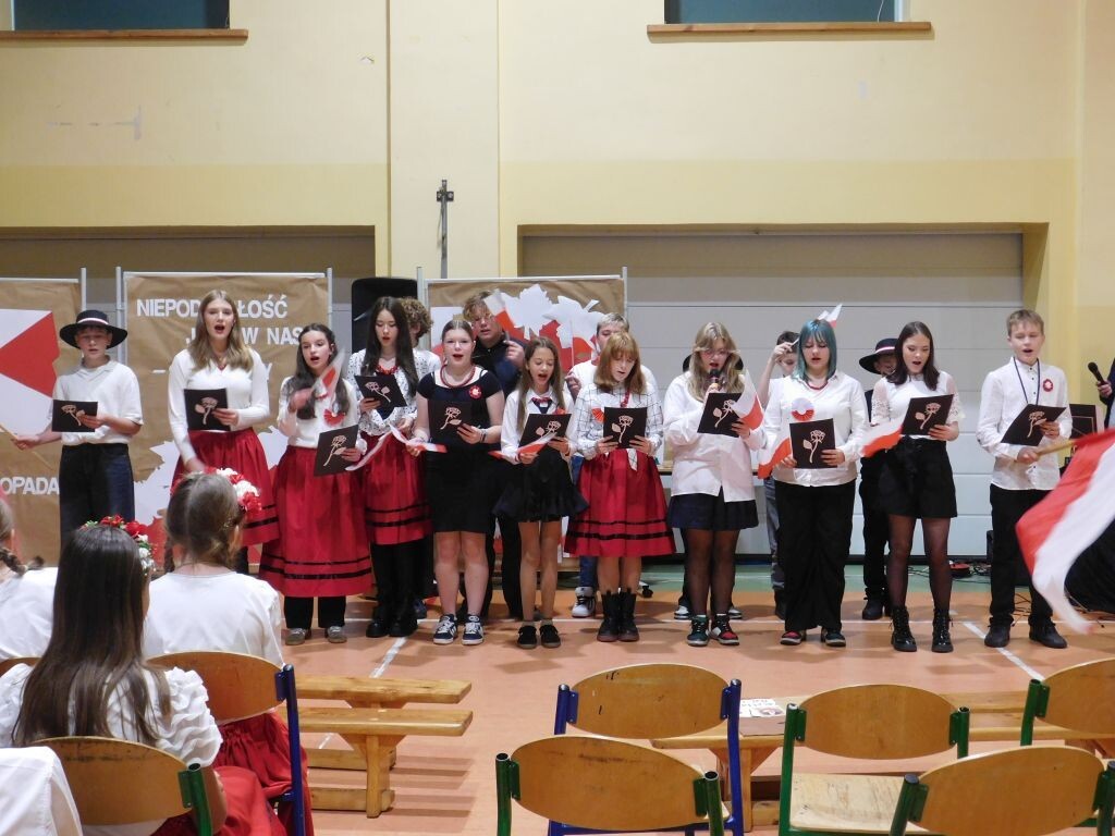 W miniony piątek obchodziliśmy w naszej szkole 107. rocznicę odzyskania niepodległości przez Polskę. Uczciliśmy ten dzień, wyrażając swój patriotyzm i pamięć o bohaterach, którzy przez 123 lata zaborów walczyli i oddawali życie w imię wolności Polski. Tego dnia uczniowie klas 4-7 uczestniczyli w Wielkim Turnieju Młodych Polaków, do którego przygotowywali się od kilku tygodni. Zadaniem każdej klasy było zaśpiewanie wylosowanej pieśni legionowej, przygotowanie wiersza o postaci związanej z niepodległością, udział w quizie wiedzowym oraz przemarsz w barwnym korowodzie. Uczniowie przygotowali się do tego wydarzenia wzorowo - było patriotycznie, uroczyście i radośnie. Tego samego dnia uczniowie klas ósmych przygotowali i przeprowadzili lekcje dla swoich młodszych kolegów i koleżanek z klas I-III, dotyczące wydarzeń związanych z tematem niepodległości.