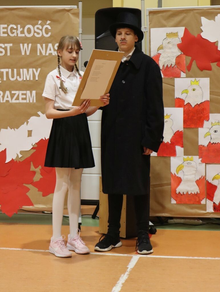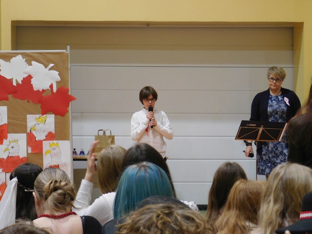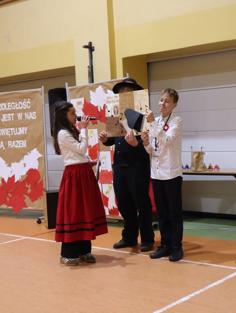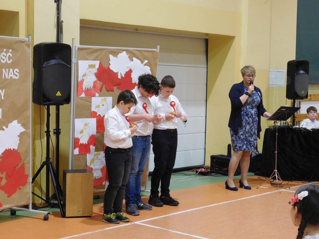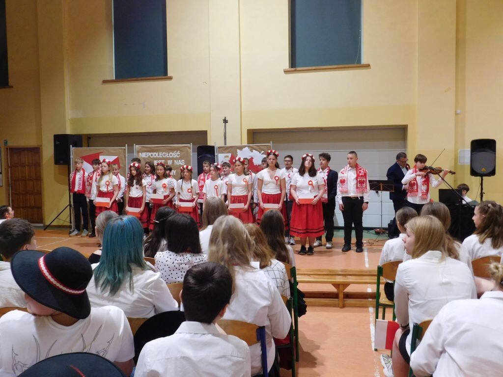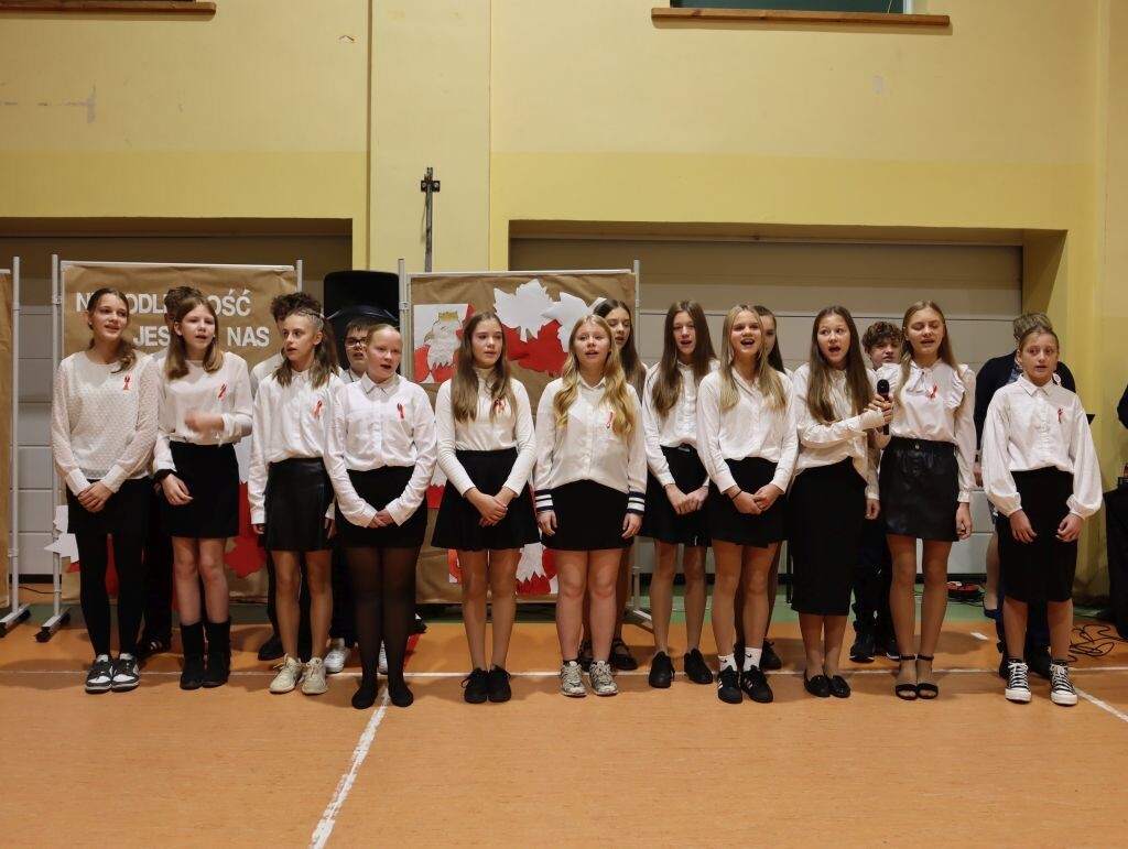 W miniony piątek obchodziliśmy w naszej szkole 107. rocznicę odzyskania niepodległości przez Polskę. Uczciliśmy ten dzień, wyrażając swój patriotyzm i pamięć o bohaterach, którzy przez 123 lata zaborów walczyli i oddawali życie w imię wolności Polski. Tego dnia uczniowie klas 4-7 uczestniczyli w Wielkim Turnieju Młodych Polaków, do którego przygotowywali się od kilku tygodni. Zadaniem każdej klasy było zaśpiewanie wylosowanej pieśni legionowej, przygotowanie wiersza o postaci związanej z niepodległością, udział w quizie wiedzowym oraz przemarsz w barwnym korowodzie. Uczniowie przygotowali się do tego wydarzenia wzorowo - było patriotycznie, uroczyście i radośnie. Tego samego dnia uczniowie klas ósmych przygotowali i przeprowadzili lekcje dla swoich młodszych kolegów i koleżanek z klas I-III, dotyczące wydarzeń związanych z tematem niepodległości.