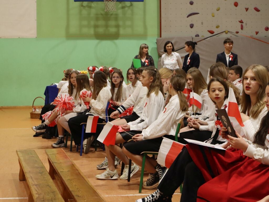 Nasze świętowanie niepodległości nie zakończyło się tylko na tym. 11 listopada w wielu domach wywieszone zostały biało-czerwone flagi, w uroczystościach na terenie naszego miasta uczestniczył również poczet sztandarowy naszej szkoły.