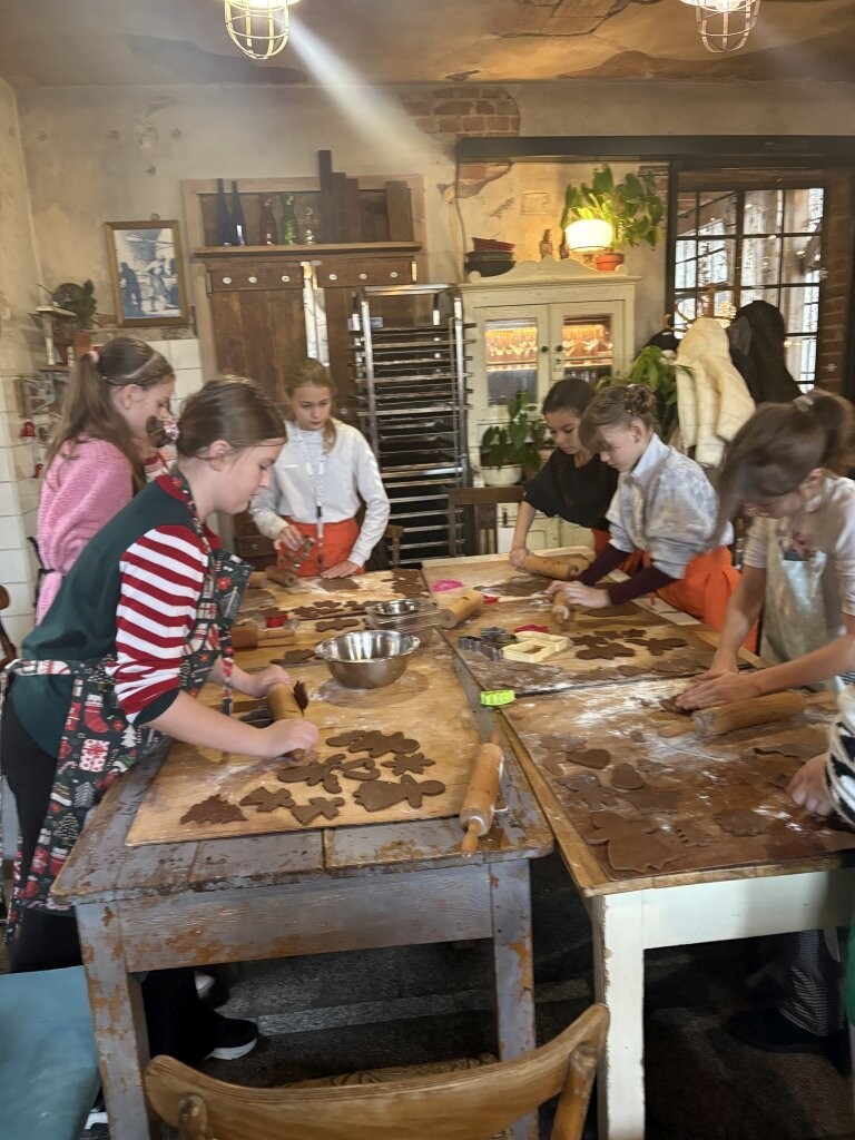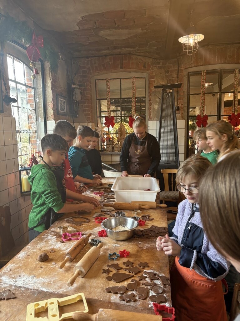 18 grudnia uczniowie klasy Vb, wykorzystując przedświąteczny czas, uczestniczyli w warsztatach piernikowych. Każdy z nich miał okazję poznać tradycję tworzenia tych przepysznych wypieków. Uczniowie sami wałkowali ciasto i wycinali kształtne pierniki. Pysznie się przy tym bawili. Po upieczeniu samodzielnie zdobili słodkim lukrem pachnące serduszka, gwiazdki, księżyce i prezenciki. Cudowna atmosfera świątecznego spotkania towarzyszy uczniom Vb do dziś.