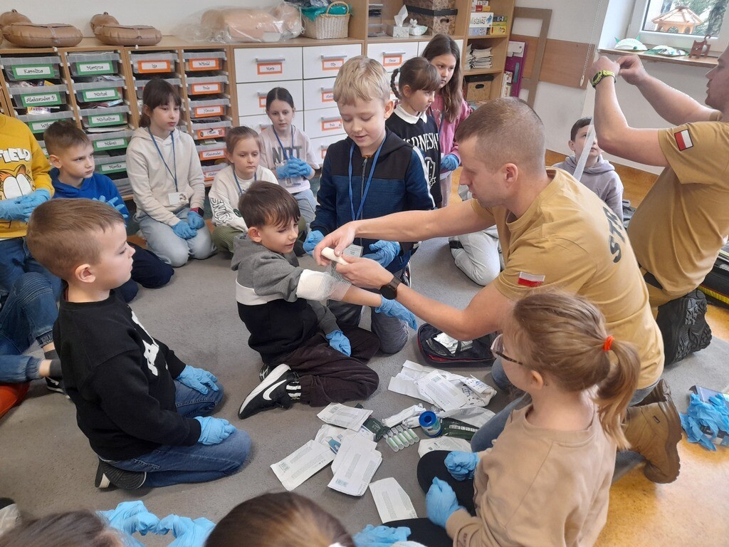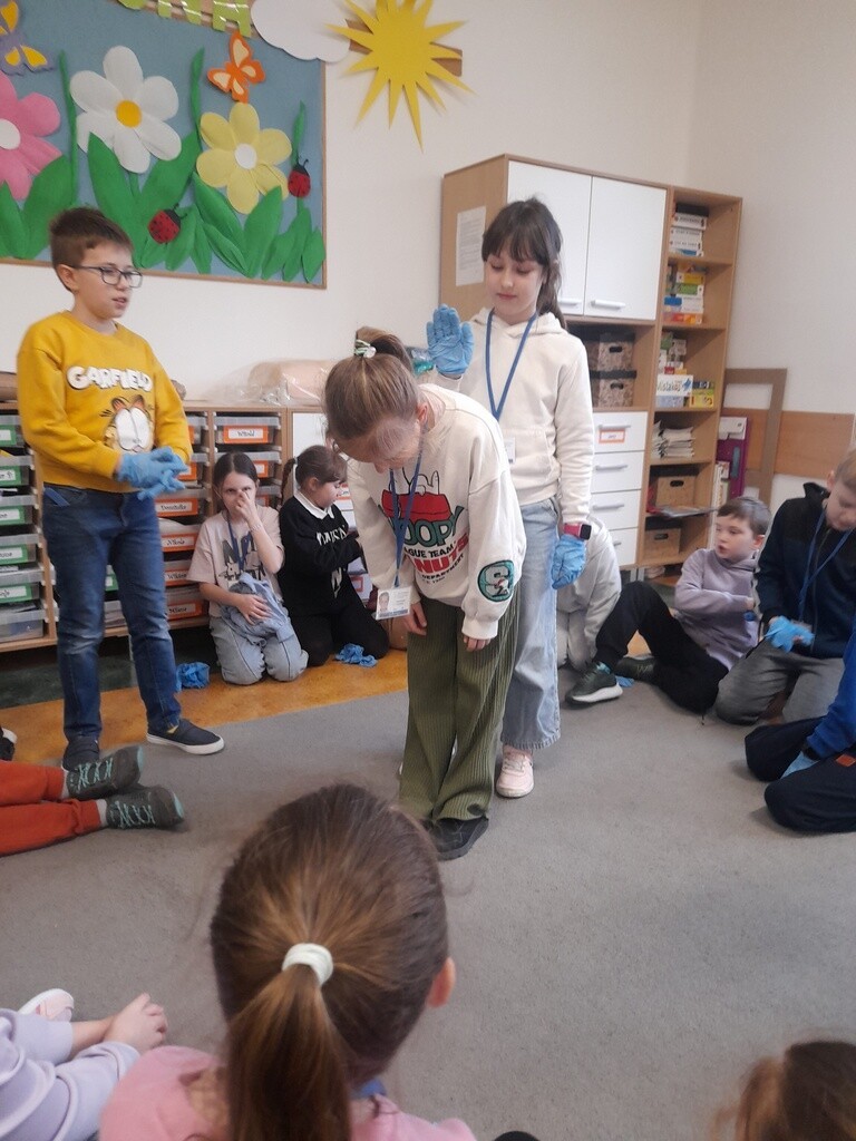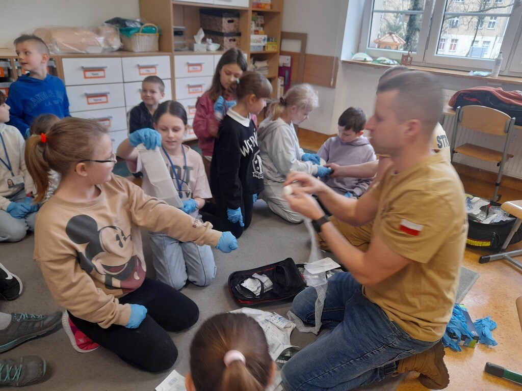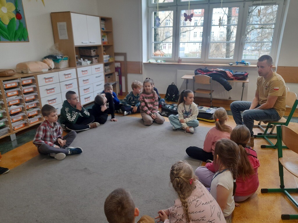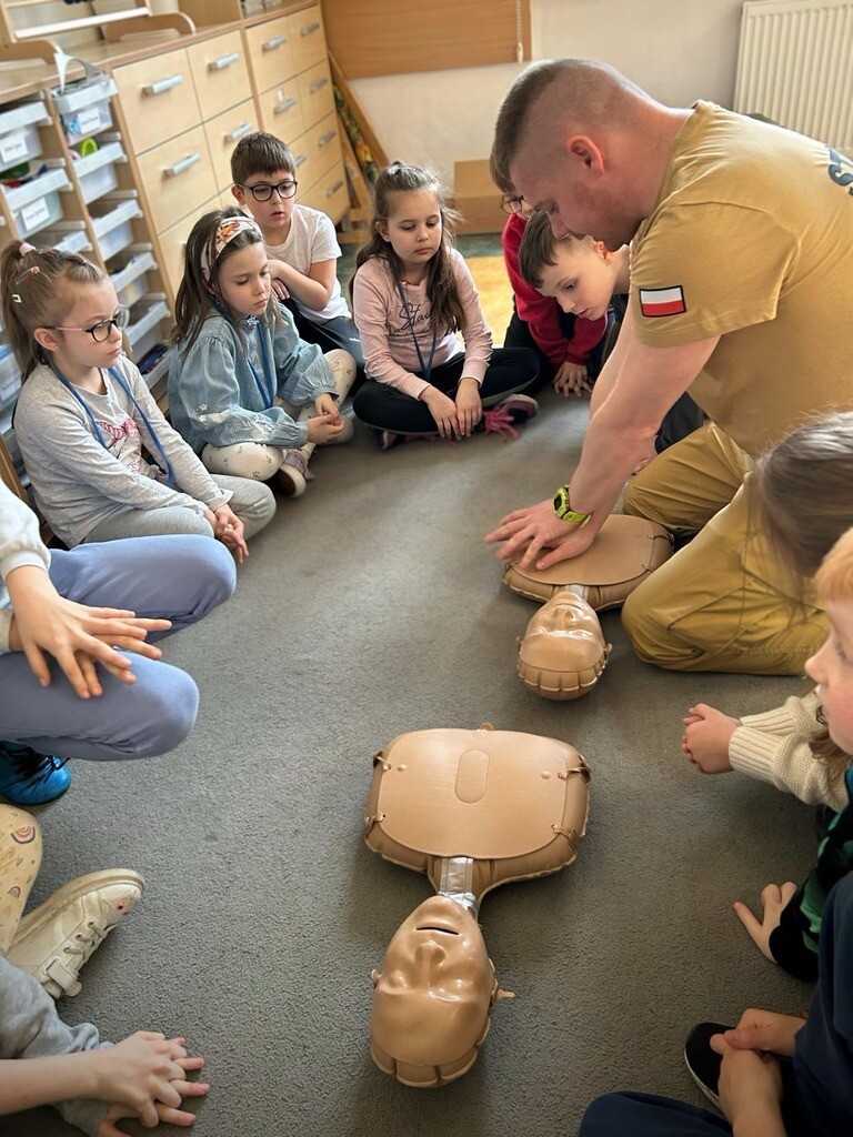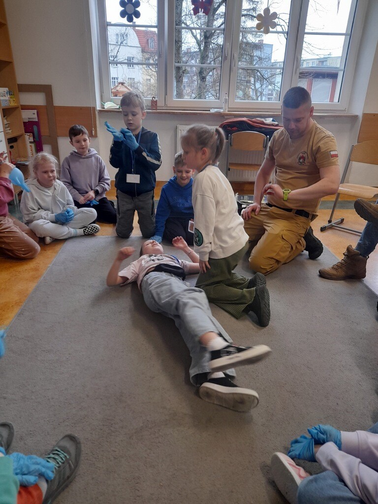 W środę, 26 marca, naszą szkołę odwiedzili panowie Mateusz Wołocznik oraz Sebastian Matusiak - strażacy z Komendy Powiatowej Państwowej Straży Pożarnej Lęborku, którzy pracują również jako ratownicy medyczni. Panowie przeprowadzili dla uczniów klas 1-3 bardzo ciekawe lekcje z zakresu pierwszej pomocy przedmedycznej. Dzieci uczestniczące w zajęciach miały okazję poznać podstawowe zasady udzielania pierwszej pomocy w przypadku zatrzymania krążenia, zarówno u osoby dorosłej jak i u dziecka. Utrwaliły również wiadomości dotyczące wzywania pomocy, ułożenia osoby poszkodowanej w pozycji bocznej ustalonej, opatrywania ran oraz reagowania w sytuacji zadławienia. Dzięki takim zajęciom uczniowie już od najmłodszych lat oswajają się ze świadomością konieczności niesienia pomocy osobom poszkodowanym. Uczą się odpowiedniego i odpowiedzialnego zachowania w sytuacji wypadku, potrafią wezwać prawidłowo pomoc przez telefon oraz wykonać najprostsze czynności w ramach pierwszej pomocy.