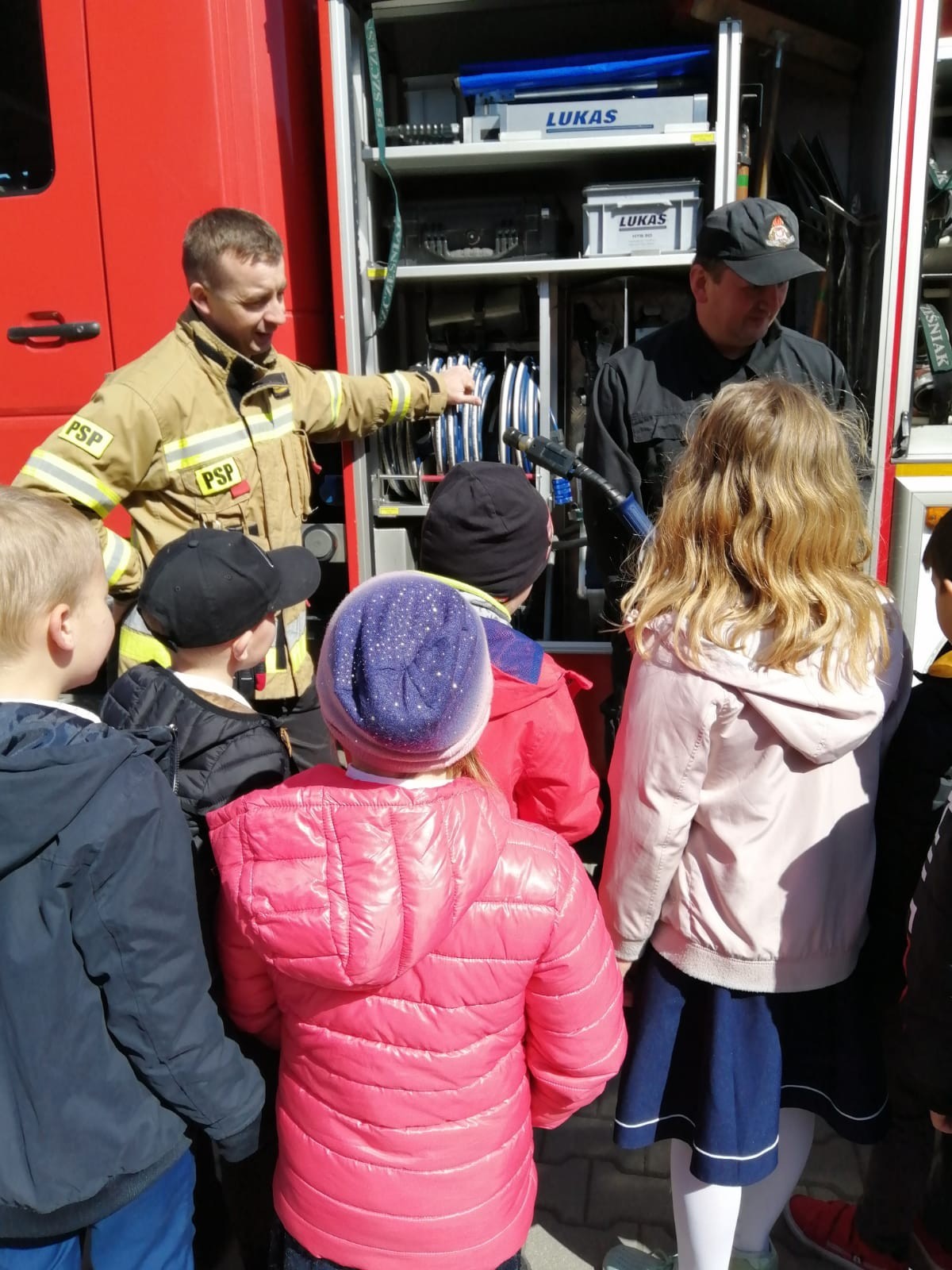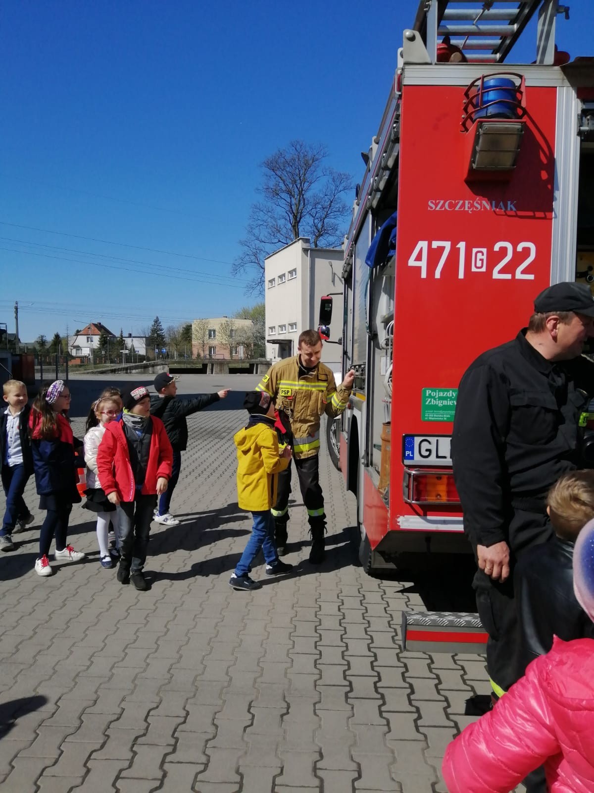 W minionym tygodniu uczniowie klas pierwszych pod opieką wychowawców udali się z wizytą do Komendy Państwowej Straży Pożarnej w Lęborku. Tam uczestniczyli w pokazach gaśniczych, zostali także zapoznani z budową i wyposażeniem wozu strażackiego. Zwiedzili również budynek straży pożarnej i mogli dowiedzieć się, jak na co dzień wygląda praca strażaka . Pierwszoklasiści odbyli również pogadankę z funkcjonariuszkami policji na temat bezpieczeństwa.