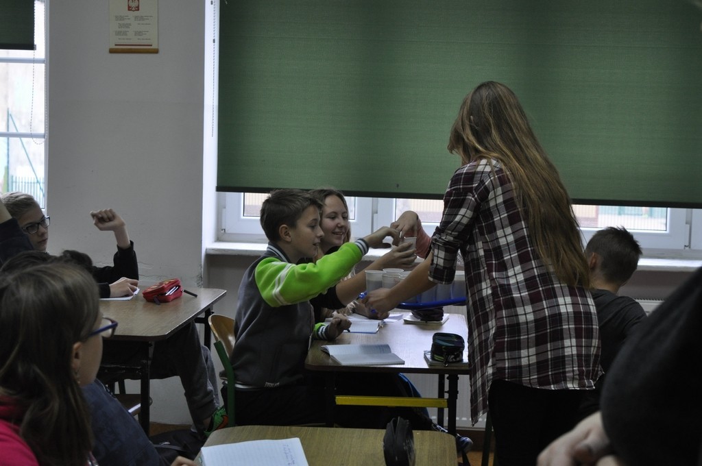 25 listopada br. po raz kolejny w naszym gimnazjum miała miejsce akcja „Witaminka”. Przedstawiciele Samorządu Uczniowskiego wraz z opiekunami: p. Aleksandrą Dudojć i p. Edytą Marzec przygotowali stoisko promujące zdrowe napoje owocowe. Smaczne, świeżo wyciskane soki z soczystych polskich jabłek, marchewek i pomarańczy cieszyły się dużym zainteresowaniem uczniów i stanowiły uzupełnienie drugiego śniadania. Uśmiechnięte buzie gimnazjalistów były najlepszym dowodem na to, że owoce zebrane jesienią to samo zdrowie.
