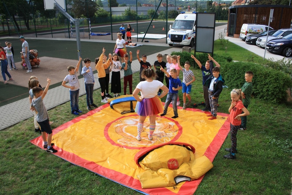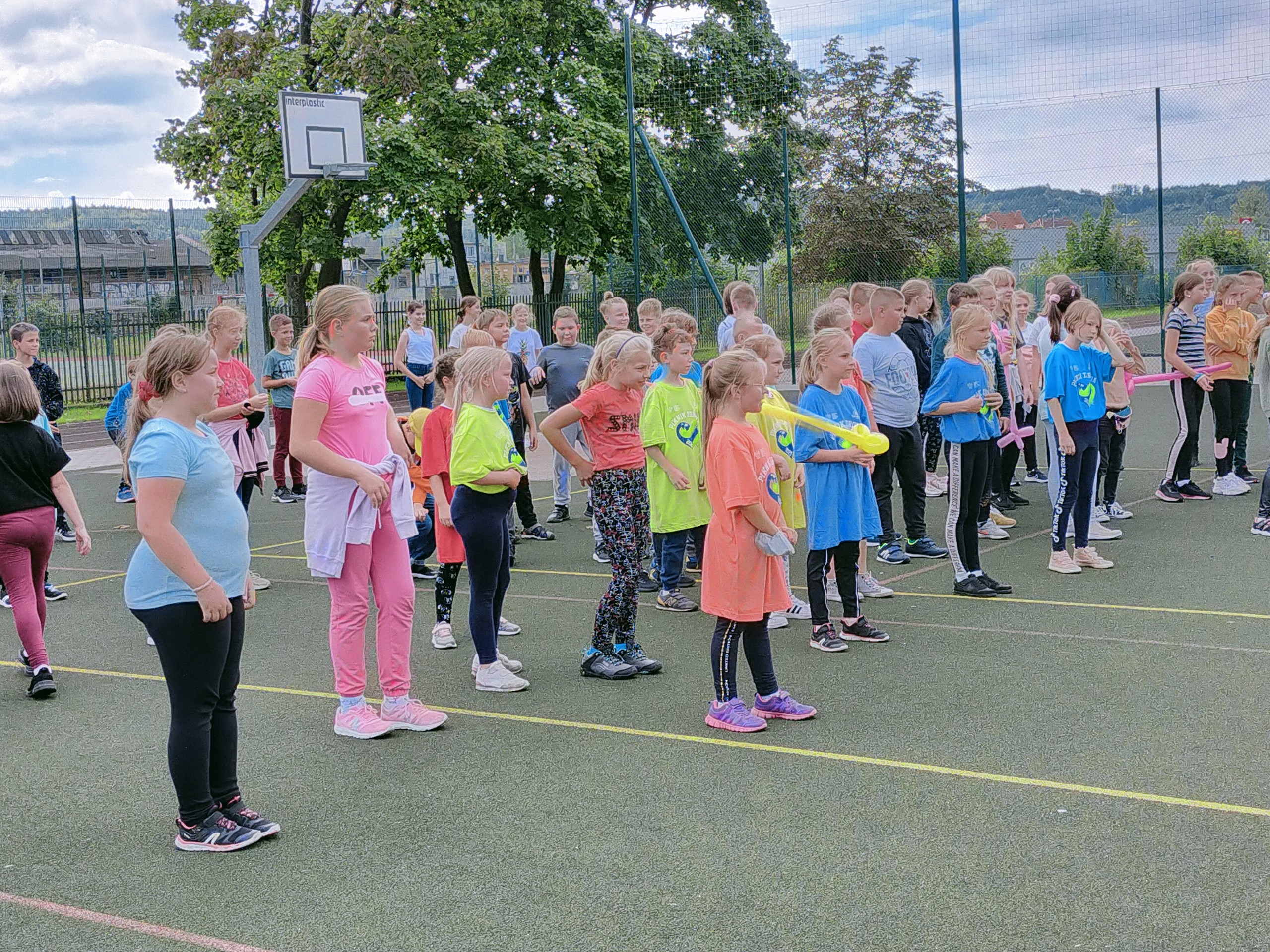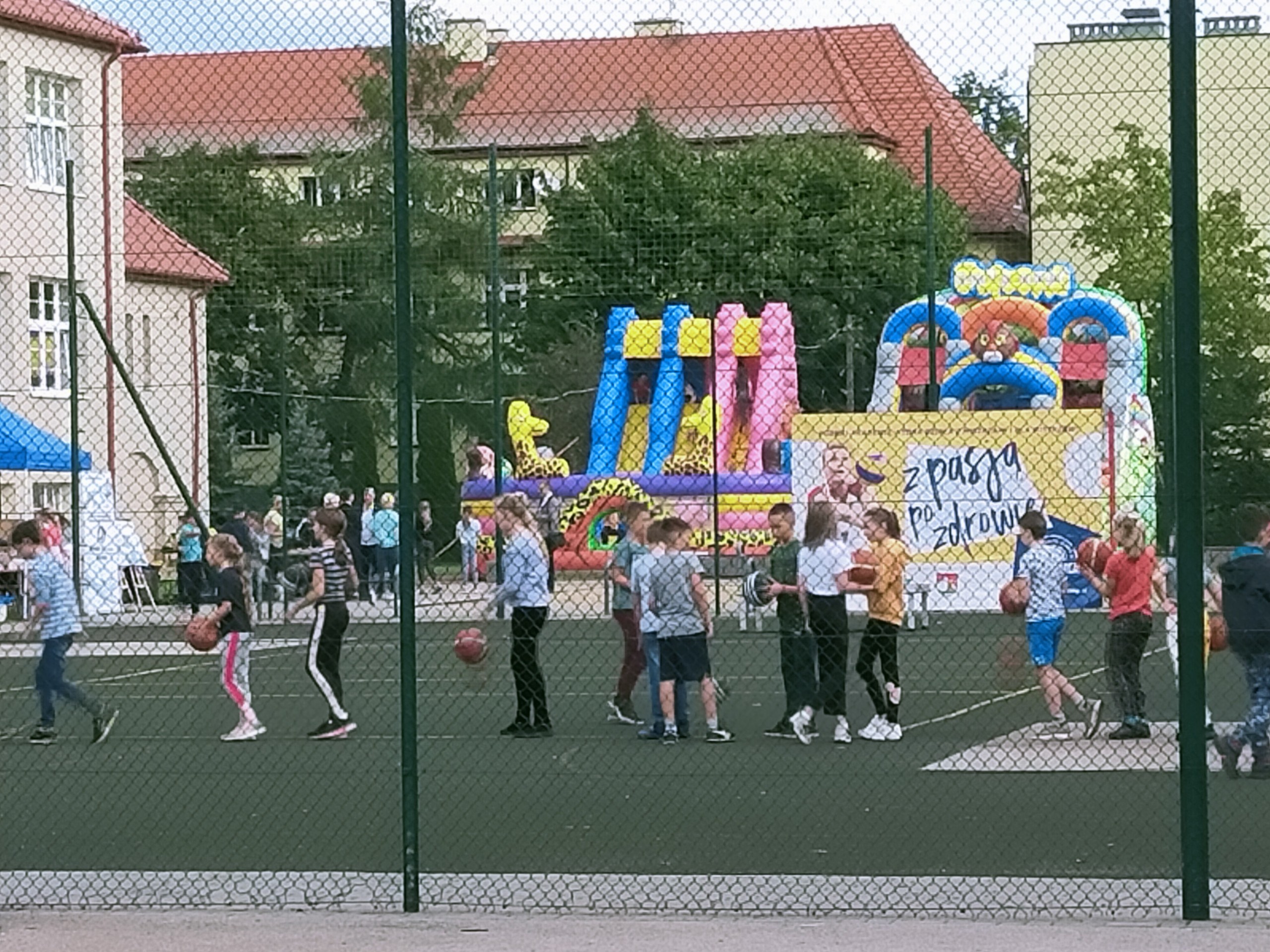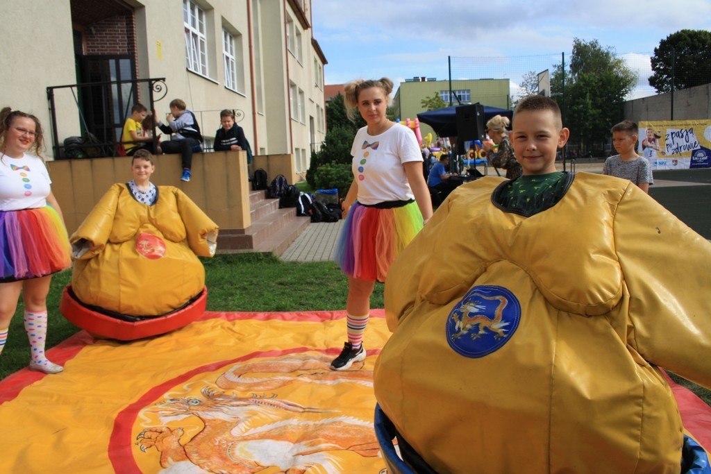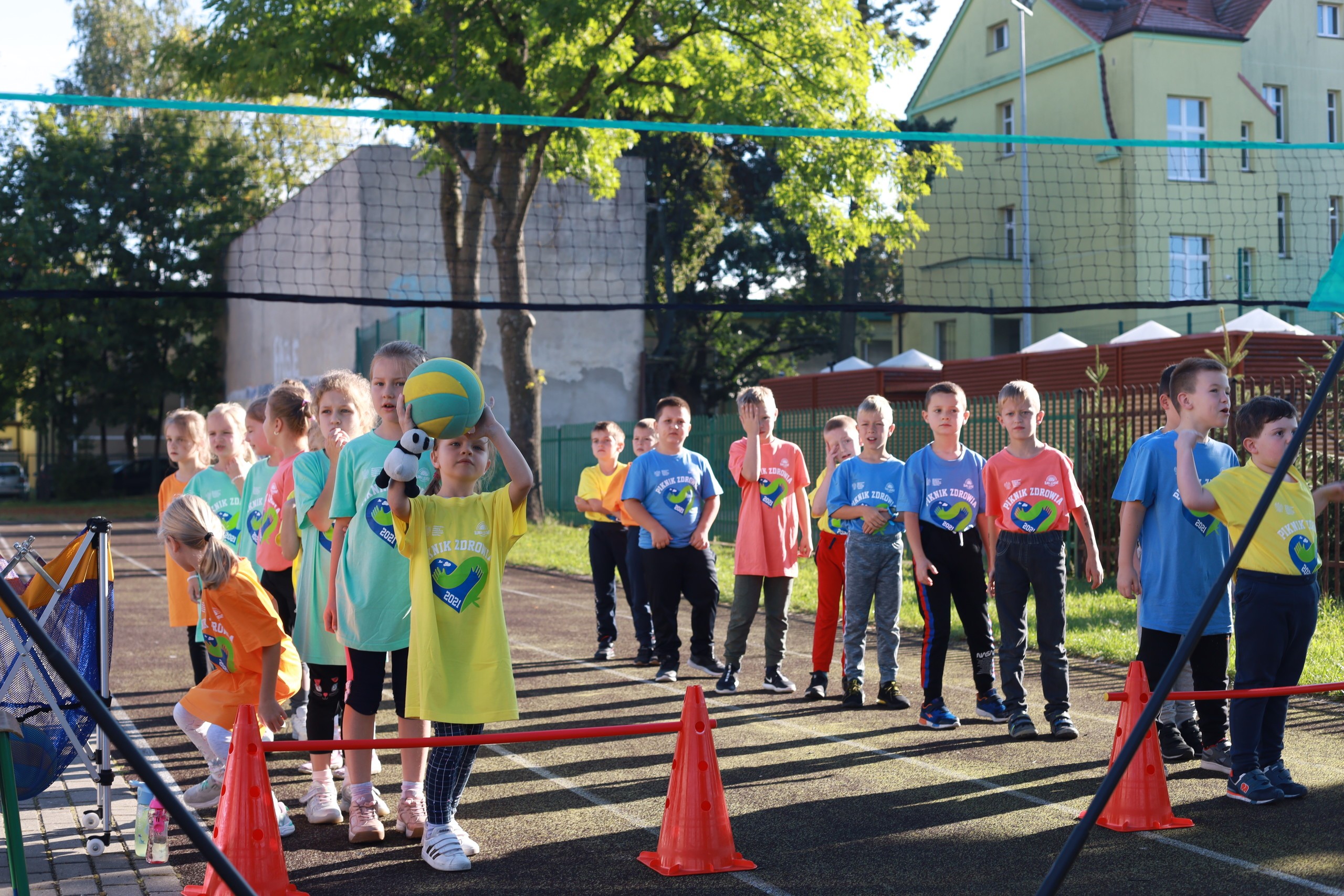 Miniona środa upłynęła w naszej szkole pod hasłem sportu i zdrowia. Stowarzyszenie Przyjaciół Siatkówki Lębork oraz Fundacja Małgorzaty Glinki promowali zdrowy tryb życia. Na boisku szkolnym odbył się wielki Piknik Zdrowia dla uczniów naszej szkoły. Wydarzenie edukacyjne zostało sfinansowane ze środków Ministerstwa Kultury, Dziedzictwa Narodowego i Sportu, a w zabawie uczestniczyło w sumie ponad 500 dzieciaków. Dzieci miały do dyspozycji wiele atrakcji, zabaw oraz konkurencji sportowych. W ramach promocji zdrowej diety uczniowie mogli korzystać ze stanowiska z owocami przygotowanymi przez Duży Warzywniak oraz z czystą wodą do picia. Walory picia wody promowali pracownicy Miejskiego Przedsiębiorstwa Wodociągów i Kanalizacji w Lęborku. Pokazy pierwszej pomocy przeprowadzili pracownicy Ochotniczej Służby Ratowniczej w Lęborku. Młodzież miała także bardzo interesujące wykłady z panem Kamilem Osowskim - dietetykiem z poradni Dobry Dietetyk w Lęborku na temat zdrowego odżywiania. Przez cały czas trwania pikniku o dobrą zabawę dbały panie z animatorki z Przygoda Team. Największą atrakcją były wspólne pokazy tańca Zumba. Swoją obecnością zaszczycili nas goście, czyli Burmistrz Miasta Lęborka Witold Namyślak oraz zastępcy pana Burmistrza-Teresa Ossowska-Szara, Jerzy Pernal, a także sekretarz miasta Marian Kurzydło. O sprawny przebieg imprezy dbała Pani Prezes SPS Lębork Agnieszka Dawidowska oraz nauczycielka wychowania fizycznego Beata Ugodowska. Organizatorzy dziękują nauczycielom Szkoły Podstawowej nr 1 w Lęborku za pomoc w organizacji pikniku i świetną zabawę.
