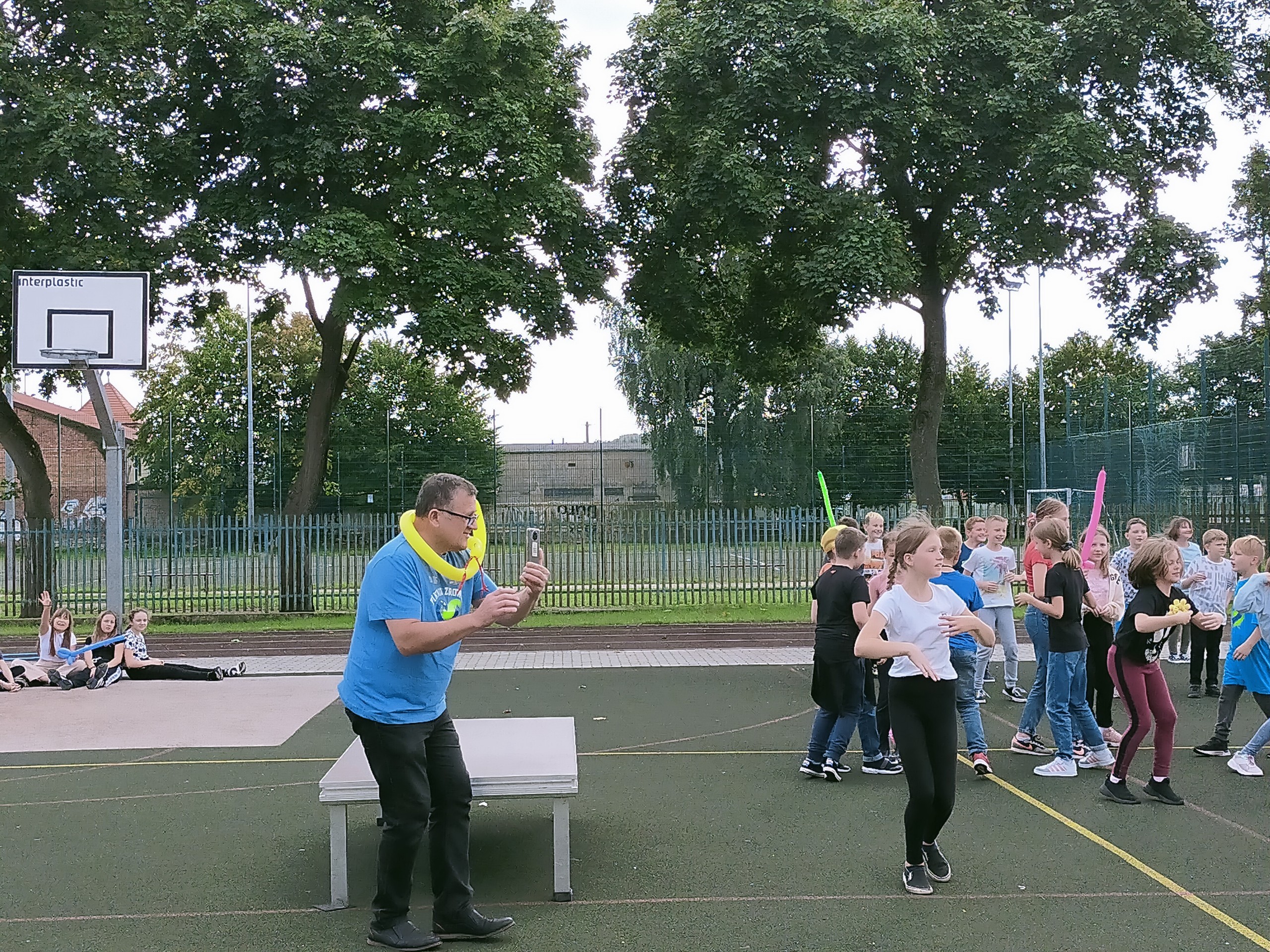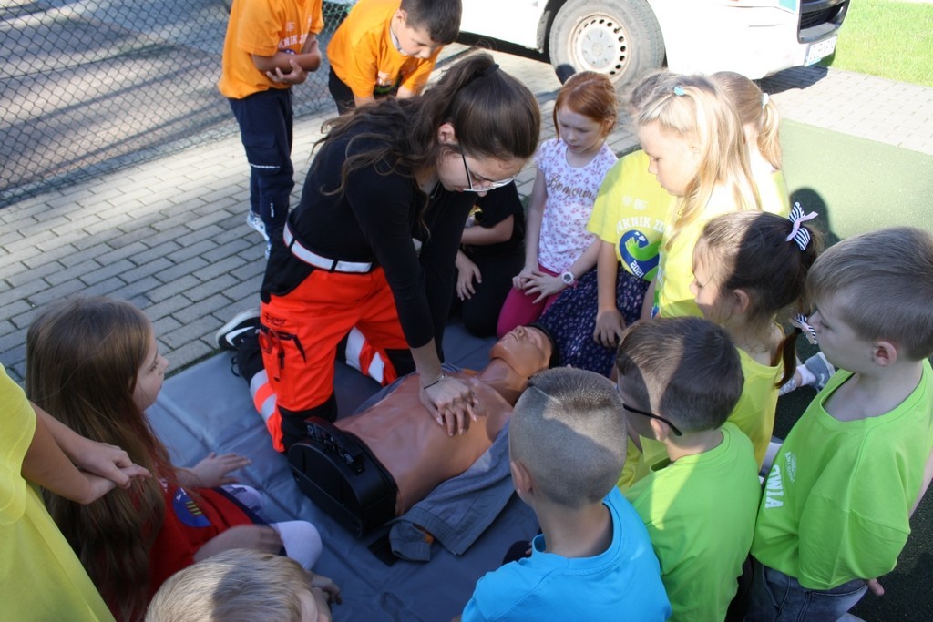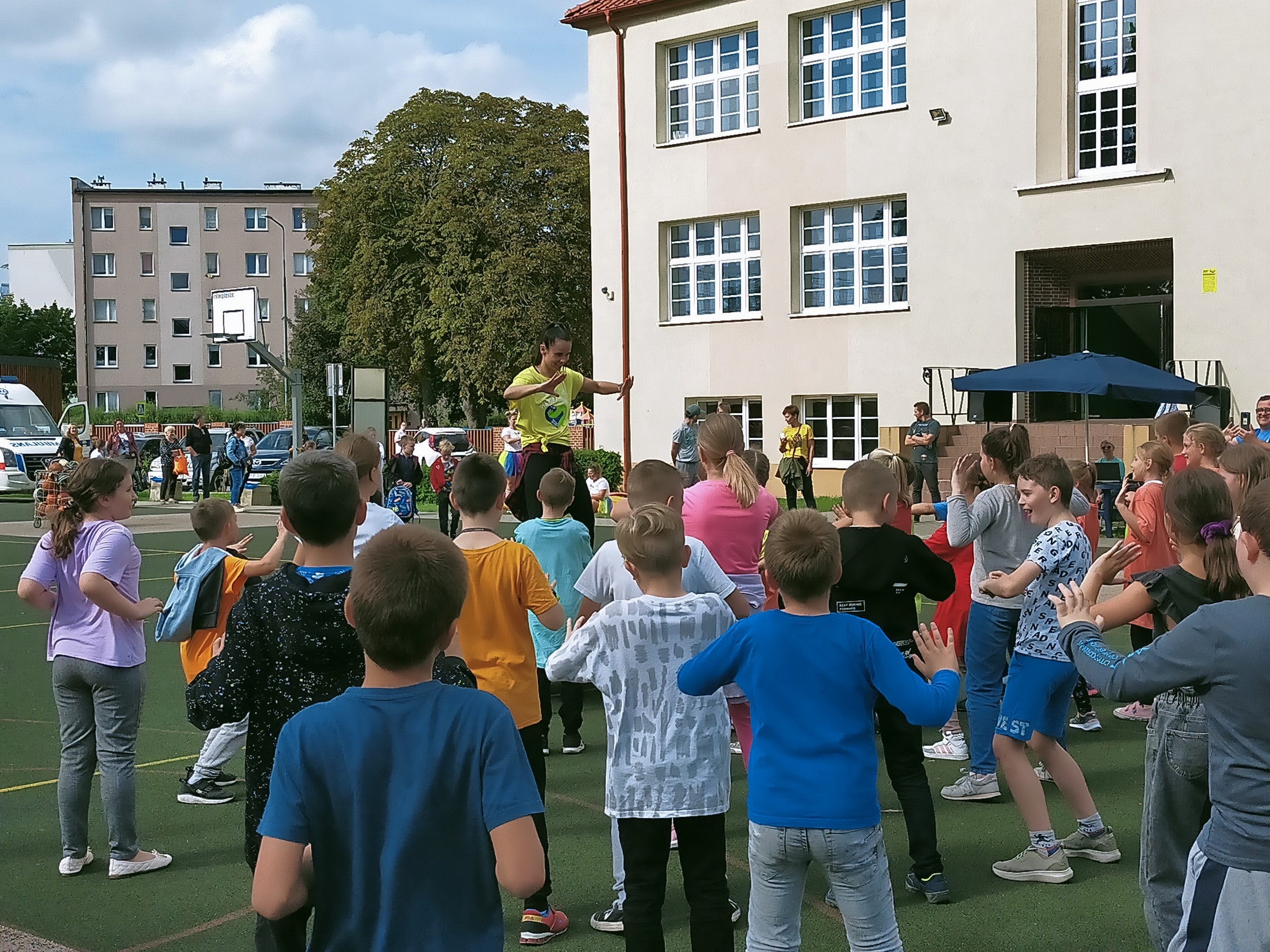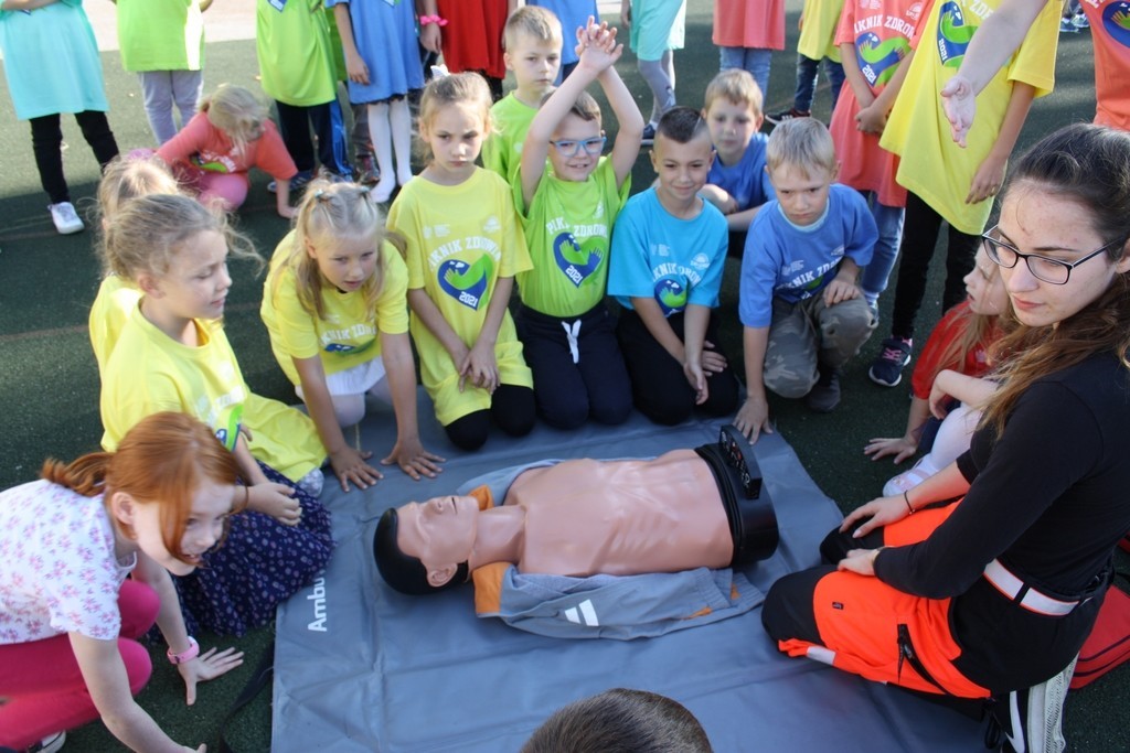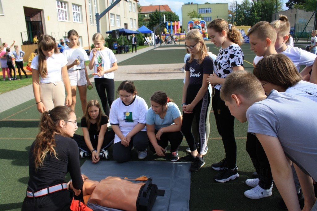 Miniona środa upłynęła w naszej szkole pod hasłem sportu i zdrowia. Stowarzyszenie Przyjaciół Siatkówki Lębork oraz Fundacja Małgorzaty Glinki promowali zdrowy tryb życia. Na boisku szkolnym odbył się wielki Piknik Zdrowia dla uczniów naszej szkoły. Wydarzenie edukacyjne zostało sfinansowane ze środków Ministerstwa Kultury, Dziedzictwa Narodowego i Sportu, a w zabawie uczestniczyło w sumie ponad 500 dzieciaków. Dzieci miały do dyspozycji wiele atrakcji, zabaw oraz konkurencji sportowych. W ramach promocji zdrowej diety uczniowie mogli korzystać ze stanowiska z owocami przygotowanymi przez Duży Warzywniak oraz z czystą wodą do picia. Walory picia wody promowali pracownicy Miejskiego Przedsiębiorstwa Wodociągów i Kanalizacji w Lęborku. Pokazy pierwszej pomocy przeprowadzili pracownicy Ochotniczej Służby Ratowniczej w Lęborku. Młodzież miała także bardzo interesujące wykłady z panem Kamilem Osowskim - dietetykiem z poradni Dobry Dietetyk w Lęborku na temat zdrowego odżywiania. Przez cały czas trwania pikniku o dobrą zabawę dbały panie z animatorki z Przygoda Team. Największą atrakcją były wspólne pokazy tańca Zumba. Swoją obecnością zaszczycili nas goście, czyli Burmistrz Miasta Lęborka Witold Namyślak oraz zastępcy pana Burmistrza-Teresa Ossowska-Szara, Jerzy Pernal, a także sekretarz miasta Marian Kurzydło. O sprawny przebieg imprezy dbała Pani Prezes SPS Lębork Agnieszka Dawidowska oraz nauczycielka wychowania fizycznego Beata Ugodowska. Organizatorzy dziękują nauczycielom Szkoły Podstawowej nr 1 w Lęborku za pomoc w organizacji pikniku i świetną zabawę.