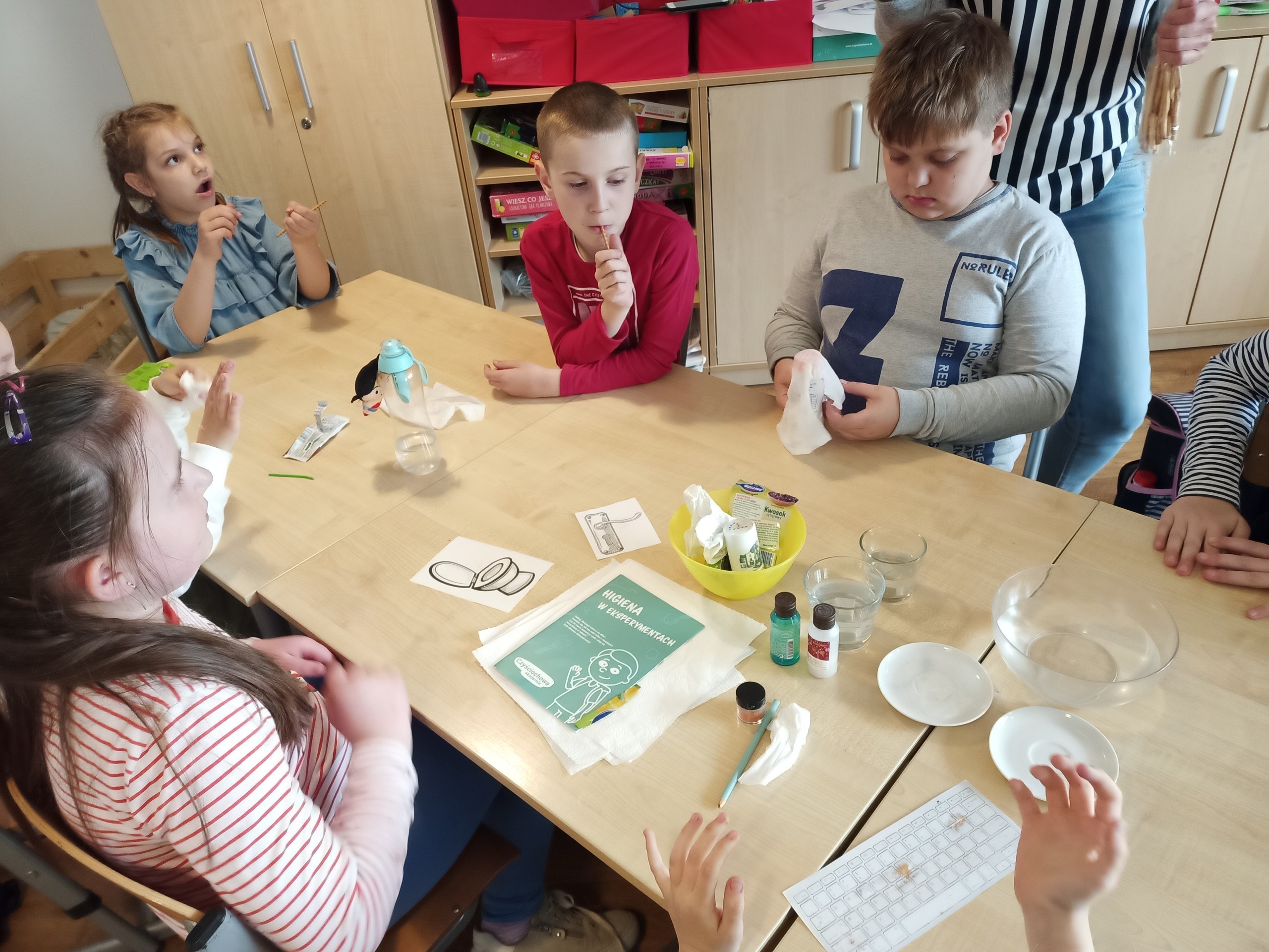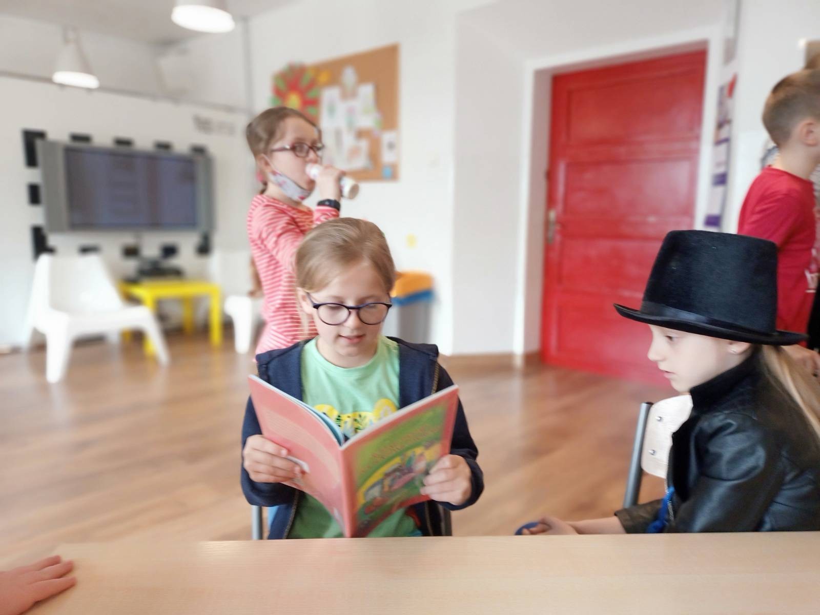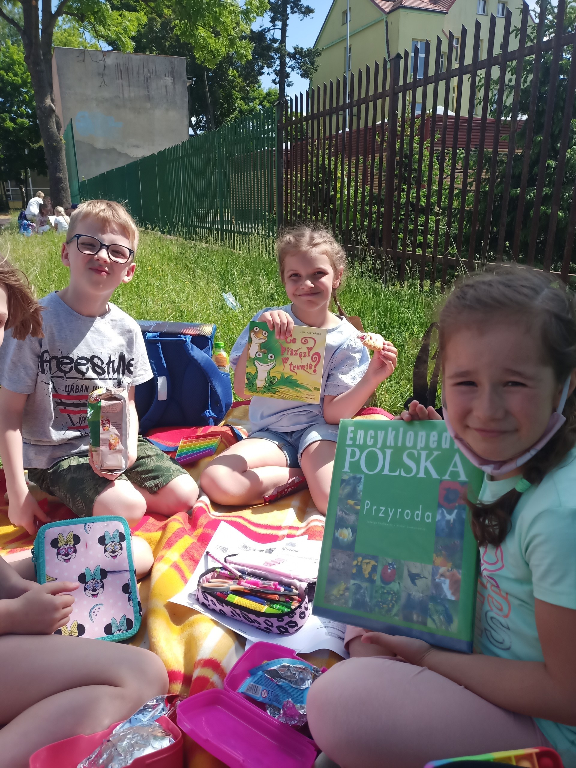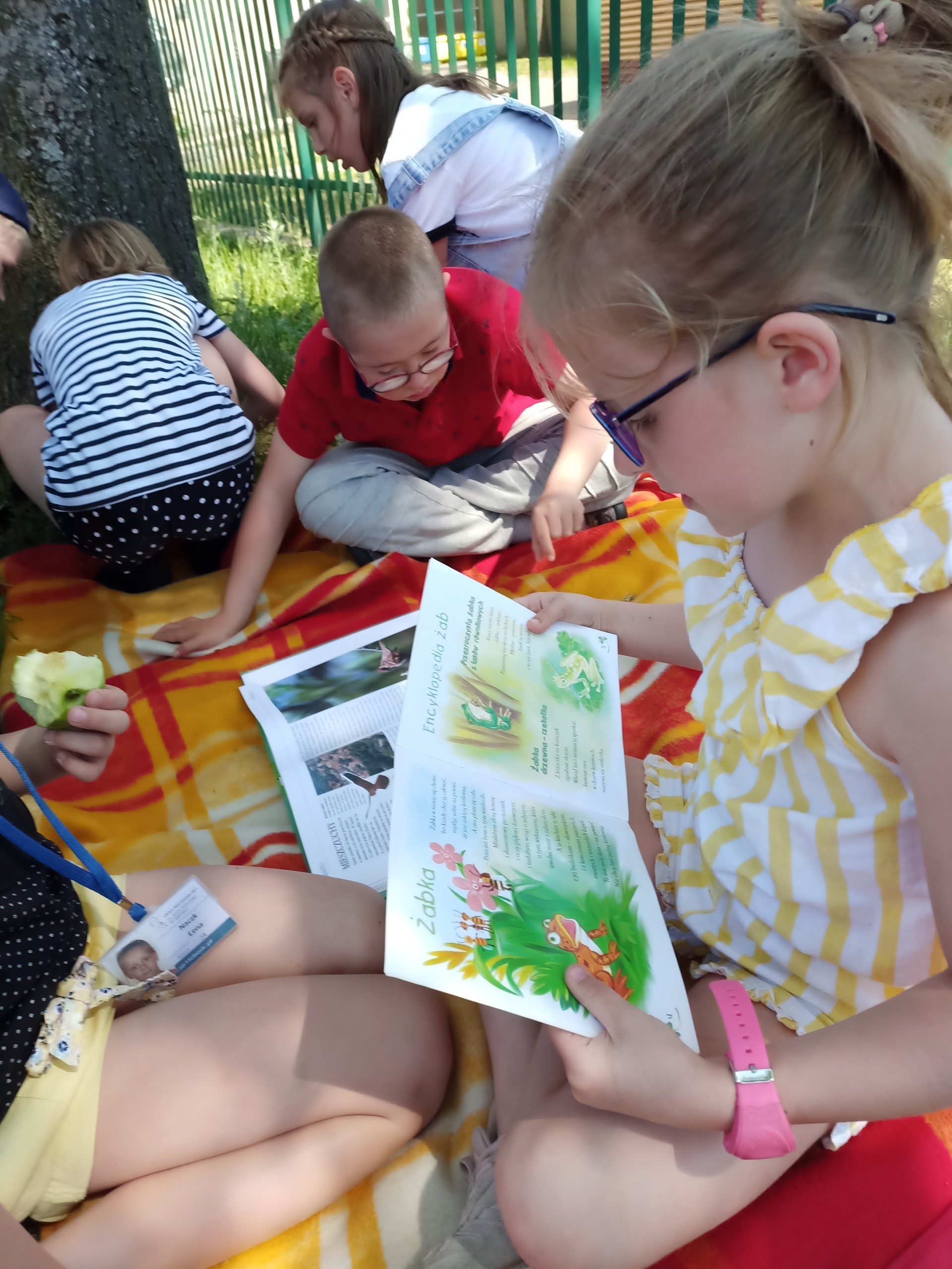 W czasie zdalnego nauczania jak i po powrocie do szkoły czwartoklasistki zaangażowane w zajęcia klubu czytelniczego przygotowały spotkanie dla młodszych kolegów i koleżanek uczęszczających do świetlicy szkolnej. Opracowały zajęcia dotyczące zachowania higieny w dobie pandemii – nie zabrakło tu ciekawych doświadczeń, zagadek oraz wierszyków poświęconych tematowi zdrowia. Gdy wreszcie dopisała pogoda, zajęcia czytelnicze można było odbyć w plenerze. Tutaj czytanie połączone zostało z obserwacją przyrody.