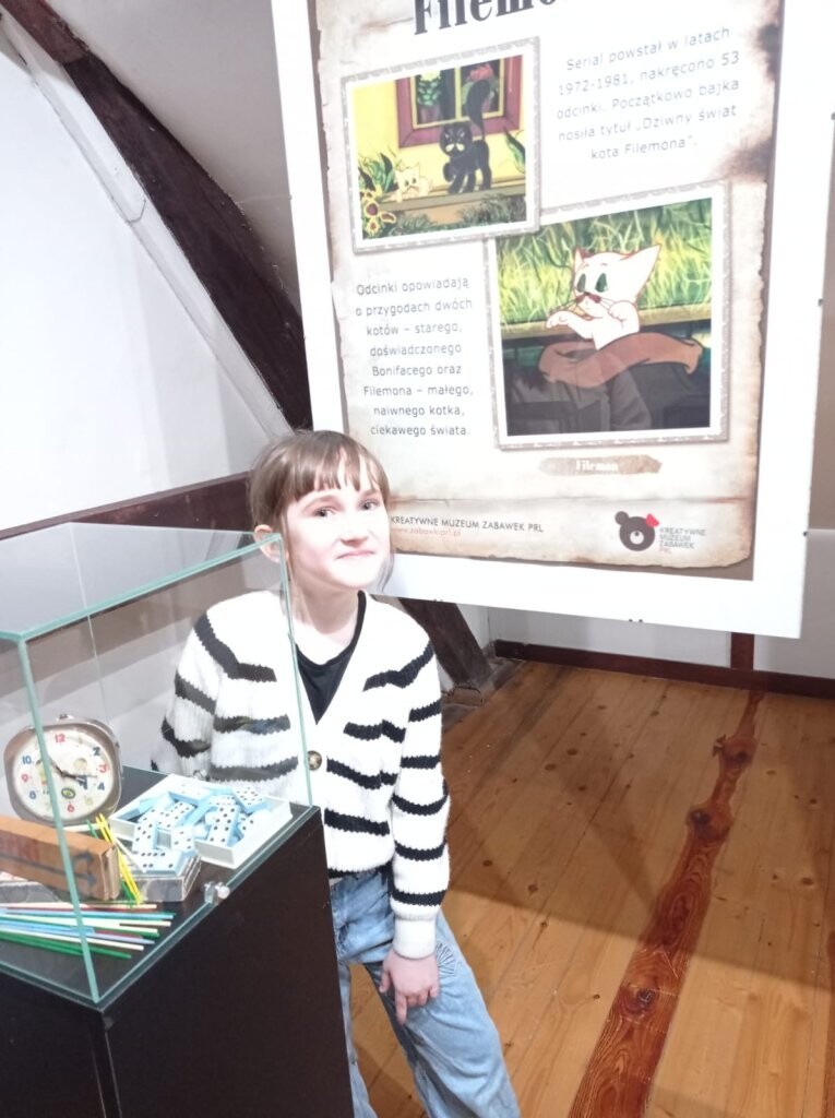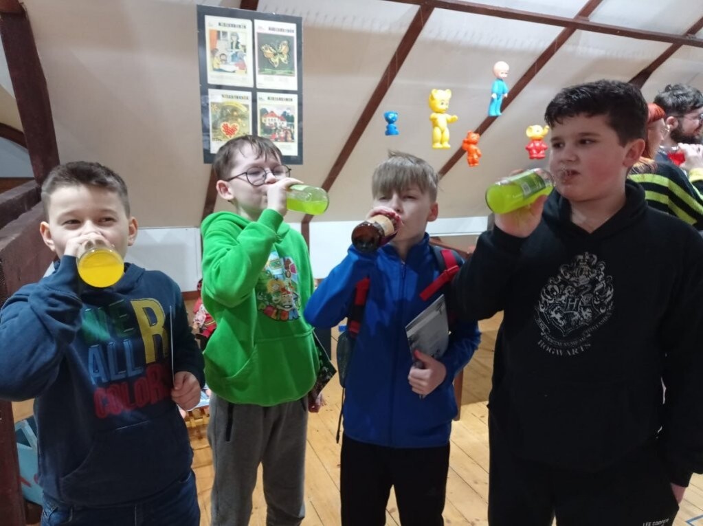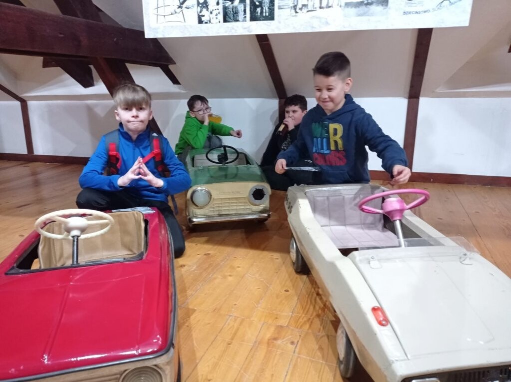 22 marca uczniowie kola plastycznego uczestniczyli w wystawie zorganizowanej w Galerii „Strome schody" w lęborskim Muzeum. Jest to podróż w czasie bez smartfonów, plazmowych ekranów i pędzącego czasu… Ekspozycja z prywatnej kolekcji pana Piotra Armatowskiego przedstawia zabawki z czasów PRL, które są specyficzne i niezwykłe. Można tu zobaczyć miniaturowe mebelki, lalki, samochody, gry planszowe, bączki, kolekcję historyjek popularnej gumy do żucia Donald, etykiety oranżady oraz czekolady. Dużą atrakcją jest degustacja popularnej niegdyś oranżady w szklanych butelkach z epoki PRL. Warto wybrać się na tę wystawę z rodzicami lub dziadkami!