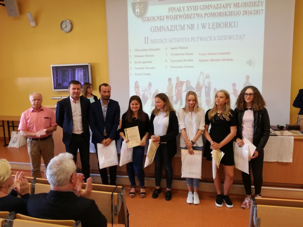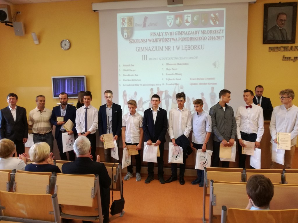 20.06.2017 w sali audiowizualnej Zespołu Szkół Mechaniczno- Informatycznych w Lęborku odbyła się XVIII Powiatowa Gala Sportu Szkolnego 2016/2017. Gimnazjum nr 1 w Lęborku było reprezentowane przez grupę siatkarzy oraz pływaków, którzy zostali nagrodzeni za wysokie wyniki sportowe w Gimnazjadzie.