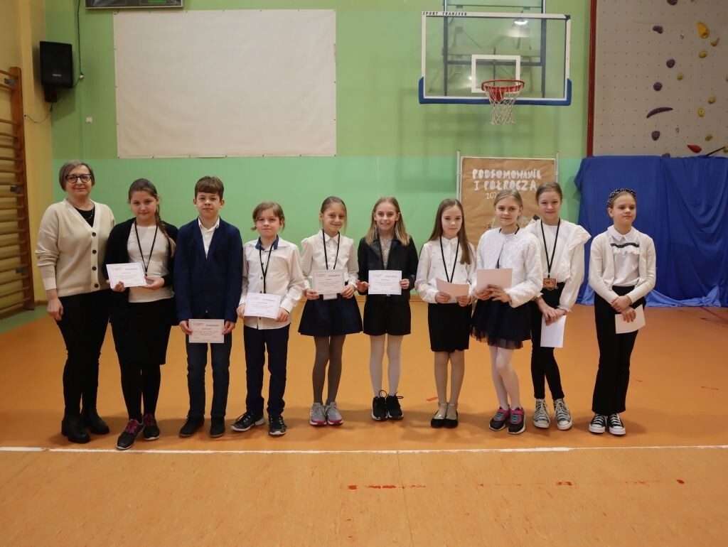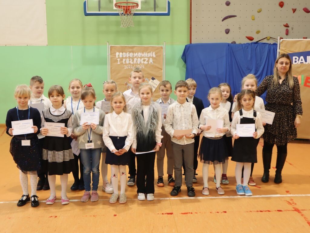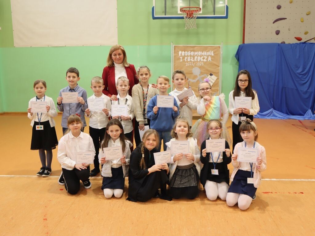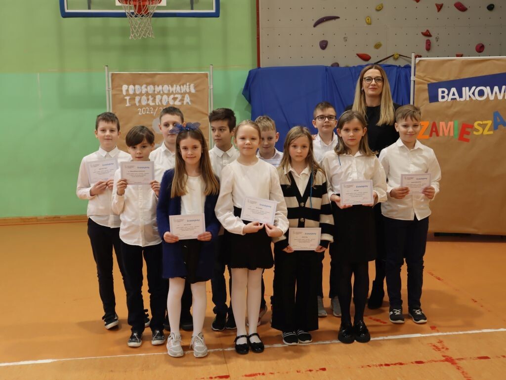 Jesteśmy na półmetku roku szkolnego 2022/2023. Nadszedł czas podsumowań. W środę , 8 lutego na sali gimnastycznej szkoły odbył się uroczysty apel podsumowujący pracę w pierwszym półroczu. Oprócz gratulacji dla wyróżnionych uczniów i poznania ich osiągnięć mogliśmy zobaczyć przedstawienie, które wraz z dziećmi ze świetlicy przygotowała pani Iwona Suszyńska. Nie zabrakło także akcentów muzycznych - w utworach instrumentalnych na trąbkach wystąpili: Kalina Stawska oraz Stasiu Główczewski. Cała uroczystość została przygotowana przez nauczycieli bloku przedmiotów ścisłych.