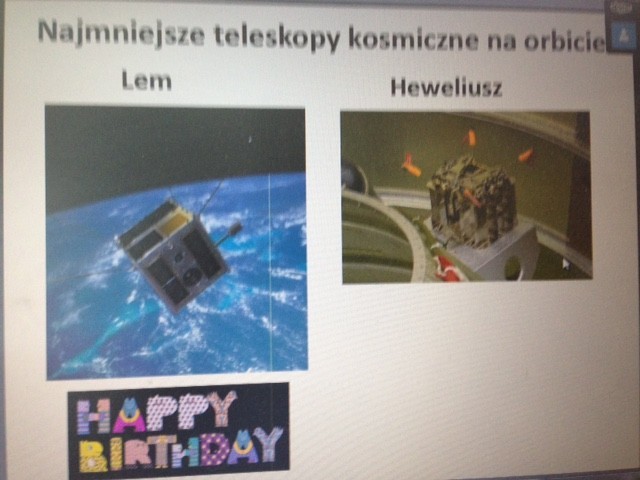 Pan Zawistowski opowiedział uczniom jak tworzy się satelity, jak wyglądają i ile trwa ich budowa. Uczniowie poznali wiele ciekawych zagadnień dotyczących pierwszych polskich satelit naukowych Brite-PL1 Lem i Brite-PL2 Heweliusz.