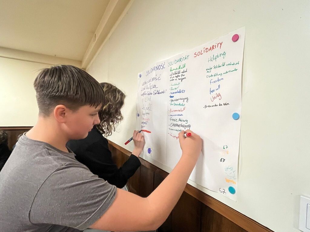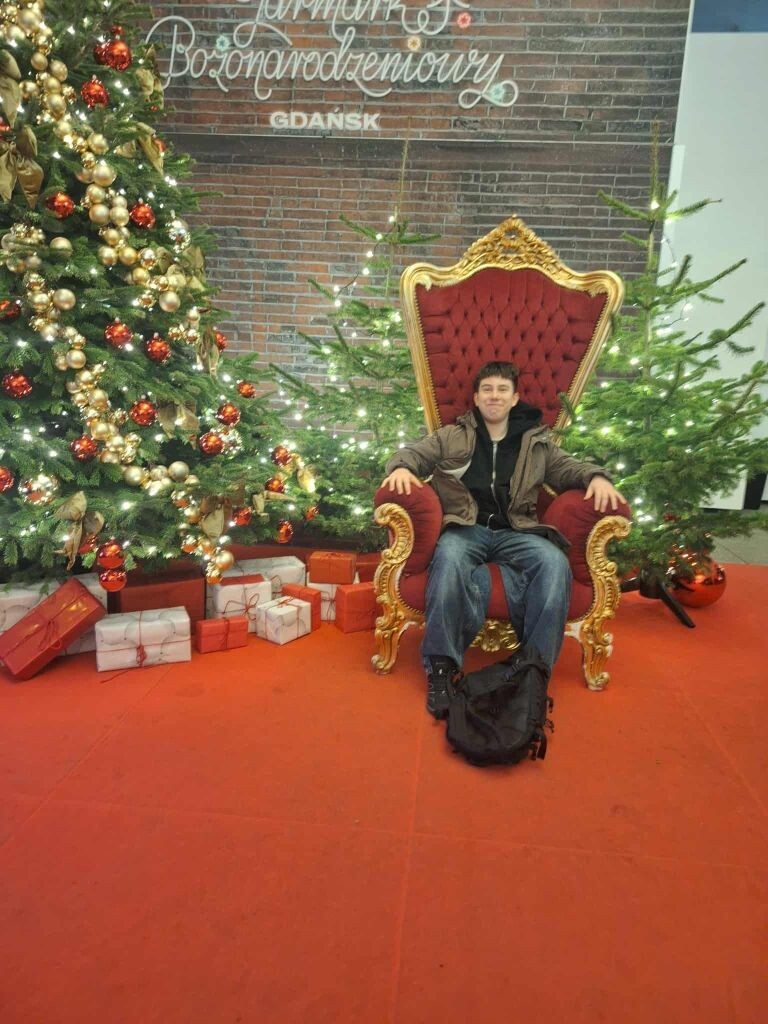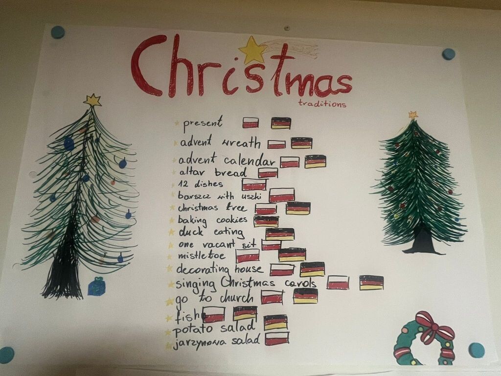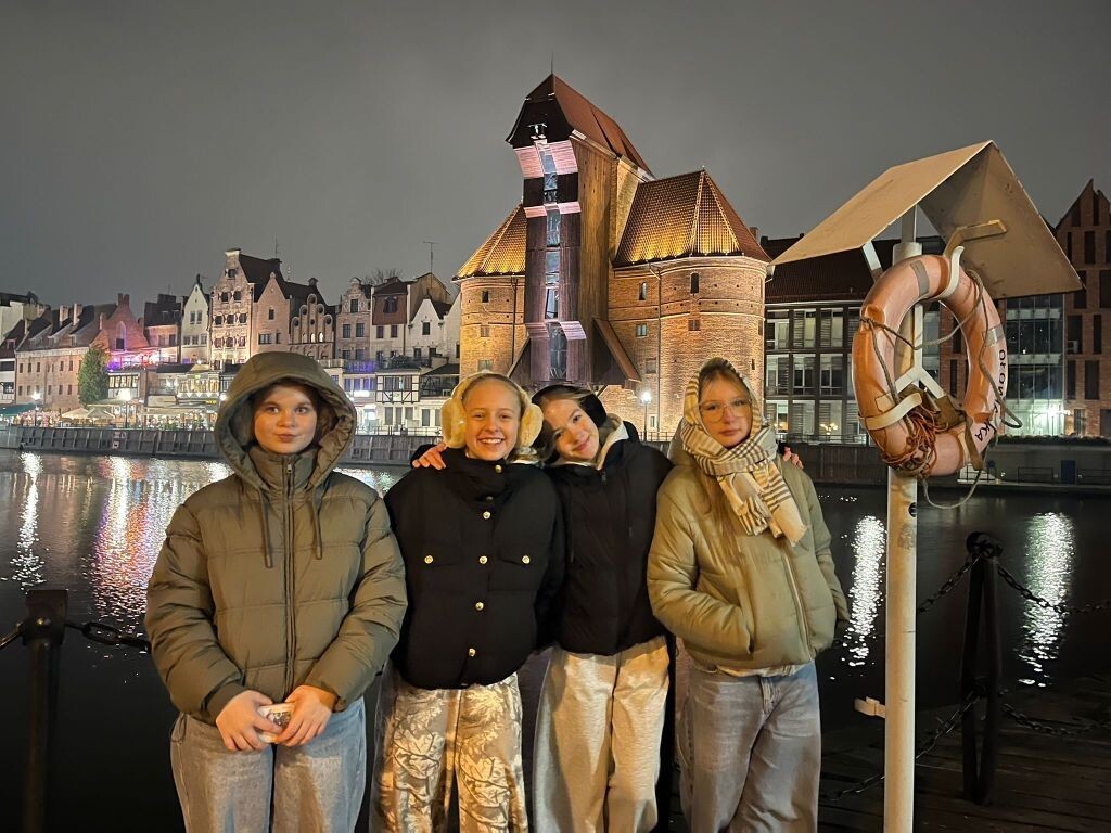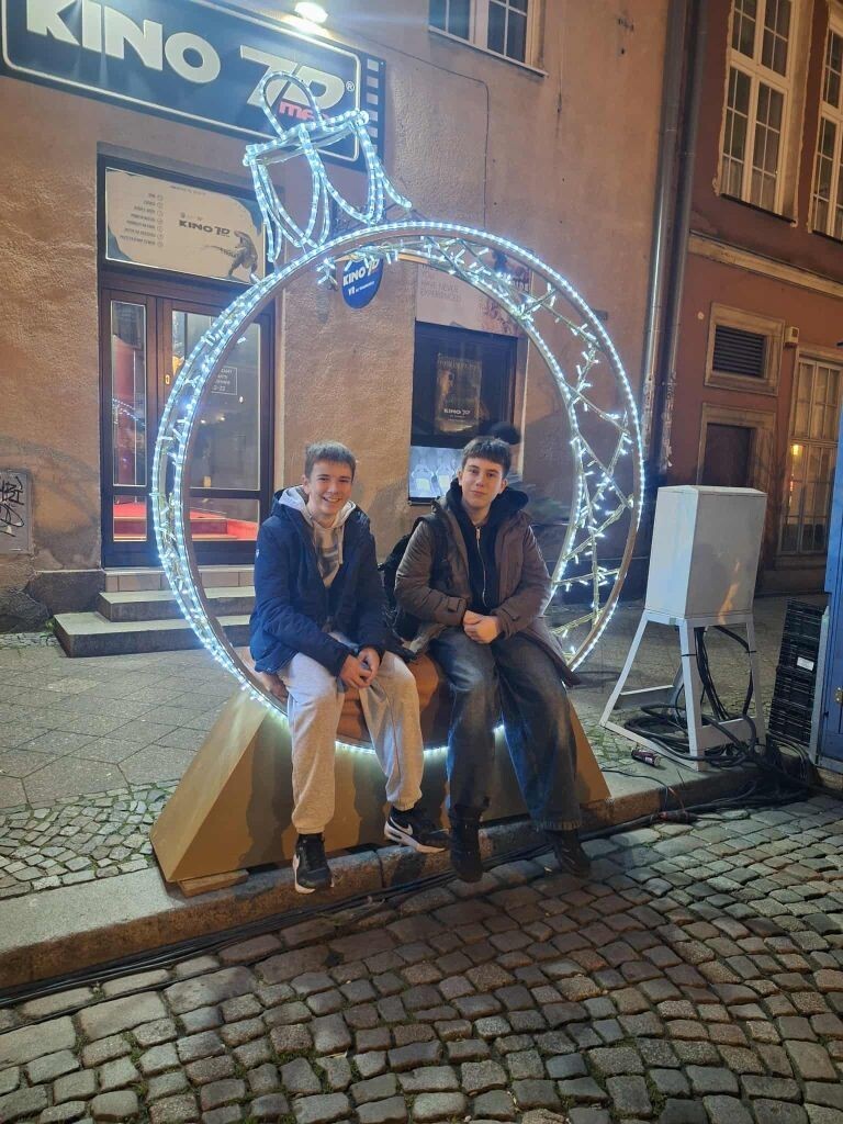 W dniach 23-28 listopada 2025r. uczniowie: Rozalia i Kaja (VIIIc) oraz Janek, Hania J., Hania D., Piotr i Remigiusz – (VIIIa) uczestniczyli razem z młodzieżą z Hansa-Gymnasium ze Stralsundu z Niemiec oraz uczniami SLO i LO 1 z Lęborka w tygodniowej polsko – niemieckiej wymianie młodzieży pod hasłem: „Zrównoważony rozwój dla społeczeństwa – odpowiedzialność wobec innych: „Tradycje bożonarodzeniowe w Polsce i Niemczech”. Uczestnicy projektu mieszkali w Domu Pojednania i Spotkań w Gdańsku. Tutaj odbywały się zajęcia w polsko — niemieckich grupach. Różnorodne warsztaty miały na celu przybliżyć polskiej i niemieckiej młodzieży tradycje świąteczne w Polsce i Niemczech.