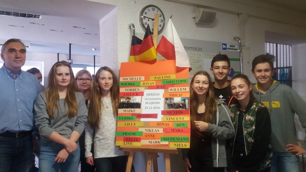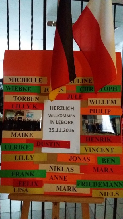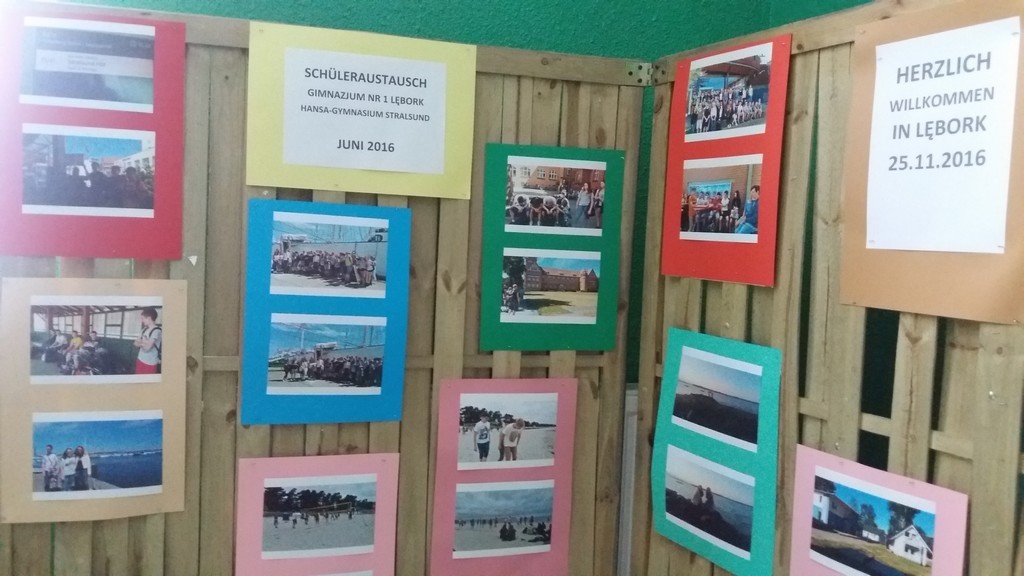 W dniach 21-26.11.2016r. uczniowie Gimnazjum nr 1 z Lęborka uczestniczyli razem z młodzieżą z Niemiec, z Hansa-Gymnasium ze Stralsundu w warsztatach pt. „Es begann in Danzig…”- „Zaczęło się w Gdańsku…” . Uczestnicy projektu mieszkali w Domu Pojednania i Spotkań w Gdańsku. Tam odbywały się tygodniowe zajęcia w polsko-niemieckich grupach. Warsztaty miały na celu przybliżyć polskiej i niemieckiej młodzieży jaki wpływ miała „Solidarność” na wydarzenia w Polsce, Niemczech i całej Europie. Podczas warsztatów uczniowie obejrzeli film” „Von Solidarność zur Freiheit ” - „Od Solidarności do wolności”, a następnie wymieniali ważne daty i wydarzenia dla Polski i Niemiec po roku 1945. Na zakończenie warsztatów uczniowie wykonywali plakaty pokazujące jak zbliżają nas takie polsko-niemieckie spotkania, co wiemy o Niemczech i co wiedzą o nas nasi koledzy z zachodniej granicy. Gdańskie spotkanie uczniów z Lęborka i ze Stralsundu to również świetna okazja do konwersacji w języku niemieckim i angielskim. Każdy dzień pobytu od poniedziałku do piątku rozpoczynaliśmy rozgrzewką językową. W polsko-niemieckich grupach zwiedzaliśmy Gdańsk. Byliśmy również na kręglach. Wybraliśmy się także do Sopotu oraz do Galerii Bałtyckiej. Młodzież z Polski i Niemiec brała również udział w kursie pierwszej pomocy.