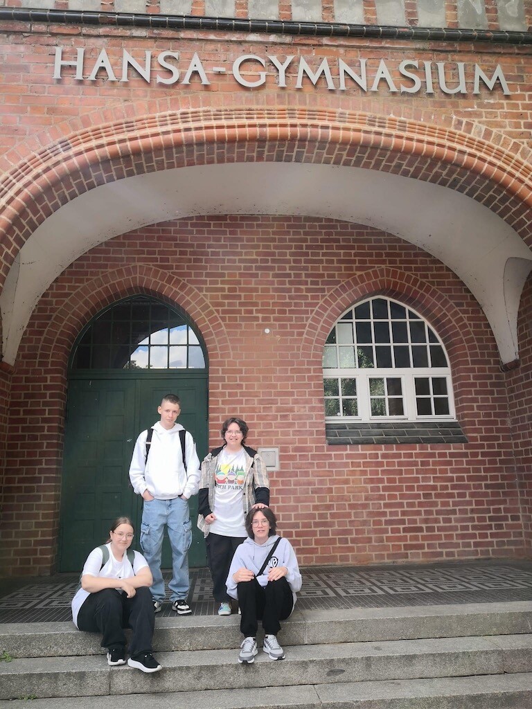 W dniach 9-14 czerwca uczniowie klasy 7a: Aleksander Szewczyk, Agata Kurzydło, Klaudia Ropela i Maksymilian Rychlak wzięli udział w polsko-niemieckiej wymianie młodzieży. Wspólnie z uczniami z Hansagymnasium ze Stralsundu spędzili tydzień w schronisku młodzieżowym „Jugendherberge Prora” w Binz nad Morzem Bałtyckim, na największej niemieckiej wyspie: Rugia. Uczniowie w polsko-niemieckich grupach brali udział w warsztatach ekologicznych na plaży i wykonywali różne eksperymenty na temat ekosystemu Morza Bałtyckiego. Wspinali się również na wierzchołek drzewa wędrując w koronach drzew na Baumwipfelpfad oraz brali udział w warsztatach rysunku, których tematem przewodnim było „drzewo”. W środę naszych uczniów przywitał w Hansagymnasium dyrektor Thomas Janke. Uczniowie wysłuchali informacji o systemie szkolnictwa w Niemczech, a następnie podziwiali uroki pięknego miasta Stralsundu i zwiedzili Oceanarium.